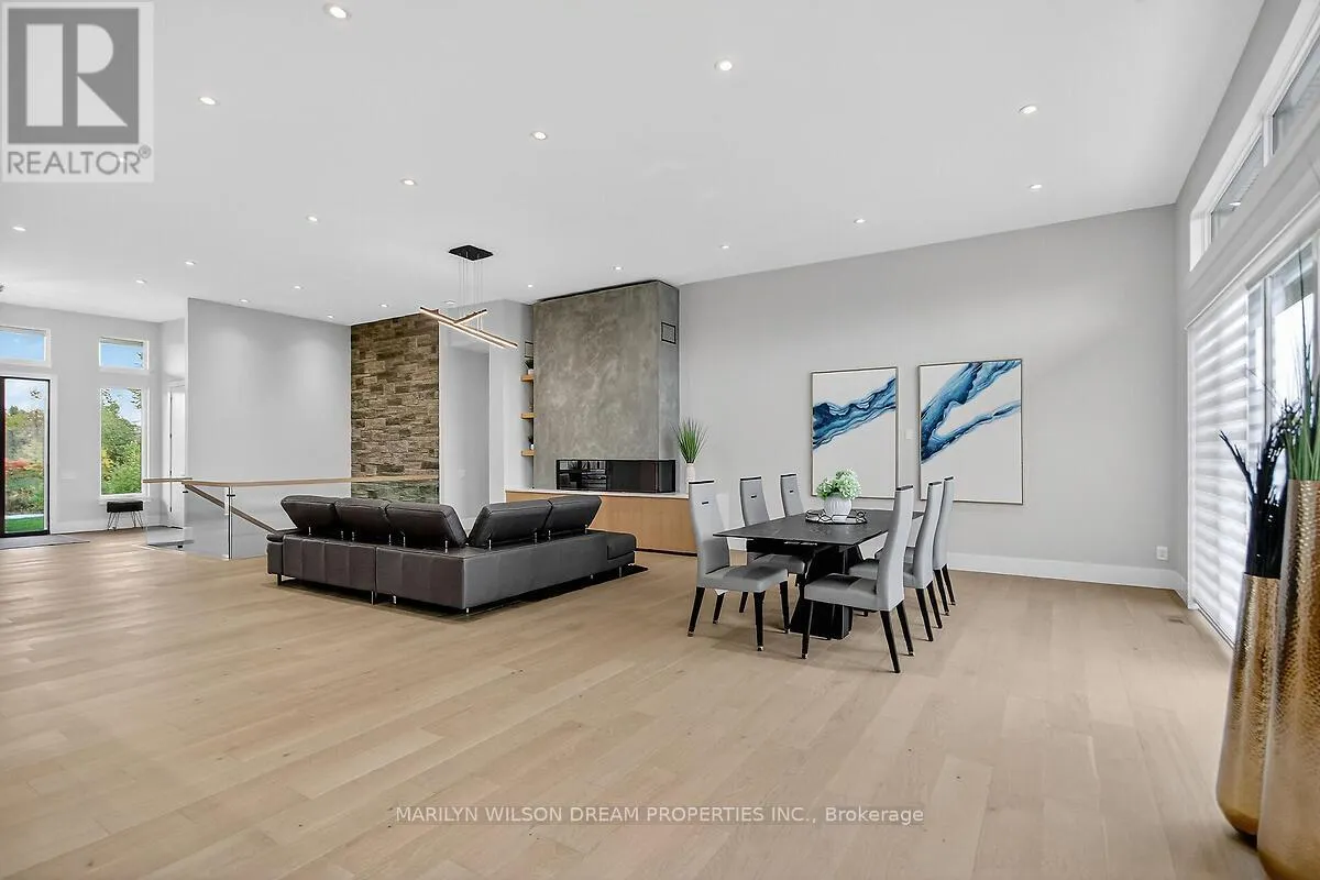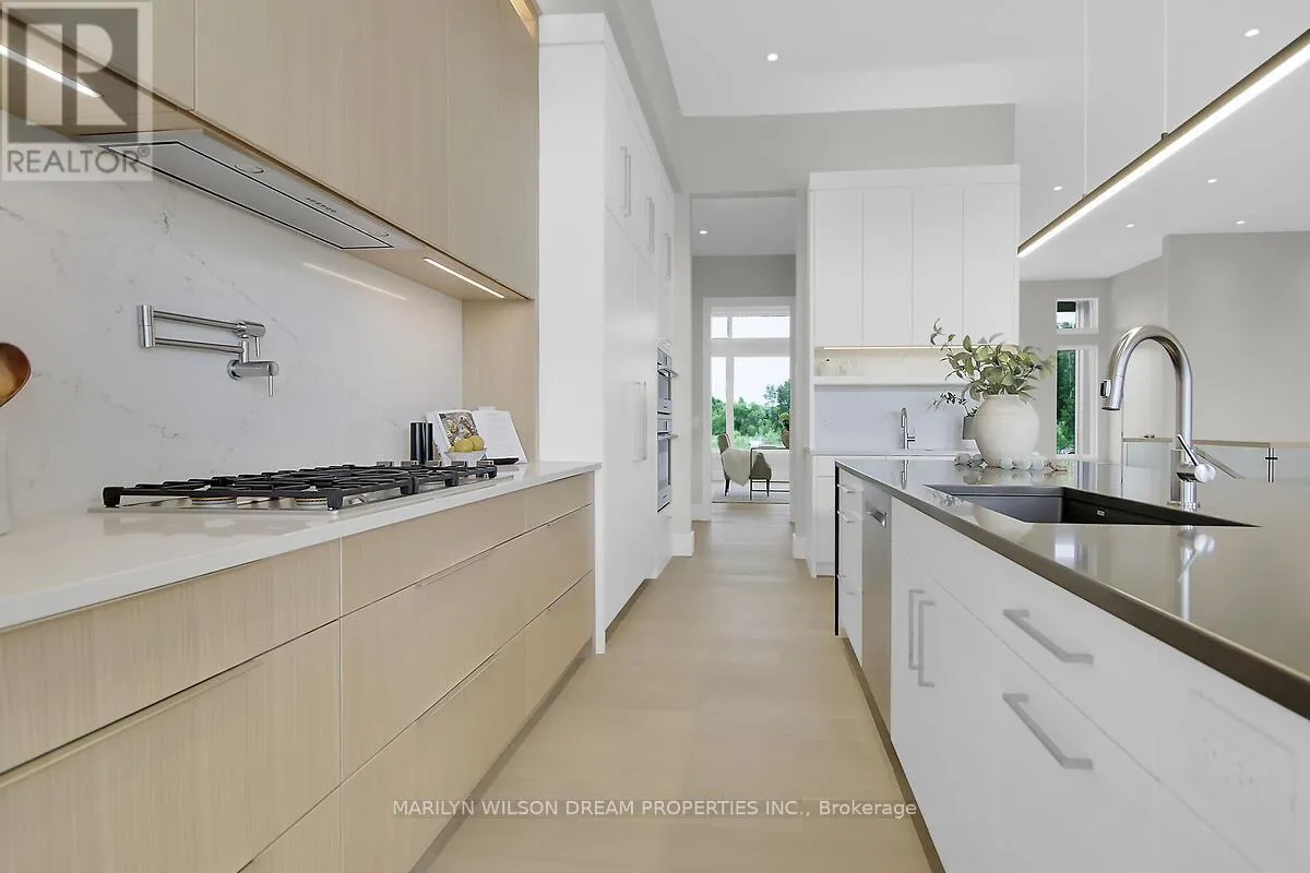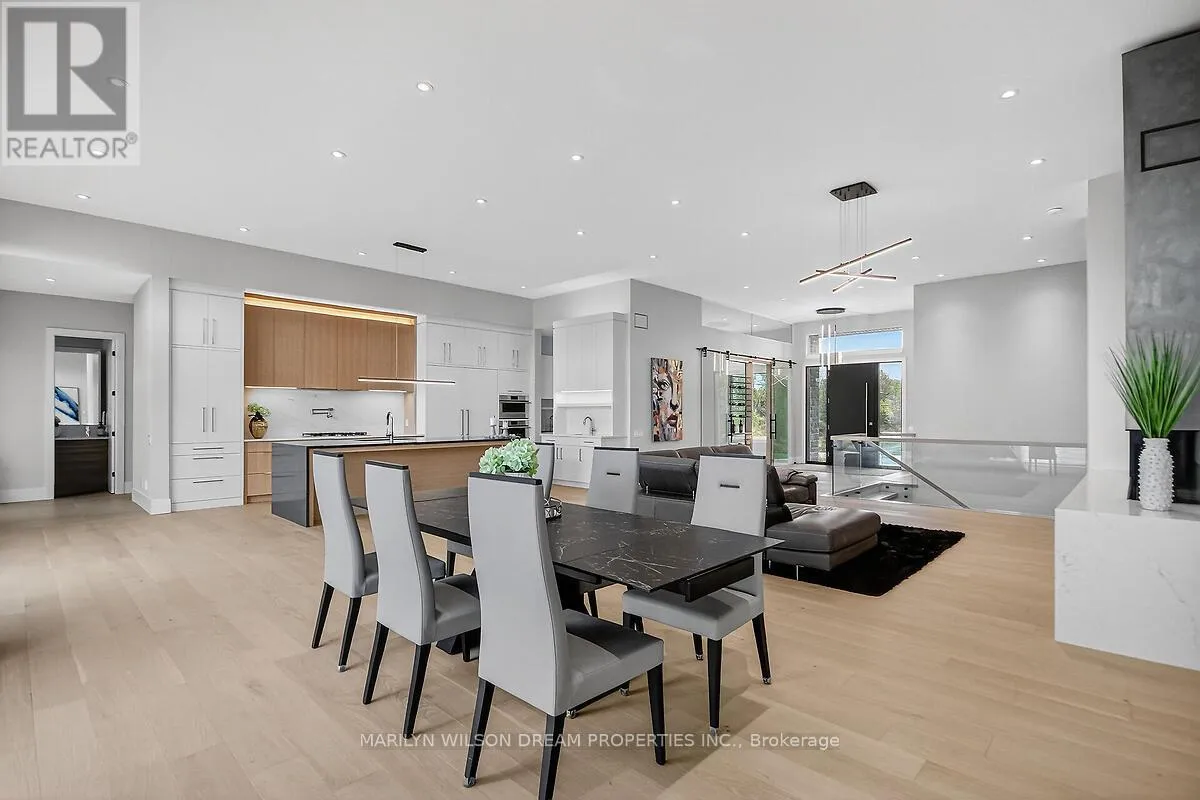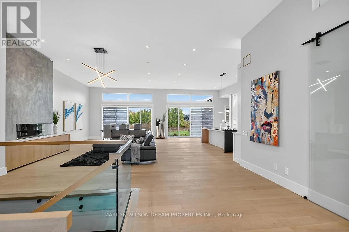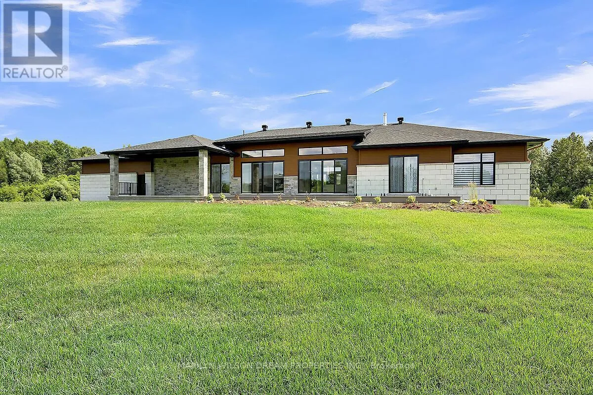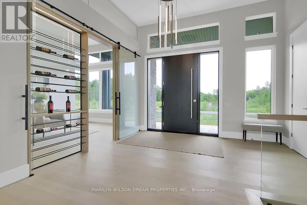 Cross Streets: Green Links Way & Green Jacket Crescent. ** Directions: Heading East on Mitch Owens Road, turn right onto Manotick Station Road. Turn left onto Green Links Way and Right onto Green Jacket Crescent. This custom designed bungalow offers both elegance and sophistication. Spectacular lot in estate subdivision with executive homes. Built by Patterson Homes, this residence has never been lived in! Attractive Dominion stone exterior and grand circular driveway. This breathtaking home is graced with magnificent scale, an abundance of natural light, high ceilings and an open floor plan. Whether you want privacy and relaxation or the perfect entertainment venue, this property is it! Step inside and the interior unfolds seamlessly with classic and contemporary design elements, offering a relaxed elegance. Flooring is 7" Vidar white oak hardwood and 30" x 30" porcelain tiles from Italy. This beautifully appointed home features a gourmet kitchen equipped with Fisher Paykel high-end appliances, a large quartz waterfall island, custom Louis L'artisan cabinetry and a butler's pantry. Flowing effortlessly into spacious living areas adorned with custom stone gas fireplace. Triple patio doors opening to the expansive hardwood deck, allowing for effortless indoor-outdoor entertaining. Elegant office with frameless glass sliding doors and custom wine display which can showcase 47 bottles. The primary suite boasts a spacious bedroom with patio doors to deck, a spa-like ensuite with a soaker tub, a walk-in double shower, dual vanities, heated floor and a custom walk-in closet. Two additional bedrooms with shared bath. Oversized mudroom with powder room and dog washing station. Solid maple floating staircase to lower level. High ceilings and in-floor radiant heating throughout. Spectacular 700 sq ft rec room with wet bar, fully sound insulated theatre, versatile bonus space perfect for fitness centre, 4th bedroom, full bath with sauna, powder room, ample storage and direct access from garage. Fully insulated massive 5 car garage features 14' ceilings and fast EV charger. Windows by Marlboro custom windows. Lutron lighting and networking wiring throughout. Tarion warranty include (id:27476)