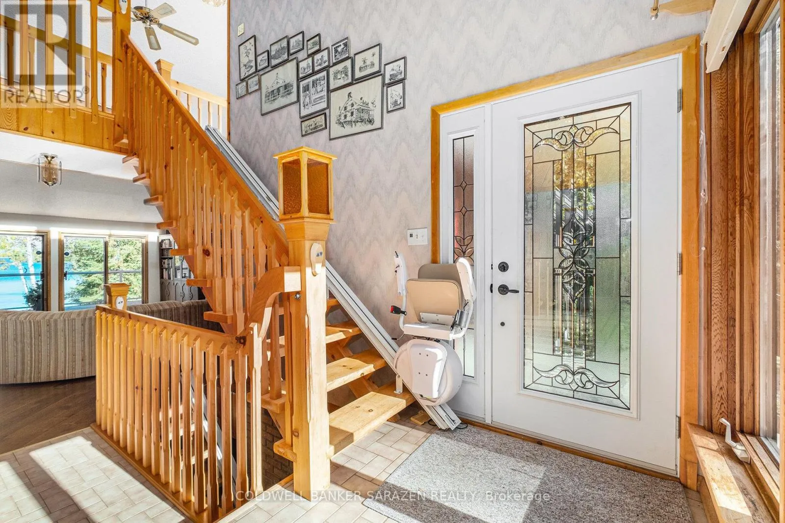 Cross Streets: Logger's Way. ** Directions: From Ottawa HWY 417 Westbound, take a right from Exit 169/Kinburn Side Road to Highway #17. Left on #17. Right on Galetta Side Road. Left on Logger's Way. Follow Logger's Way to Morris Island Drive, Property on Right Side. Tranquility awaits you! A short drive from Kanata where you can be enjoying a coffee on your beautiful large deck at your home on this gorgeous lot on the Ottawa River. The heart of this 2-Storey home boasts a Stone Fireplace from Floor to Ceiling! The kitchen boasts Granite counter tops and island with built-in JennAir Stove Top and provides access to large 3 season sunroom. Formal dining area with full set of patio doors also gives access to deck. Primary Bedroom on main level has 4 piece ensuite with heated floors, and a patio door entrance to the wrap around deck. The second Storey overlooks the living room and comes with 2 bedrooms and a bathroom. The finished basement Recreation Room with walk-out access has full brick wall with wood stove to cozy up to. Loads of storage! Your own woodworking shop in basement with direct access to outside! Plenty of room on your 50 foot deck to entertain guests! Large dock will accommodate your cruising boat and when the days boating is completed simply drive into the cradle and let the rail system pull your boat into your own Boat House. An oversized 2 car garage gives access to the home for easy entrance through a foyer into the kitchen. Property also includes a separate 3+ car garage with 2 large bay doors and a room off to the side with a small loft, used as storage or could be converted into a bunkie. A must see for anyone looking for that gorgeous view, direct water with boat house and dock, swimming, privacy... all of that and an easy commute to Ottawa! An adventurers dream you are a short walk away from the Morris Island Conservation Area which offers walking trails through diverse natural environments including forests, wetlands, and shoreline areas and minutes to the Ontario snowmobile trail system which leads directly to Quebec trail system. (id:27476)