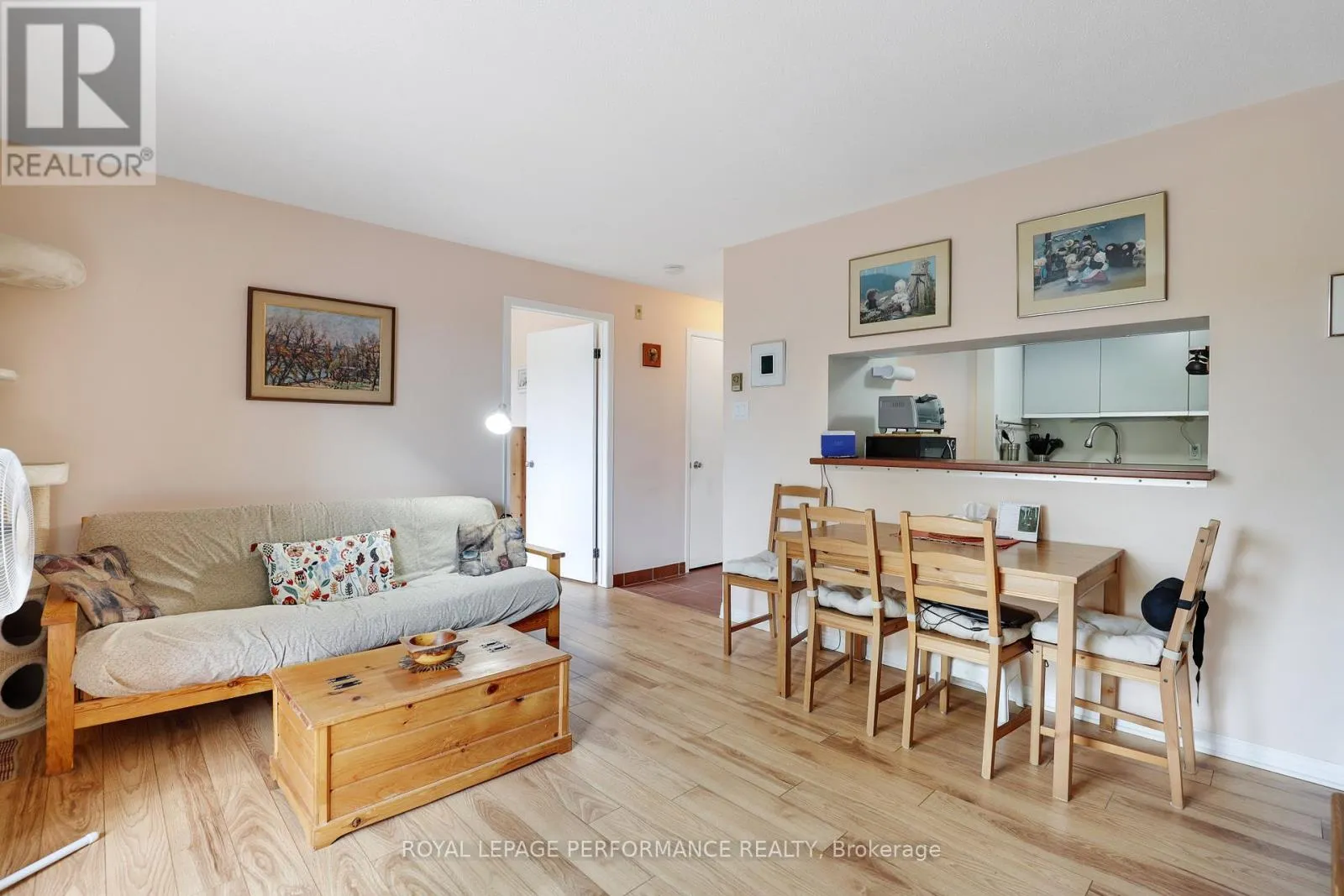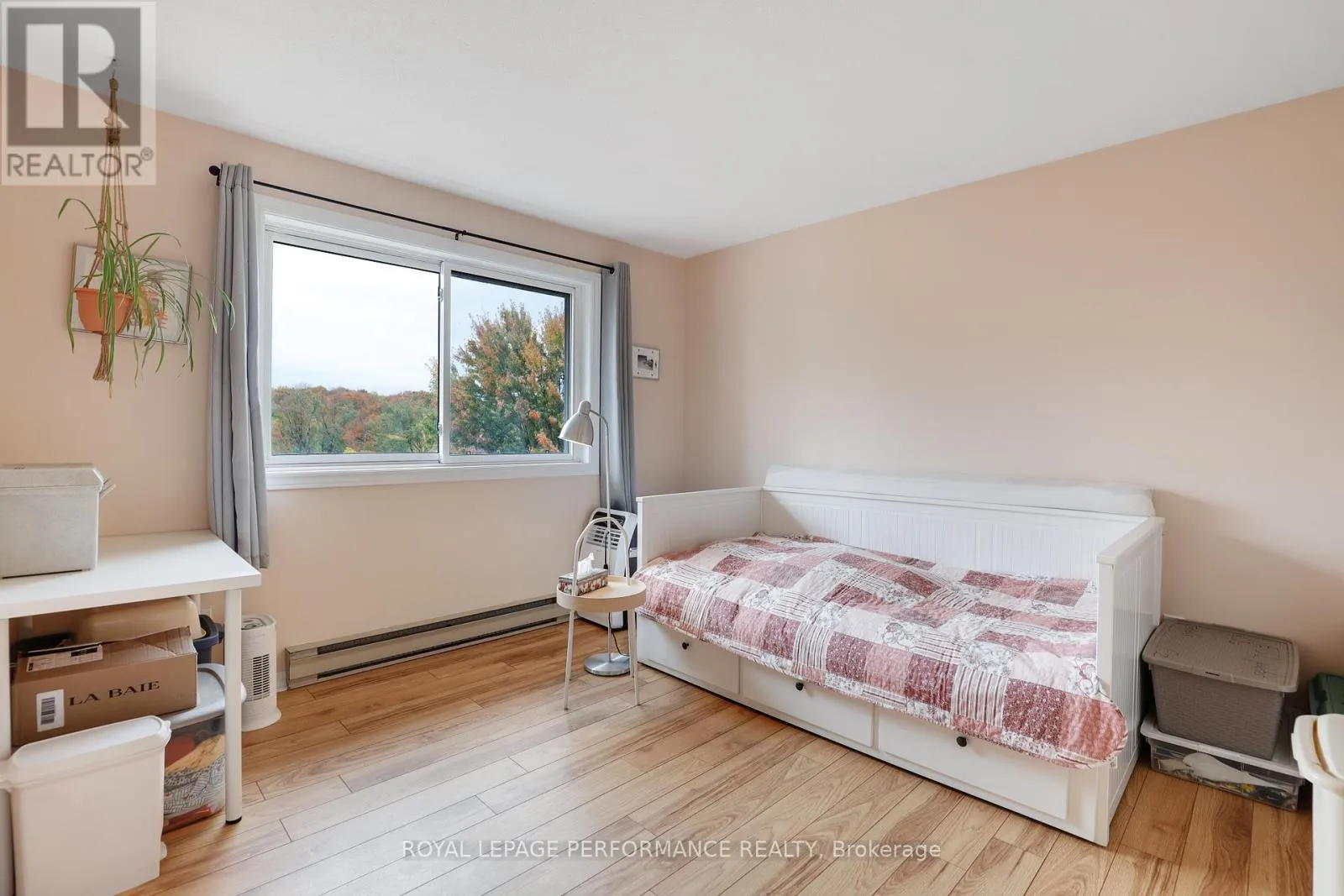 Cross Streets: St Laurent Blvd/Brittany Drive. ** Directions: From St. Laurent Blvd turn right onto Brittany Dr, turn right onto Quarry Rd. Light and bright top level 1 bed, 1 bath condo in a low-rise building with fabulous amenities! Nature lovers will love the beautiful view of the trees. For those who love to be active, just steps away is the recreation centre which includes an indoor pool, racquet courts, and equipped exercise room are sure to please. Other amenities also included are an outdoor pool, tennis courts and a lovely walking path circling two ponds, each with a fountain. Carpet-free living spaces make cleaning a breeze. Convenient in-suite laundry means saying goodbye to that laundromat. Handy breakfast bar between the Kitchen and Living area makes entertaining fun & easy. The primary bedroom features a spacious walk-in closet. Enjoy your morning coffee or after work aperitif on your cozy balcony with a beautiful view of the tree tops. Gorgeous in the fall! Other room measurement is the walk-in closet in the Bedroom. Public transit is close by, as is shopping, dining, The Montfort hospital, schools, government offices, and coffee shops. Just 10 minutes to downtown! Want to take a peek? Your new home is calling you. (id:27476)