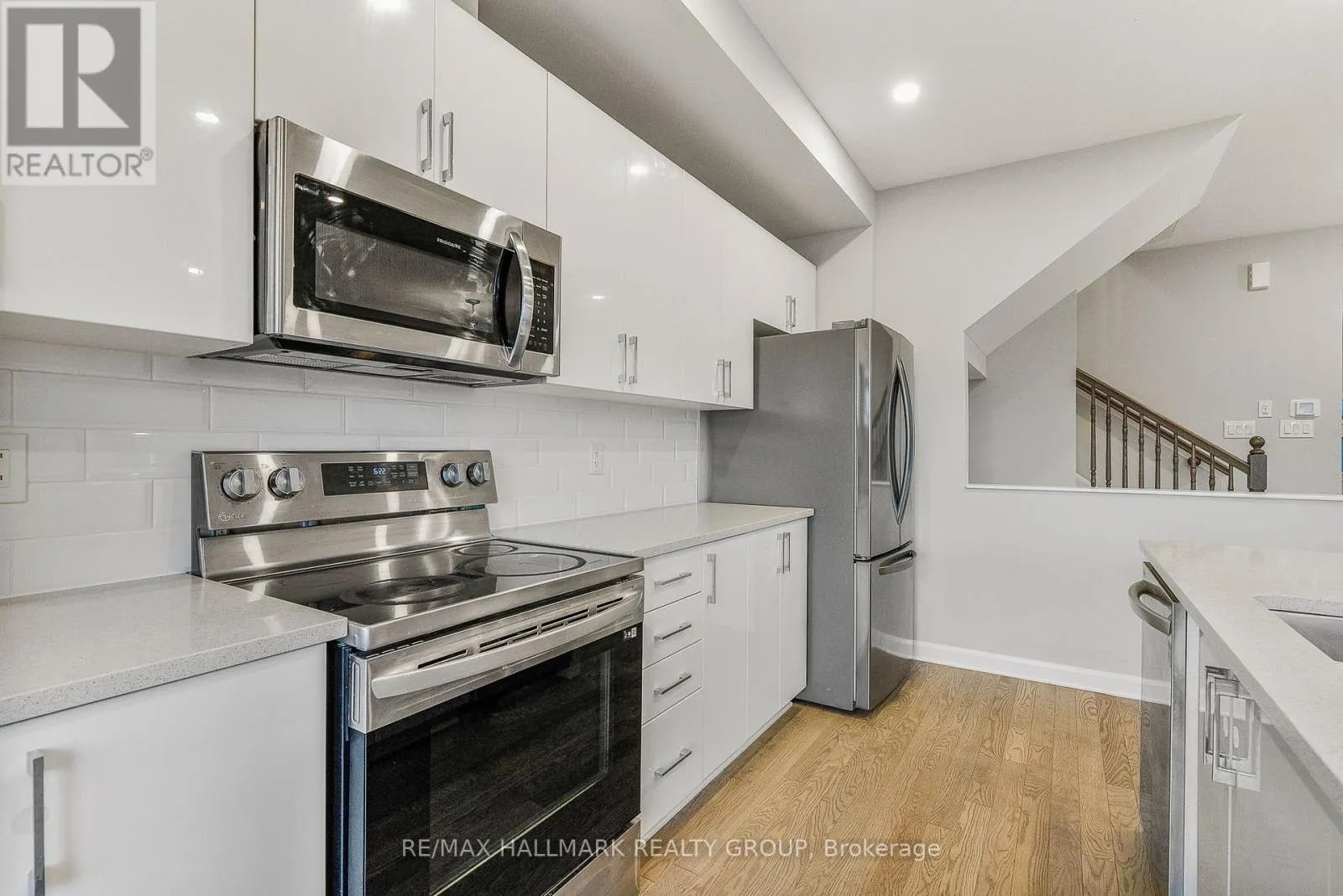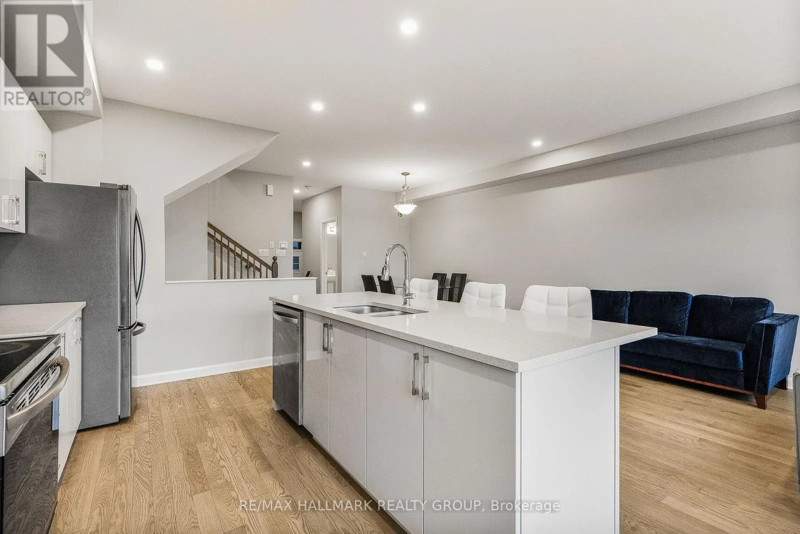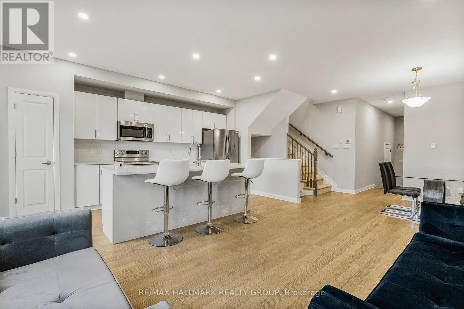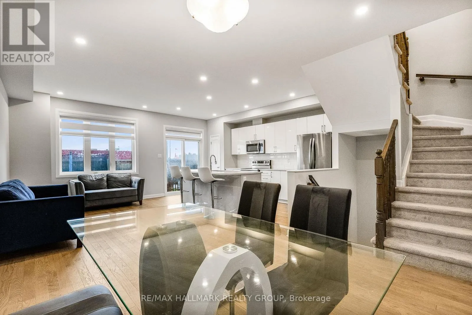 From Tenth Line, turn left onto Lakepointe Drive, then turn left onto Aquaview Drive then turn left onto Prominence Way Stunning Minto Monterey Townhouse, located on a quiet street! it features a spacious foyer with a large closet .a dedicated dining space, and a gorgeous kitchen with white cabinets, a pantry, quartz countertops, and an extended island. The kitchen overlooks the bright living room.Upstairs, you'll find a generously sized primary bedroom with a walk-in closet and a 3-piece ensuite with a glass shower. Two additional spacious secondary bedrooms, a full bath, and a laundry room complete this level.The finished basement offers a versatile family room with a large window and plenty of storage space.Great location, close to all amenities, parks, dog park, trails, schools, the community pond and more! (id:27476)