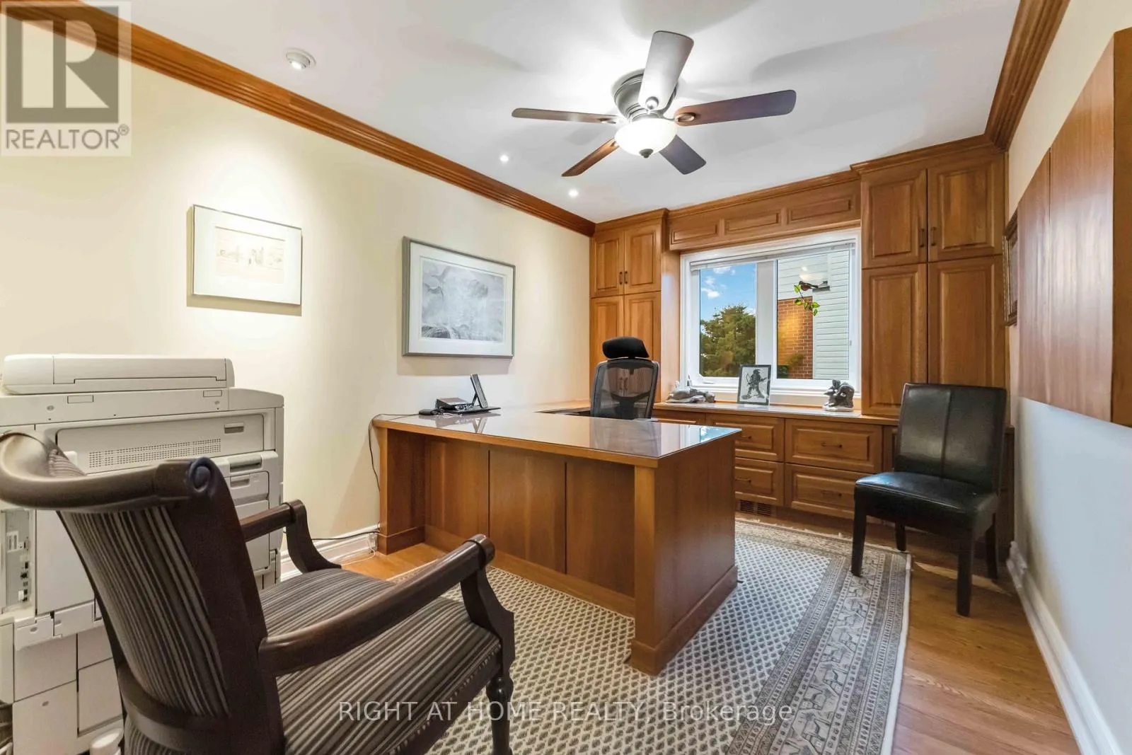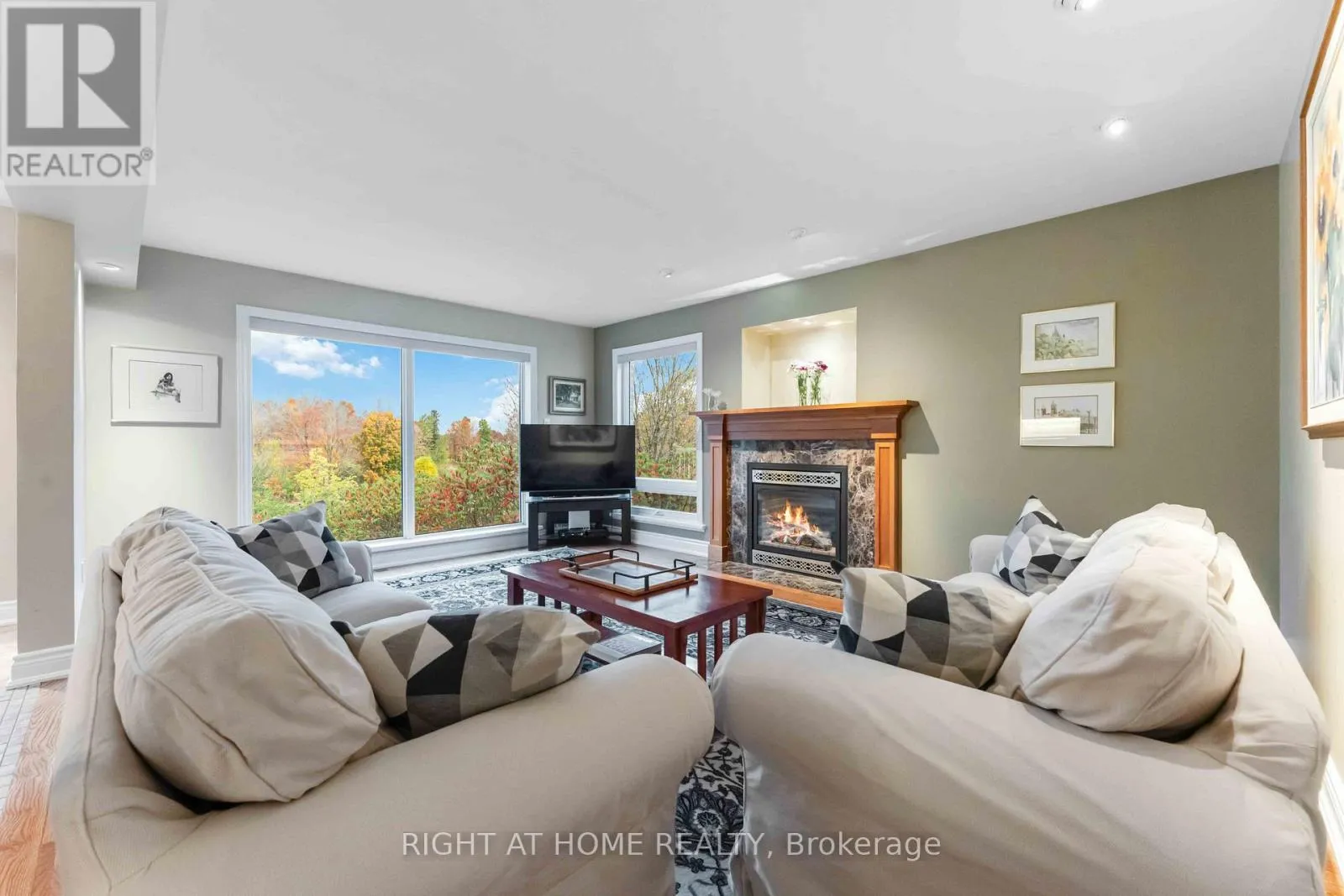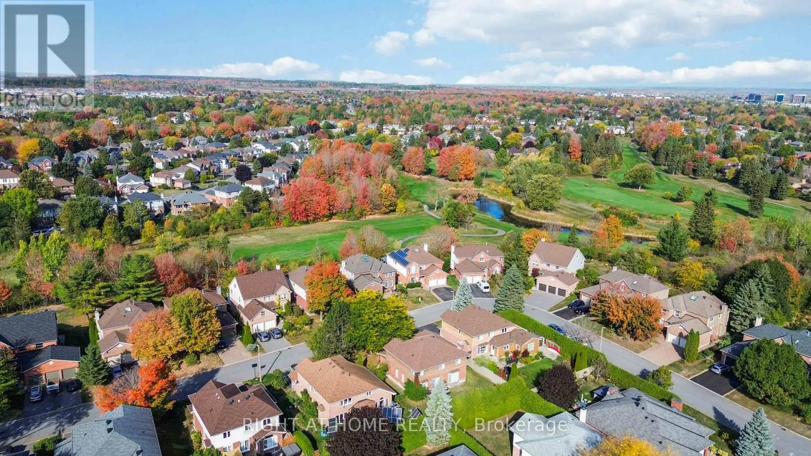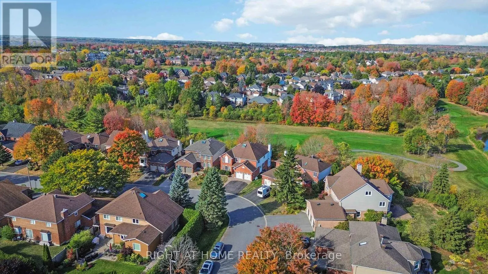 Cross Streets: Sherk Cr. ** Directions: Knudson Dr to Sherk Cr. Rosenfeld Cr runs off of Sherk Cr. Meticulously maintained 5-bedroom plus den, 5-bathroom luxury residence offering over 4,500 sq. ft. of elegant living space with a spectacular walkout backing directly onto the prestigious Kanata Lakes Golf Course. Perfectly positioned on a quiet, tree-lined street, this home combines refined sophistication, exceptional privacy, and an unparalleled lifestyle in one of Kanata's most sought-after neighbourhoods. The main level exudes warmth and grandeur with stylish hardwood floors flowing through the spacious living and dining areas. A gourmet kitchen features rich, solid cherry cabinets, granite countertops, and heated floors extending into the breakfast area and front foyer. Oversized windows frame breathtaking views of the golf course and its serene skating pond, flooding the space with natural light. Enjoy relaxed evenings by the gas fireplace in the family room, or focus in the private main-floor office, complete with custom cherry built-ins. The upper level offers five large bedrooms, including two en-suite bathrooms and a family bath. The expansive primary suite features a reading nook and a large walk-in closet. The lower level also includes a hobbyist workshop. The fully finished walkout lower level extends the living space with a massive recreation room, a cozy fireplace, a half bathroom which can be converted into a full bathroom, and direct access to the private backyard overlooking the golf course. Additional highlights include a 4-car laneway, insulated garage, large front hall walk-in closet, 2021 furnace, 2024 air conditioner, 2017 hot water tank (owned), new deck (2022) with glass railing, gazebo, 200-amp electrical panel, and tastefully situated custom pot lights. A true masterpiece of comfort and craftsmanship, this home offers the rare combination of elegance, tranquillity, and scenic beauty. Watch the seasons change over the fairways and pond from your own back. An exceptional lifestyle awaits in Kanata Lakes. (id:27476)