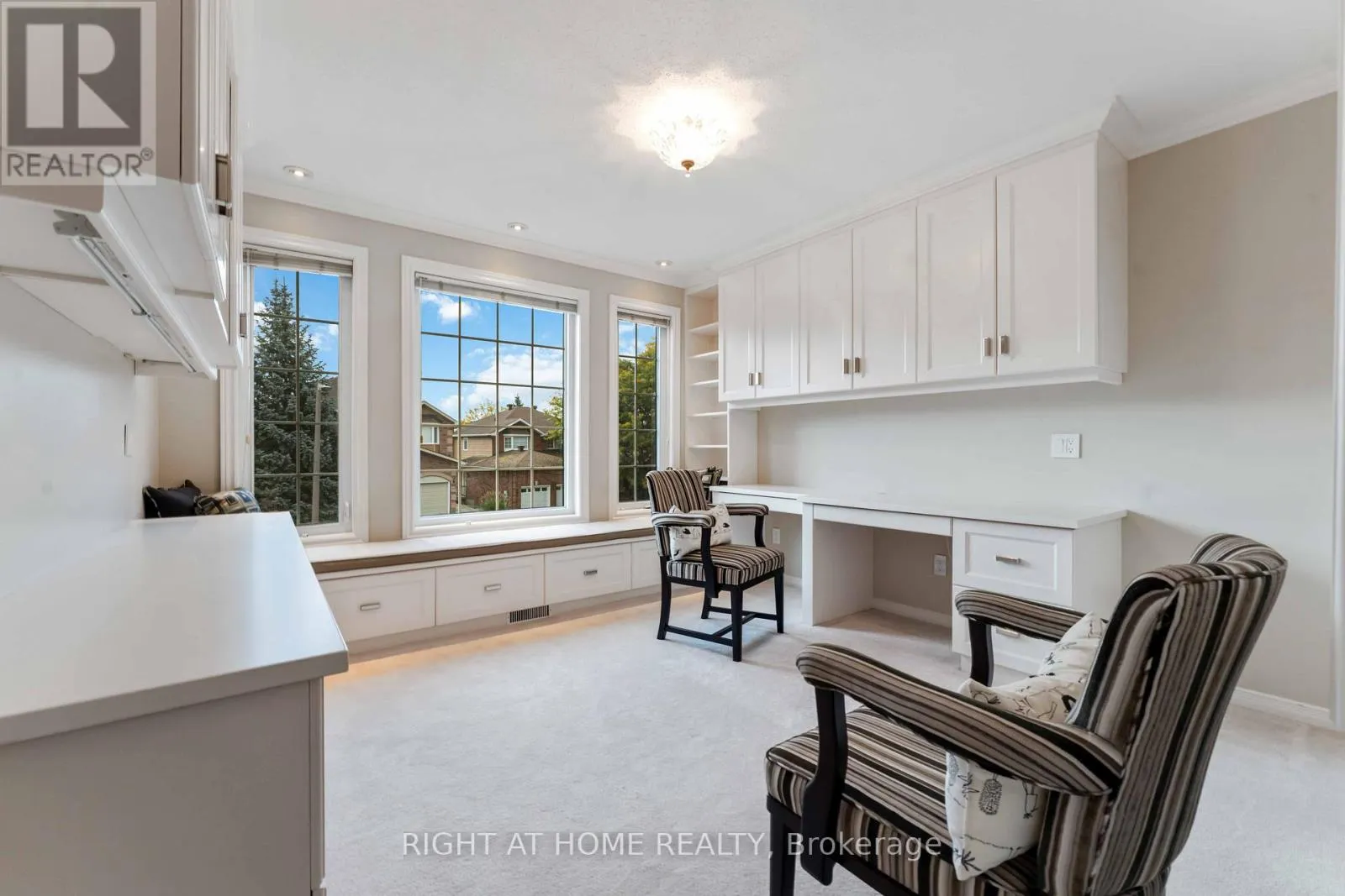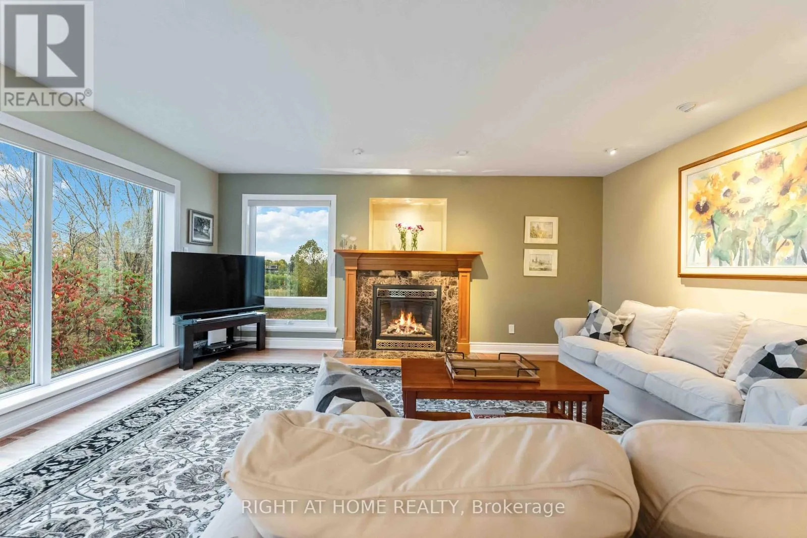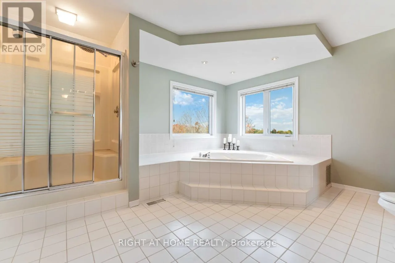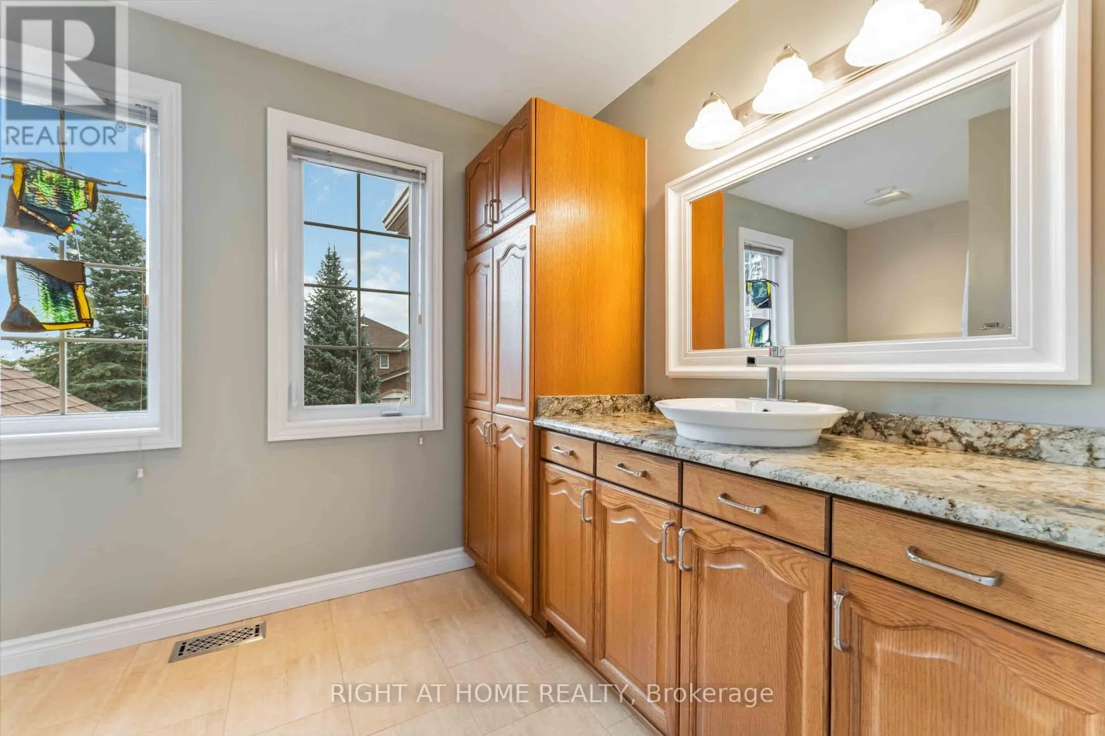 Cross Streets: Sherk Cr. ** Directions: Knudson Dr to Sherk Cr. Rosenfeld Cr runs off of Sherk Cr. Meticulously maintained 5-bedroom plus den, 5-bathroom luxury residence offering over 4,500 sq. ft. of elegant living space with a spectacular walkout backing directly onto the prestigious Kanata Lakes Golf Course. Perfectly positioned on a quiet, tree-lined street, this home combines refined sophistication, exceptional privacy, and an unparalleled lifestyle in one of Kanata's most sought-after neighbourhoods. The main level exudes warmth and grandeur with stylish hardwood floors flowing through the spacious living and dining areas. A gourmet kitchen features rich, solid cherry cabinets, granite countertops, and heated floors extending into the breakfast area and front foyer. Oversized windows frame breathtaking views of the golf course and its serene skating pond, flooding the space with natural light. Enjoy relaxed evenings by the gas fireplace in the family room, or focus in the private main-floor office, complete with custom cherry built-ins. The upper level offers five large bedrooms, including two en-suite bathrooms and a family bath. The expansive primary suite features a reading nook and a large walk-in closet. The lower level also includes a hobbyist workshop. The fully finished walkout lower level extends the living space with a massive recreation room, a cozy fireplace, a half bathroom which can be converted into a full bathroom, and direct access to the private backyard overlooking the golf course. Additional highlights include a 4-car laneway, insulated garage, large front hall walk-in closet, 2021 furnace, 2024 air conditioner, 2017 hot water tank (owned), new deck (2022) with glass railing, gazebo, 200-amp electrical panel, and tastefully situated custom pot lights. A true masterpiece of comfort and craftsmanship, this home offers the rare combination of elegance, tranquillity, and scenic beauty. Watch the seasons change over the fairways and pond from your own back. An exceptional lifestyle awaits in Kanata Lakes. (id:27476)