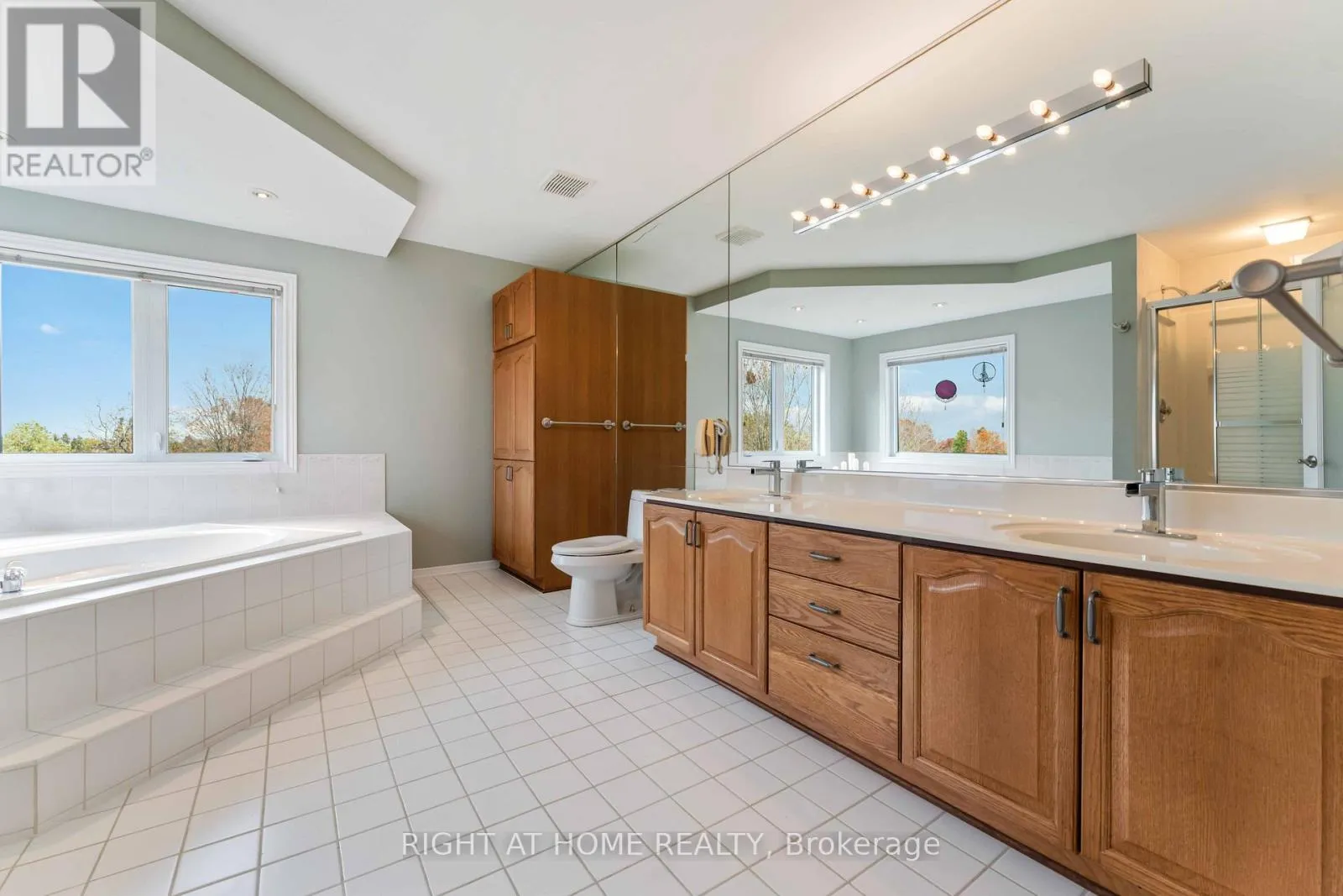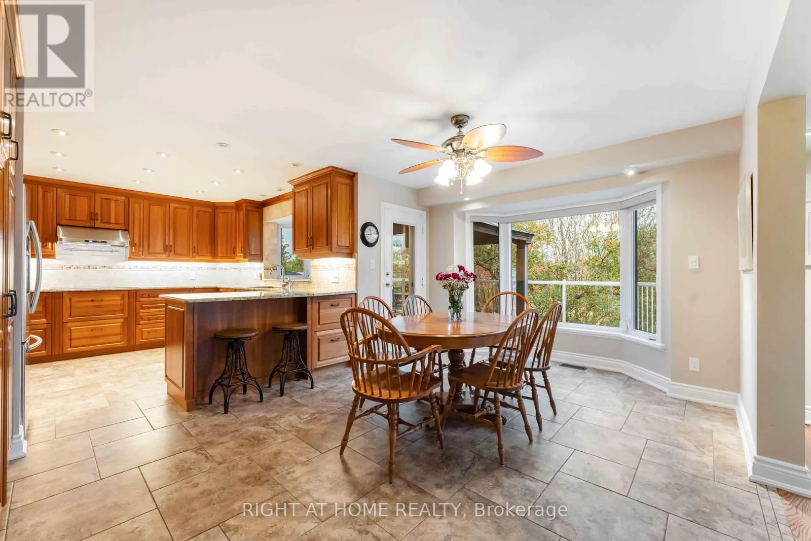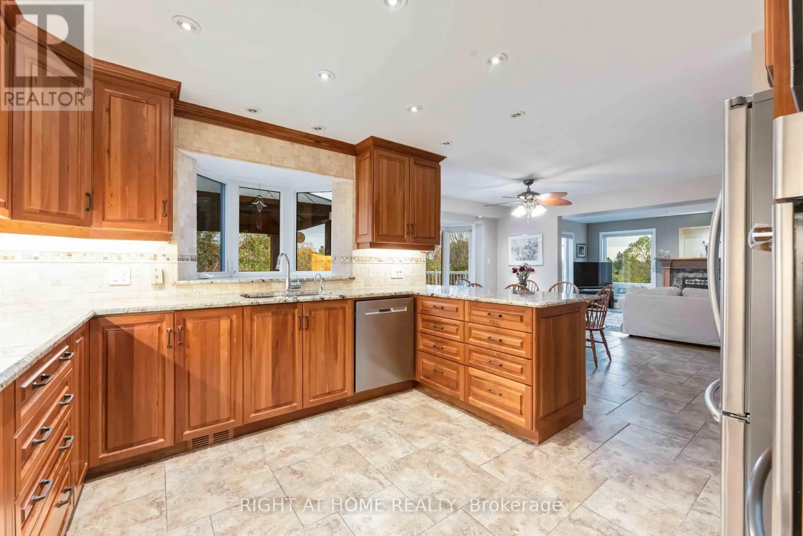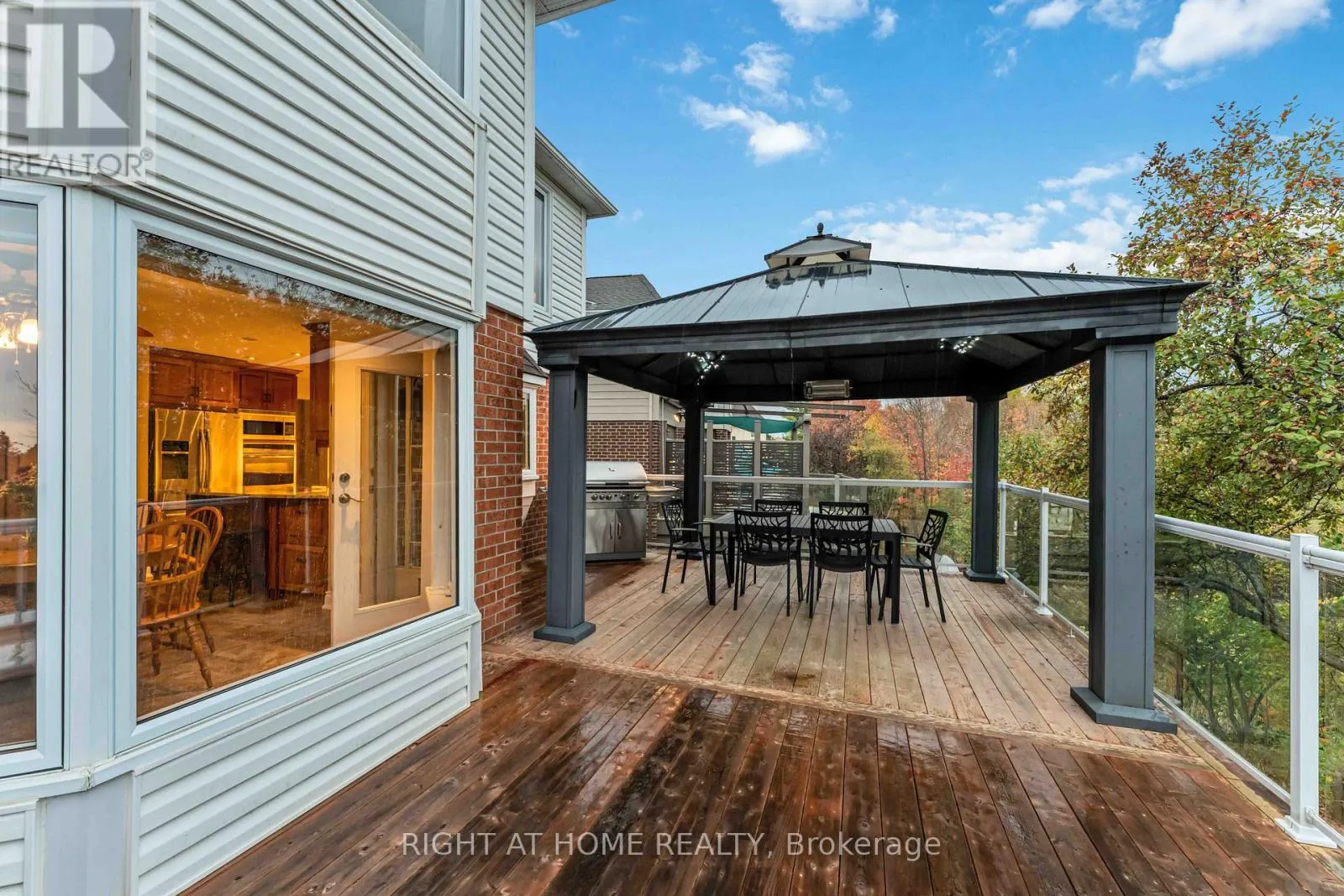 Cross Streets: Sherk Cr. ** Directions: Knudson Dr to Sherk Cr. Rosenfeld Cr runs off of Sherk Cr. Meticulously maintained 5-bedroom plus den, 5-bathroom luxury residence offering over 4,500 sq. ft. of elegant living space with a spectacular walkout backing directly onto the prestigious Kanata Lakes Golf Course. Perfectly positioned on a quiet, tree-lined street, this home combines refined sophistication, exceptional privacy, and an unparalleled lifestyle in one of Kanata's most sought-after neighbourhoods. The main level exudes warmth and grandeur with stylish hardwood floors flowing through the spacious living and dining areas. A gourmet kitchen features rich, solid cherry cabinets, granite countertops, and heated floors extending into the breakfast area and front foyer. Oversized windows frame breathtaking views of the golf course and its serene skating pond, flooding the space with natural light. Enjoy relaxed evenings by the gas fireplace in the family room, or focus in the private main-floor office, complete with custom cherry built-ins. The upper level offers five large bedrooms, including two en-suite bathrooms and a family bath. The expansive primary suite features a reading nook and a large walk-in closet. The lower level also includes a hobbyist workshop. The fully finished walkout lower level extends the living space with a massive recreation room, a cozy fireplace, a half bathroom which can be converted into a full bathroom, and direct access to the private backyard overlooking the golf course. Additional highlights include a 4-car laneway, insulated garage, large front hall walk-in closet, 2021 furnace, 2024 air conditioner, 2017 hot water tank (owned), new deck (2022) with glass railing, gazebo, 200-amp electrical panel, and tastefully situated custom pot lights. A true masterpiece of comfort and craftsmanship, this home offers the rare combination of elegance, tranquillity, and scenic beauty. Watch the seasons change over the fairways and pond from your own back. An exceptional lifestyle awaits in Kanata Lakes. (id:27476)