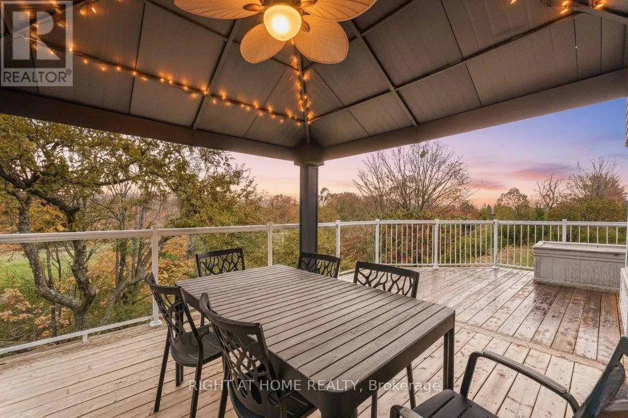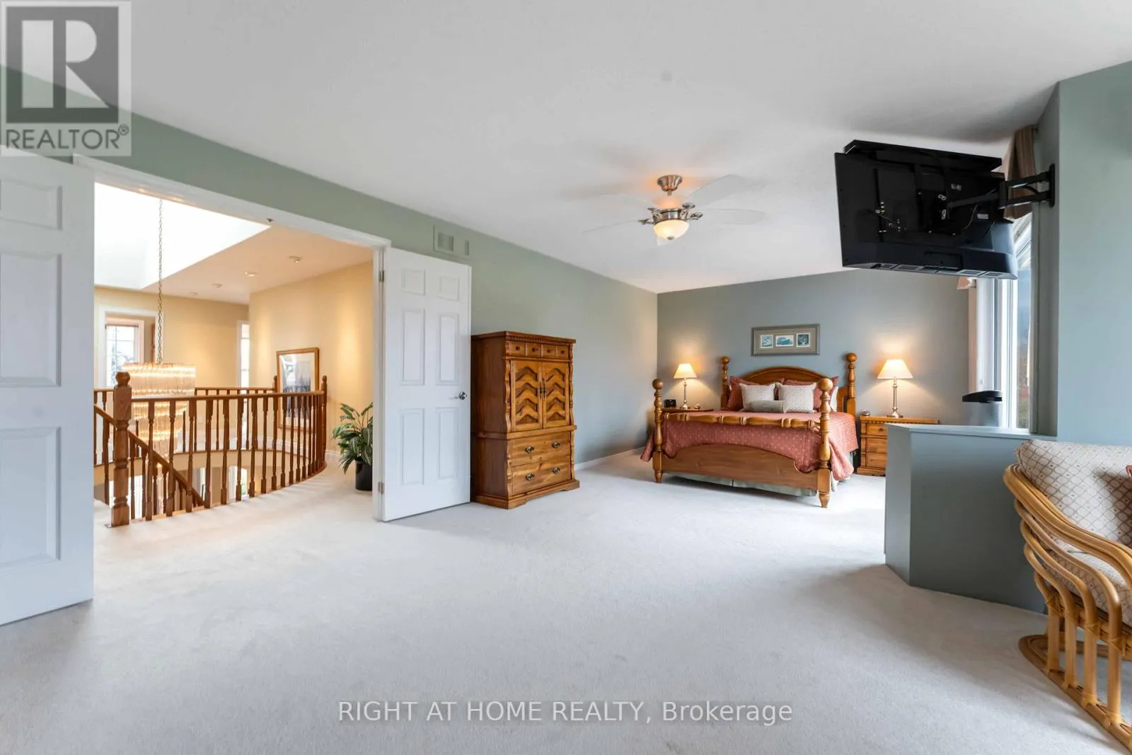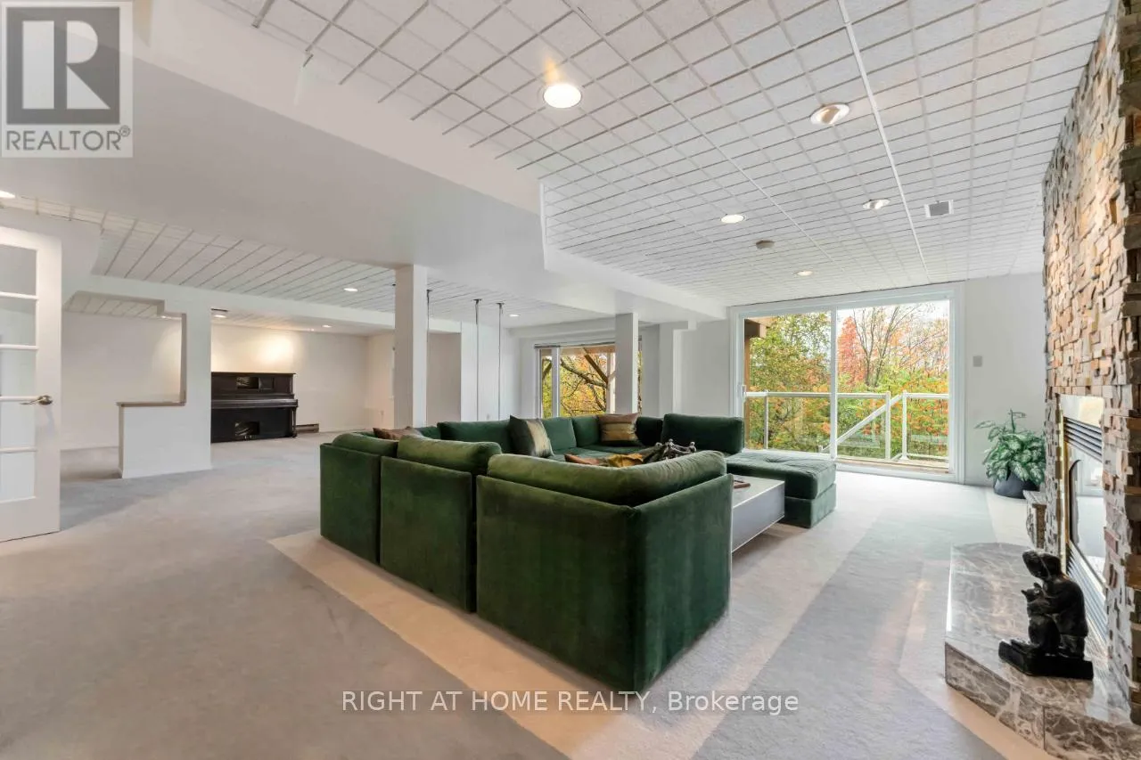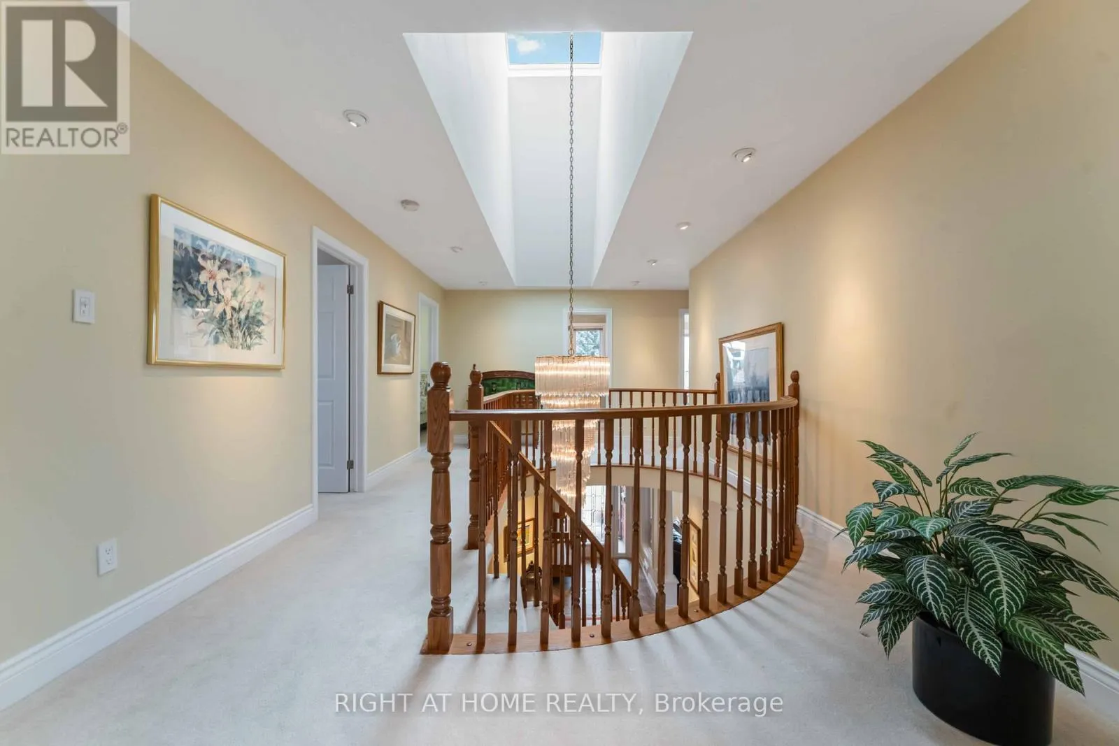 Cross Streets: Sherk Cr. ** Directions: Knudson Dr to Sherk Cr. Rosenfeld Cr runs off of Sherk Cr. Meticulously maintained 5-bedroom plus den, 5-bathroom luxury residence offering over 4,500 sq. ft. of elegant living space with a spectacular walkout backing directly onto the prestigious Kanata Lakes Golf Course. Perfectly positioned on a quiet, tree-lined street, this home combines refined sophistication, exceptional privacy, and an unparalleled lifestyle in one of Kanata's most sought-after neighbourhoods. The main level exudes warmth and grandeur with stylish hardwood floors flowing through the spacious living and dining areas. A gourmet kitchen features rich, solid cherry cabinets, granite countertops, and heated floors extending into the breakfast area and front foyer. Oversized windows frame breathtaking views of the golf course and its serene skating pond, flooding the space with natural light. Enjoy relaxed evenings by the gas fireplace in the family room, or focus in the private main-floor office, complete with custom cherry built-ins. The upper level offers five large bedrooms, including two en-suite bathrooms and a family bath. The expansive primary suite features a reading nook and a large walk-in closet. The lower level also includes a hobbyist workshop. The fully finished walkout lower level extends the living space with a massive recreation room, a cozy fireplace, a half bathroom which can be converted into a full bathroom, and direct access to the private backyard overlooking the golf course. Additional highlights include a 4-car laneway, insulated garage, large front hall walk-in closet, 2021 furnace, 2024 air conditioner, 2017 hot water tank (owned), new deck (2022) with glass railing, gazebo, 200-amp electrical panel, and tastefully situated custom pot lights. A true masterpiece of comfort and craftsmanship, this home offers the rare combination of elegance, tranquillity, and scenic beauty. Watch the seasons change over the fairways and pond from your own back. An exceptional lifestyle awaits in Kanata Lakes. (id:27476)