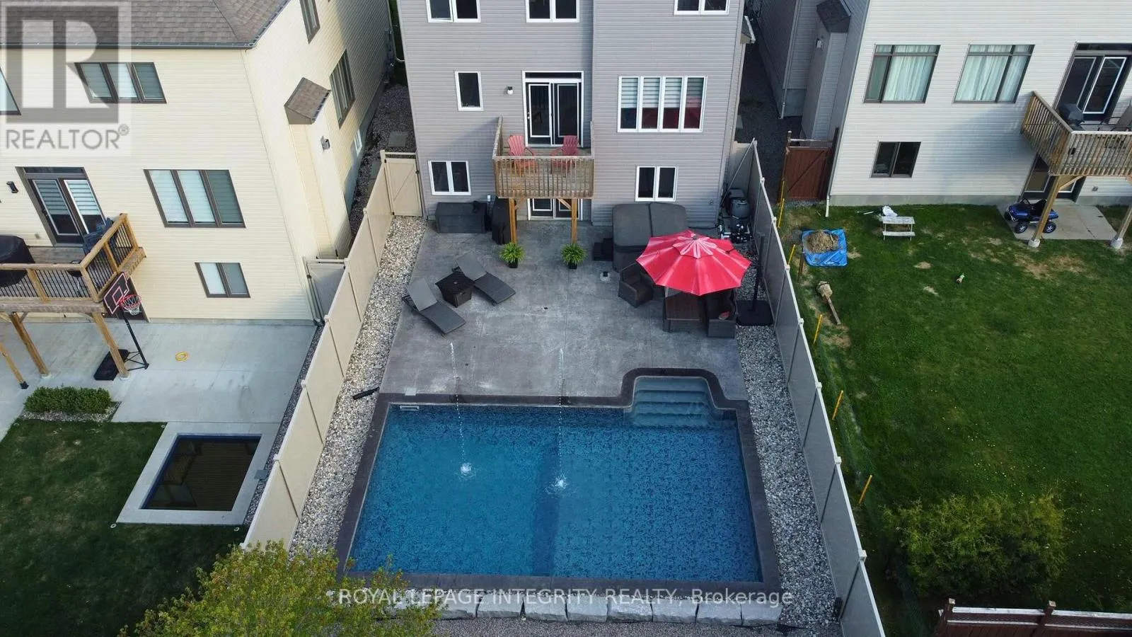Cross Streets: Parade Dr and Hartsmere Dr. ** Directions: Stittsville Main St. to Parade Dr. OR Fernbank Rd. to Hartsmere Dr, left on Dalmation Way, right on Parade Dr. Welcome to your dream home on Parade Drive, where luxury meets lifestyle! This stunning property offers exceptional curb appeal with a welcoming front porch, an insulated 2-car garage, and a location directly across from Howard A. Maguire Park,featuring multiple play structures, a pickleball/tennis court, sandbox, and expansive green space. Inside, you're greeted by a show-stopping feature wall in the front entry and gleaming floors throughout the main level. The kitchen is a true standout complete with stone counters, stainless steel appliances, a central island with breakfast bar, and elegant finishes. This beautiful kitchen opens seamlessly into the bright, airy living room with a gorgeous gas fireplace and oversized folding doors leading to your upper deck. The dining room is inviting and spacious, perfect for family dinners or entertaining. This level also includes a stylish powder room, convenient laundry room, and interior access to the garage. Upstairs, plush carpeting adds comfort to all four bedrooms. The generous primary suite features another eye-catching feature wall, a walk-in closet, and a luxurious ensuite with stone counters, double sinks, a glass shower, and soaker tub. A second full bathroom with granite counters and three additional well-sized bedrooms complete this level.The walk-out lower level is unfinished and ready to be customized to suit your family's needs - whether it's a home gym, rec room, additional living space, or all of the above. It opens directly to your incredible private backyard oasis - fully landscaped and featuring a stunning inground pool with two water fountains, a relaxing hot tub, and multiple zones for outdoor living and entertaining.This is a rare opportunity to own a high-end home with all the extras, in a location that's perfect for families. Don't miss it! (id:27476)