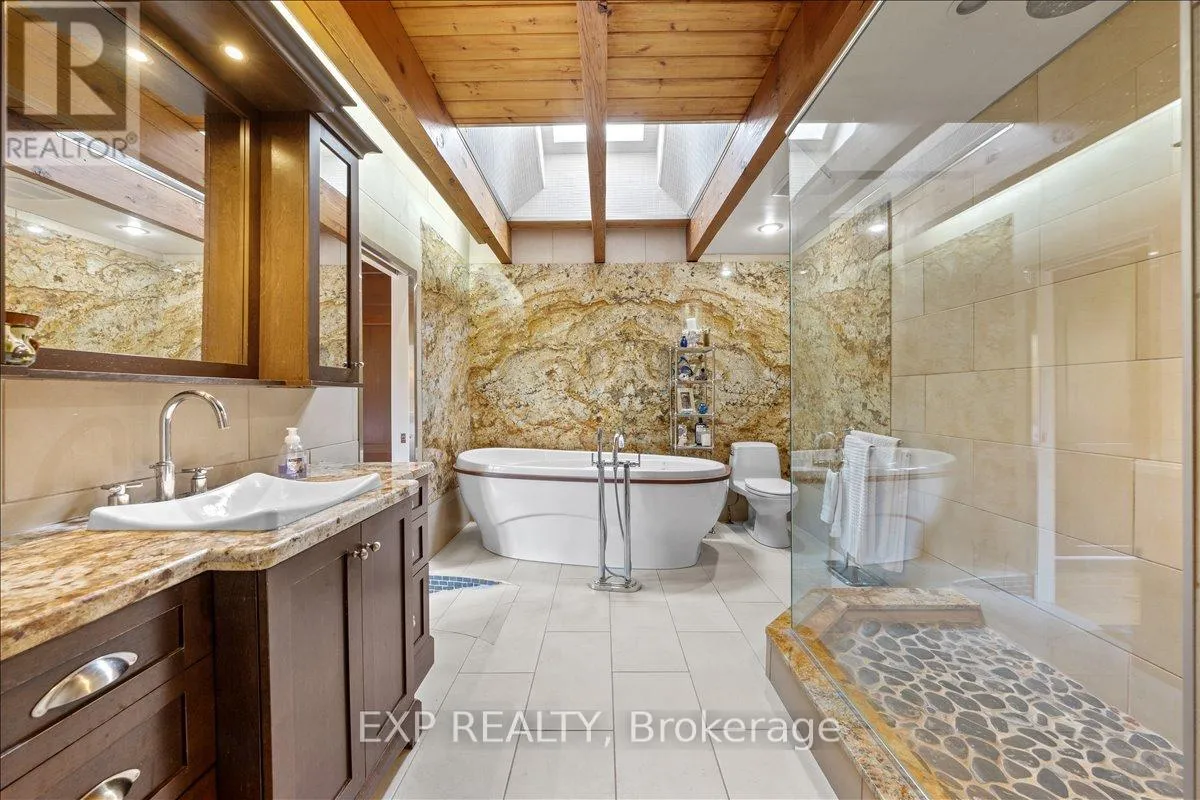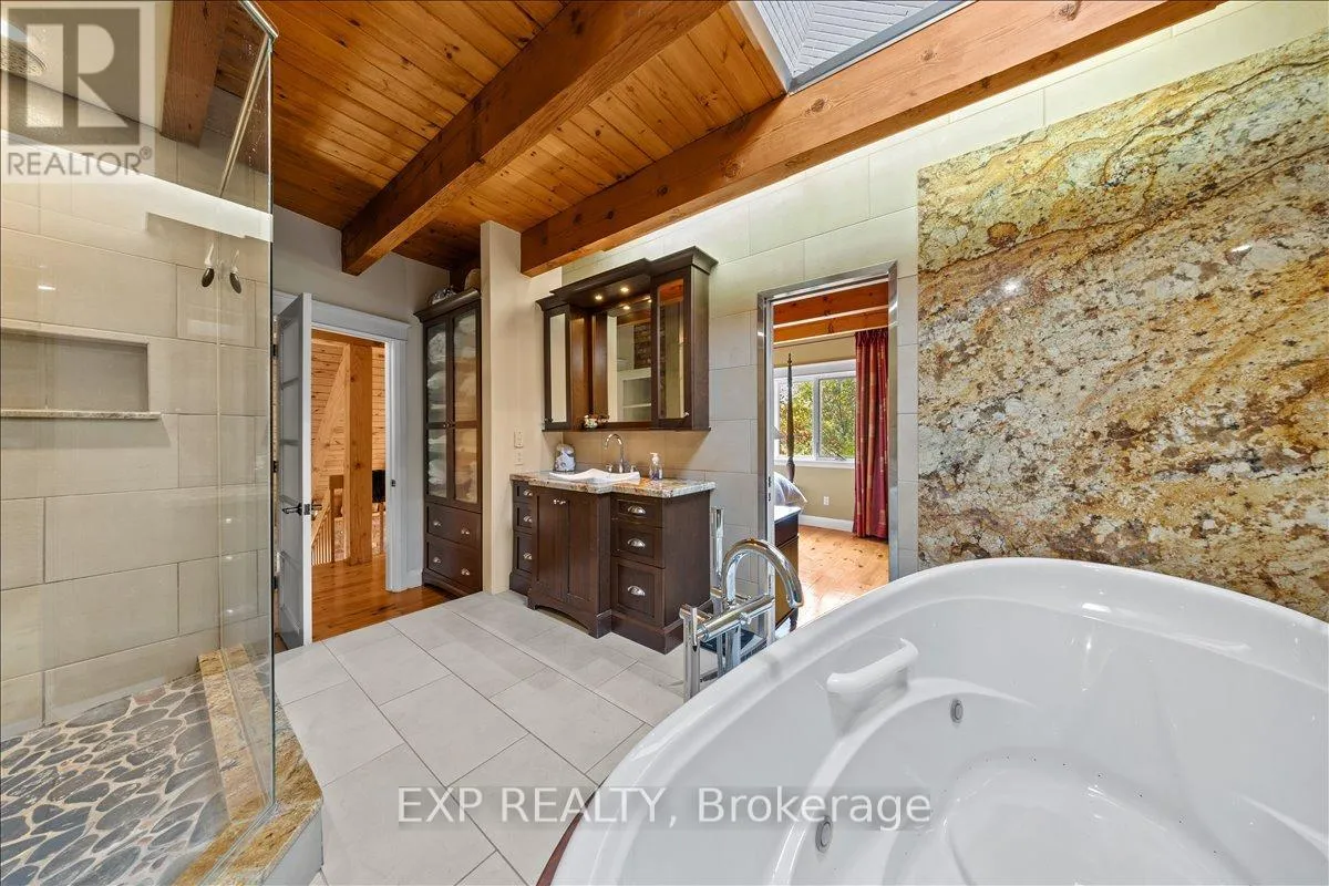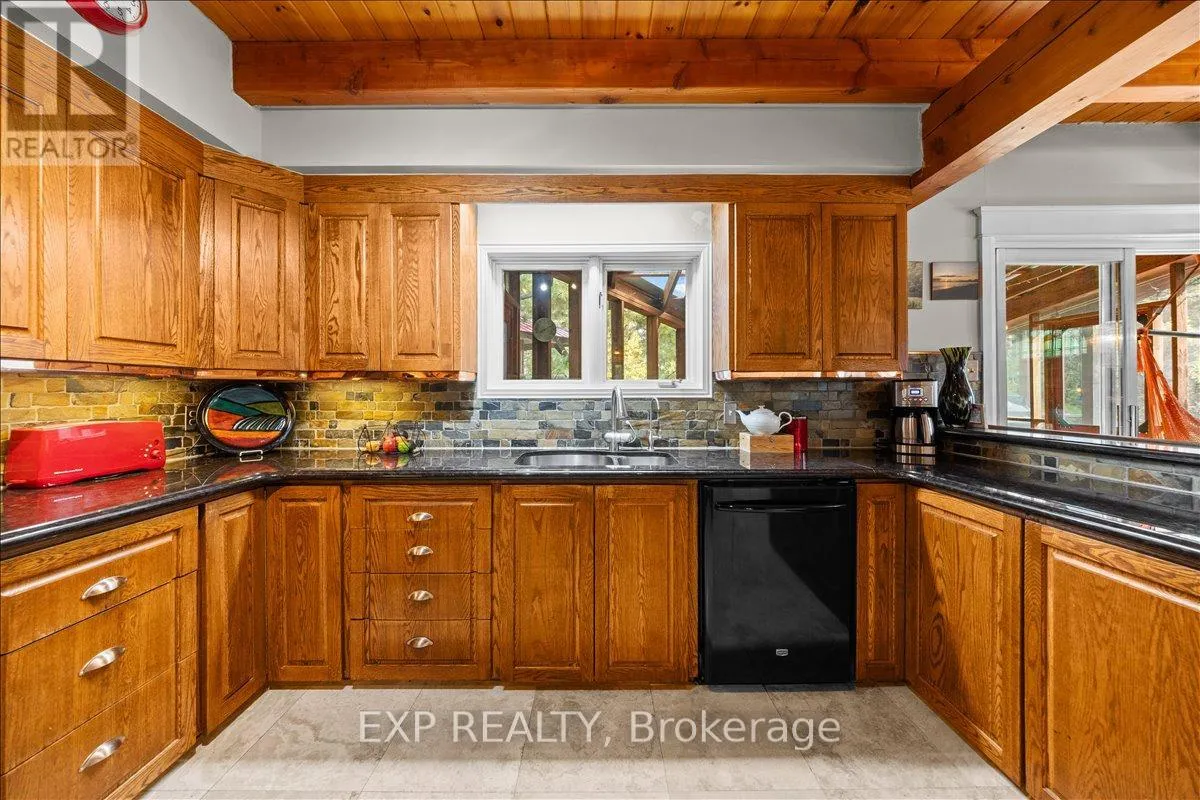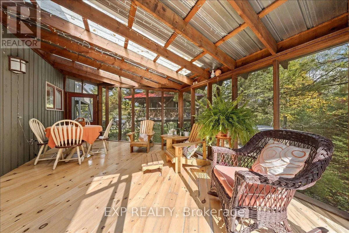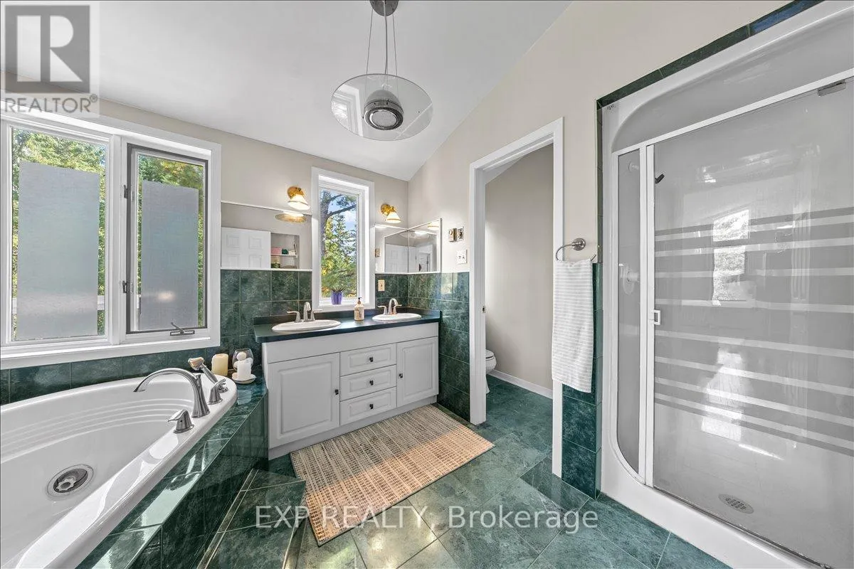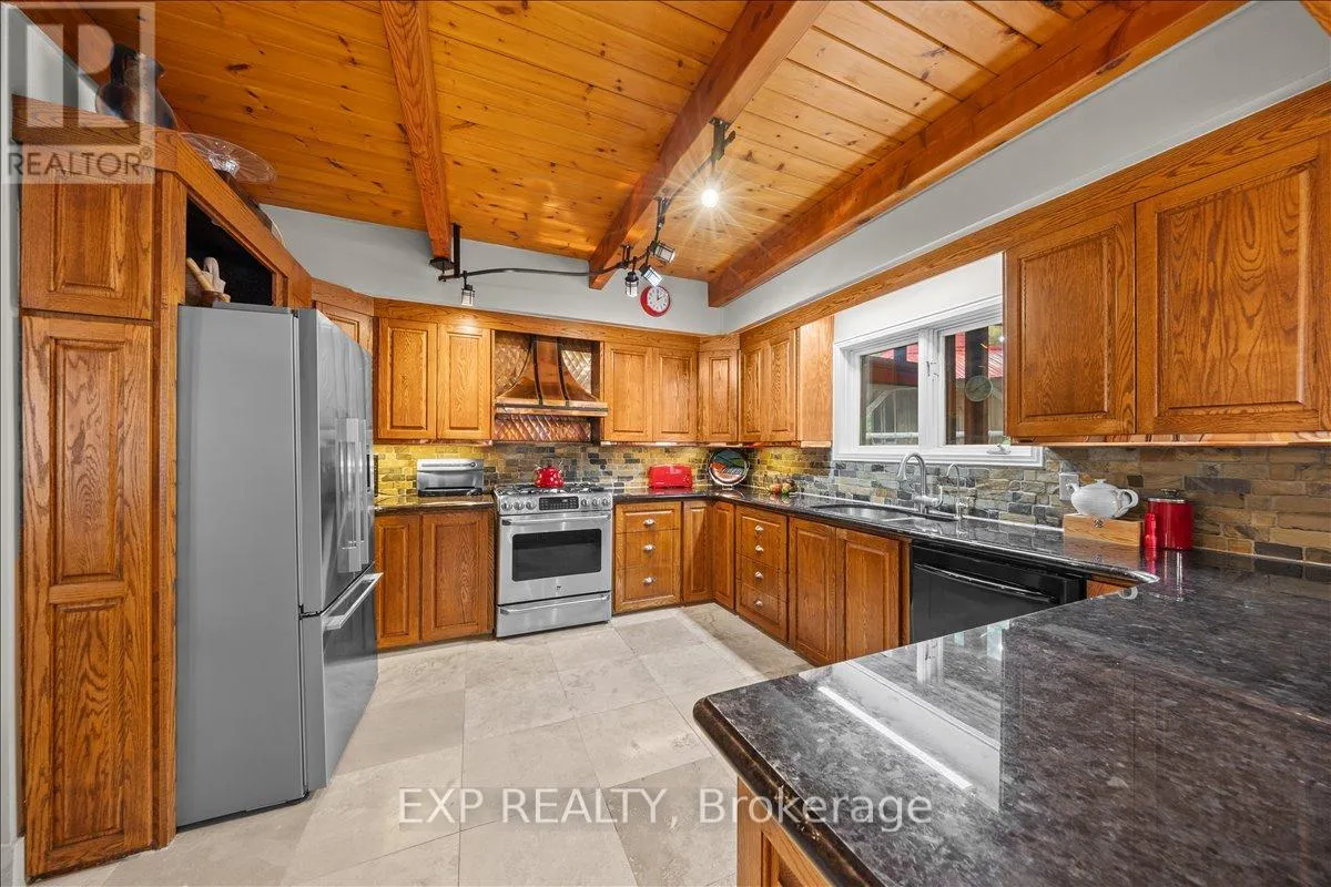Cross Streets: Spruce Ridge Road/ Hazeldean Road. ** Directions: Just west of Stittsville off Hwy 7 turn right on Spruce Ridge Rd. Incredible opportunity to own a one-of-a-kind custom home on 25 acres of private, wooded land with vast future potential. Designed with passive solar principles, this home features a south-facing double brick wall encapsulated by a greenhouse, maximizing energy efficiency and natural light throughout the seasons. Inside, handcrafted details shine with exposed structural BC fir beams, wide plank pine flooring, and custom oak kitchen cabinetry. The kitchen is both functional and beautiful, complete with stainless steel appliances and a custom hood fan, all thoughtfully integrated into the homes warm, natural aesthetic. The multi-level layout offers spacious principal rooms, vaulted ceilings, a screened-in porch, and flexible areas ideal for family living, working from home, or entertaining. Step outside to your private backyard oasis featuring a wood-burning sauna, scenic trails, and a custom treehouse nestled in the trees perfect for relaxation or play. A large detached shop provides excellent space for a home-based business or serious hobbyist, while the attached garage adds everyday convenience. Roofing has been thoughtfully maintained with new shingles installed in 2024, and durable metal sections designed for long-term performance. Located just 5 minutes to Farm Boy, 20 minutes to Kanata, and featuring side yard frontage on Hazeldean Road, this home offers unmatched privacy with excellent proximity to amenities and significant future development potential thanks to its visibility and access. A truly rare property that combines craftsmanship, energy efficiency, and long-term opportunity. (id:27476)