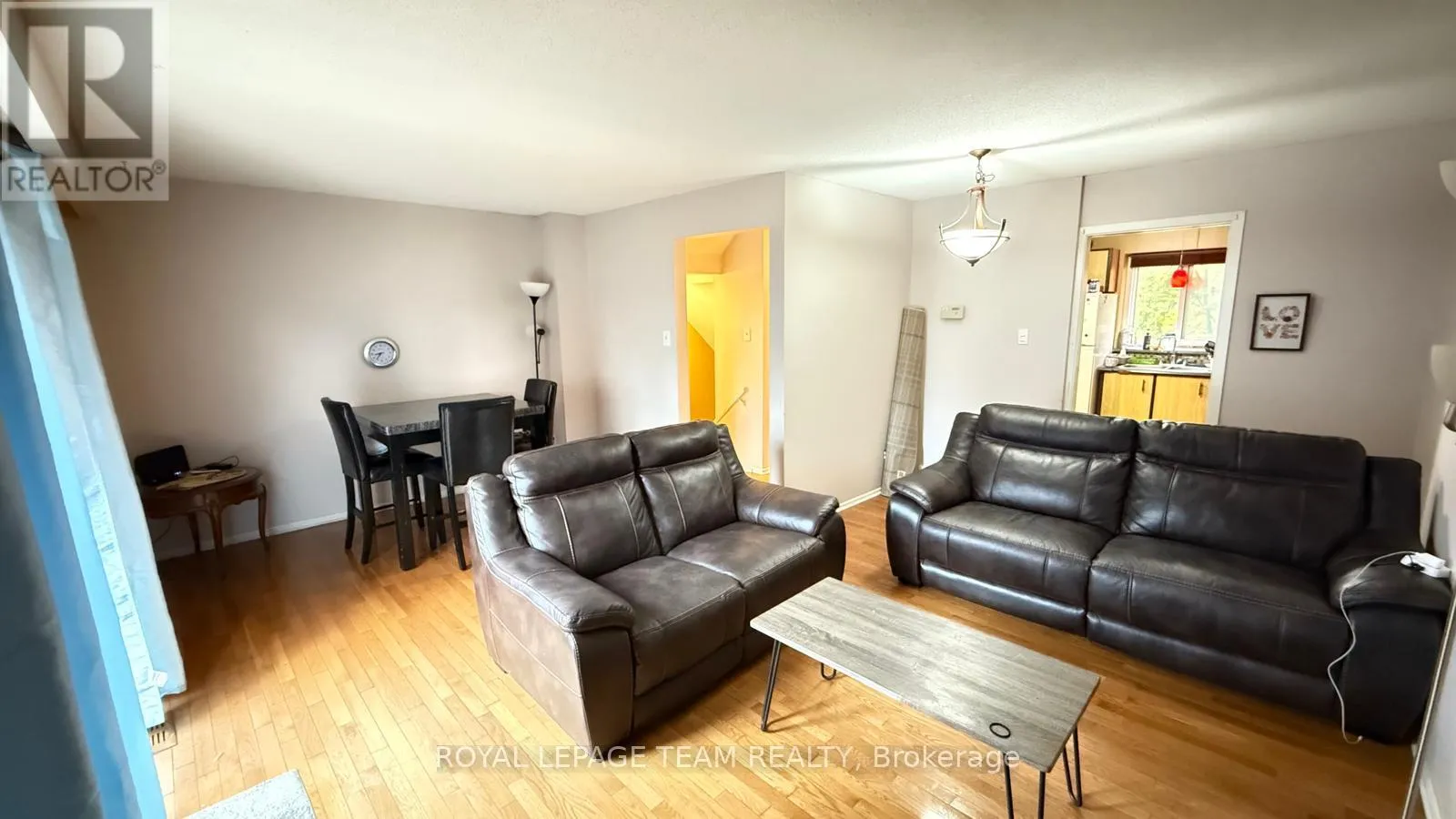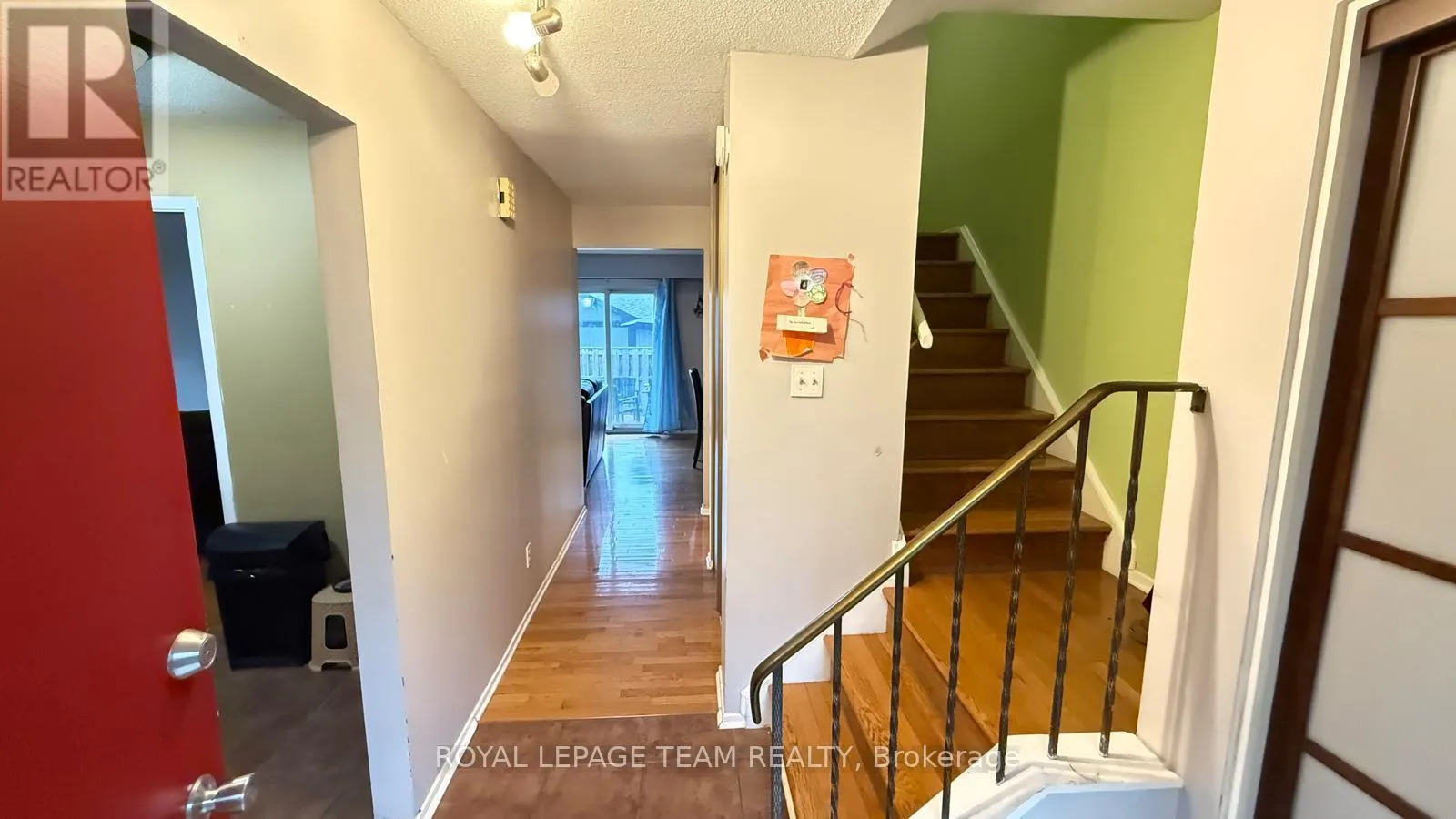 Cross Streets: Robertson Road at Moodie Drive. ** Directions: Heading west on the 417, take the Moodie Drive exit, turning left. Continue past Robertson Road, where the property will be on your right. Look for a sign that says Moodie Manor. Welcome Home!Heres your opportunity to own a perfect starter home or a smart investment property to add to your portfolio. This carpet-free home offers a warm and inviting atmosphere, featuring beautiful oak hardwood floors throughout the living and dining rooms. Enjoy easy access to the backyard through the sliding patio doors ideal for relaxing or entertaining.The kitchen provides plenty of space for a small breakfast table or a cozy coffee station. Upstairs, youll find three bright bedrooms, all with stunning oak flooring, and a spacious 4-piece bathroom. The lower level features a generous recreation room that's perfect for family movie nights or a play area, along with a convenient 2-piece bathroom and laundry space.This home includes two parking spaces Parking #34, which comes with the unit, and Parking #106, currently rented for $45 per month. Located just 20 minutes from downtown Ottawa, youll love the easy access to shopping, dining, parks, and public transit. A wonderful combination of comfort, convenience, and value dont miss this fantastic opportunity! (id:27476)