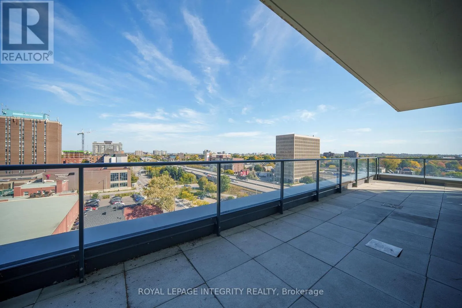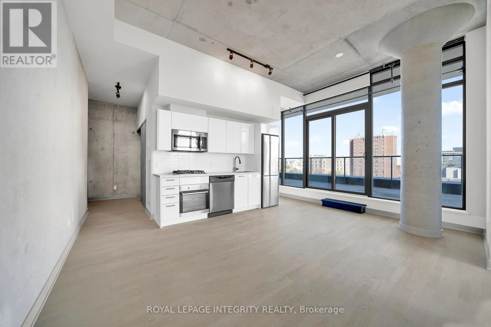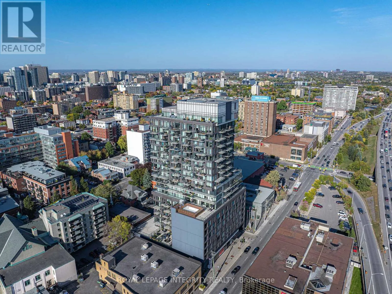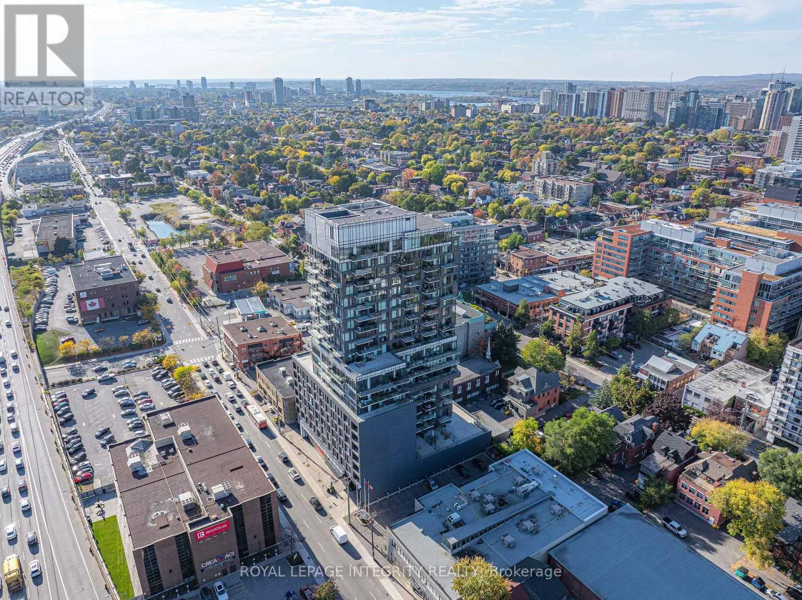 Cross Streets: Catherine St & Bank St. ** Directions: Drive south on Bank Street and turn onto Catherine Street; 203 Catherine Street is on the south side between Bank and O'Connor Streets. Welcome to 203 Catherine Street Unit 802, a place where modern design, city energy, and refined comfort come together. This stunning one-bedroom plus den suite offers 714 square feet of stylish living space, an impressive 478-square-foot east-facing balcony, and a convenient underground parking. Step inside and be inspired by loft-style elegance soaring exposed concrete ceilings, floor-to-ceiling windows, and natural engineered hardwood floors create a bright, airy space. The open-concept living and dining area flows seamlessly onto the expansive balcony, ideal for coffee at sunrise or evenings under the city lights. The modern kitchen boasts quartz counters, sleek cabinetry, stainless steel appliances, and a gas cooktop. A spacious and versatile den provides the perfect spot for a home office, reading nook, or use as 2nd bedroom. The southeast-facing bedroom is a serene retreat, filled with morning sunlight and boasting a walk-in closet to keep your wardrobe perfectly organized. The modern 4-piece bathroom combines style and function, completing this thoughtfully designed suite. Additional highlights include in-suite laundry and the peace of mind provided by controlled access and concierge service. At SoBa Condo, enjoy resort-style amenities -- a rooftop pool with panoramic views, a fitness centre, party room, and sky garden terrace -- all designed to elevate your daily life. Perfectly located between Centretown and The Glebe, and flanked by Little Italy and the Golden Triangle, this location puts you steps away from Ottawa's best cafés, restaurants, boutiques, and parks -- everything you love, right at your doorstep. Some photos are virtually staged. (id:27476)