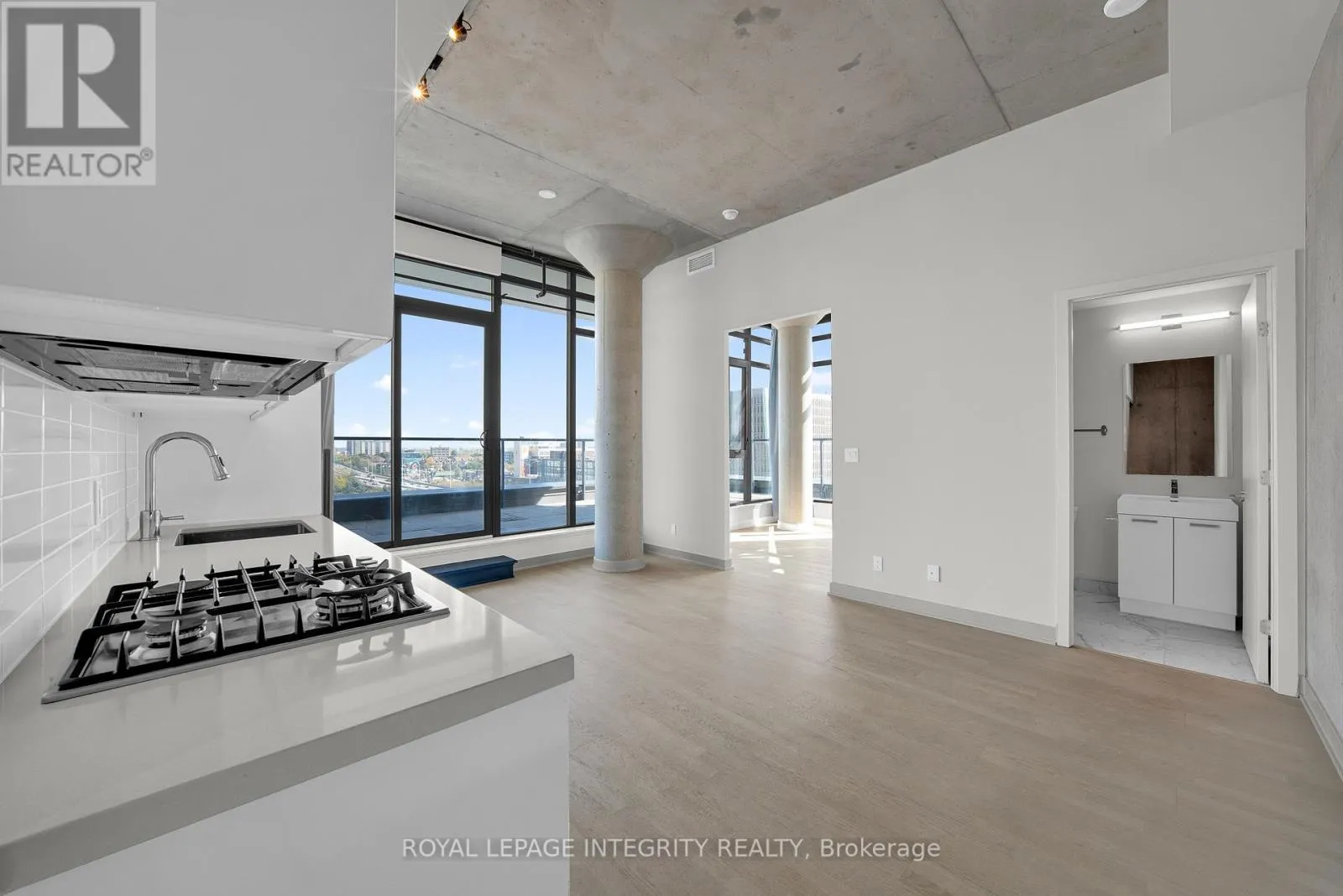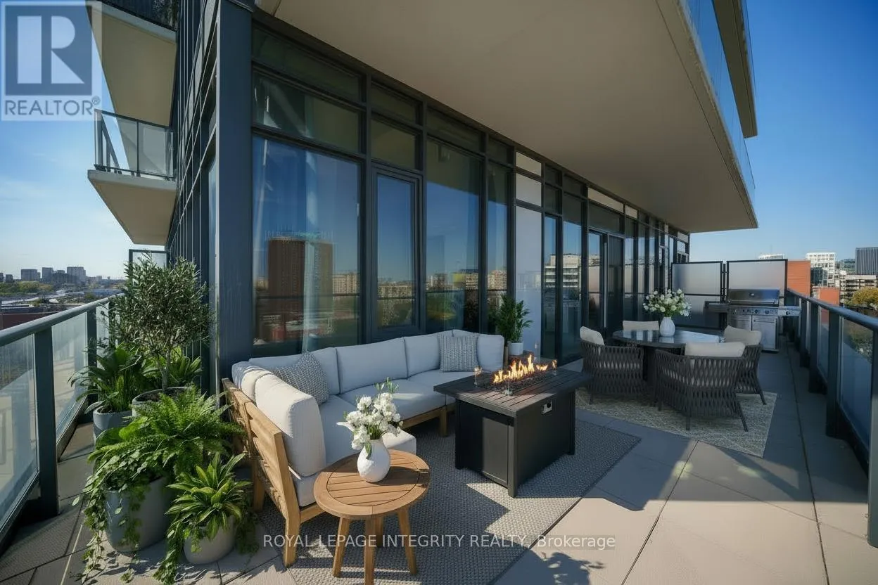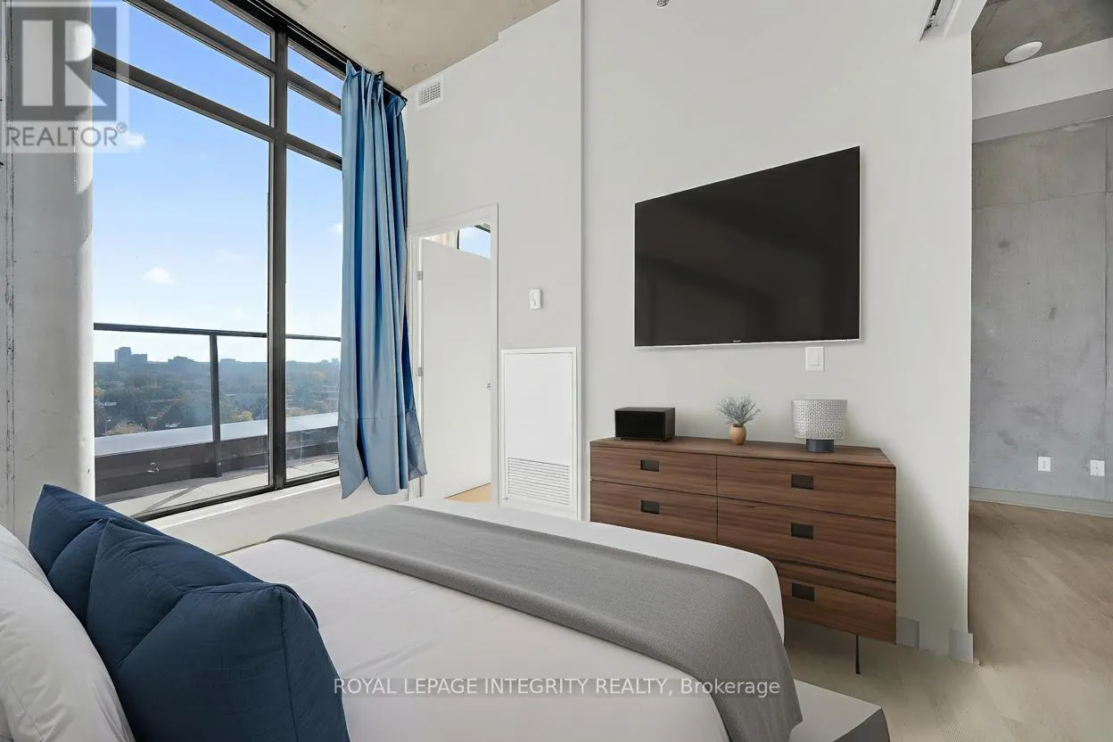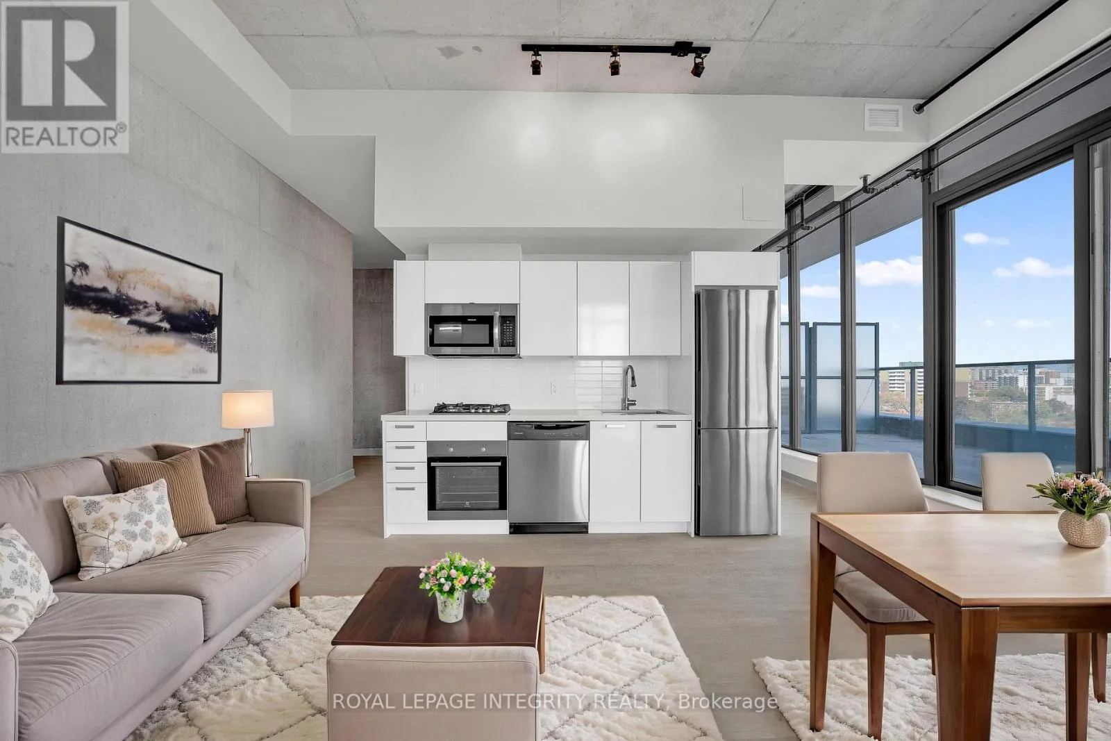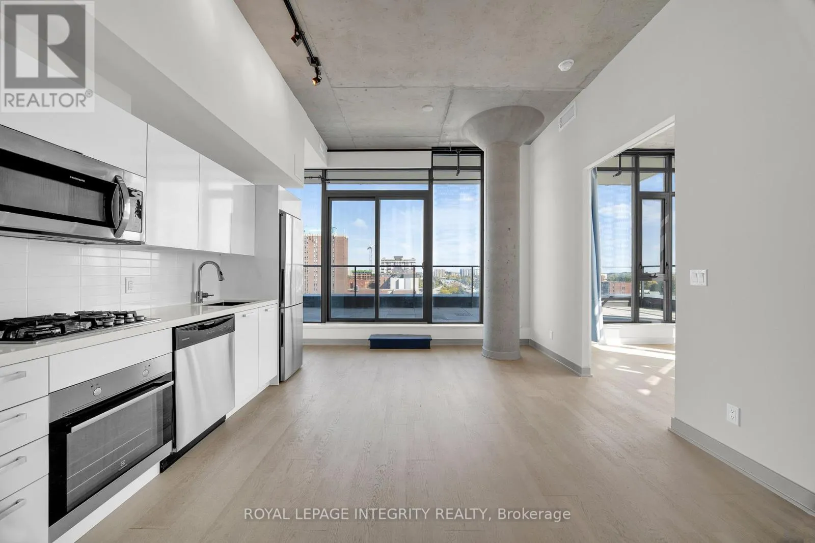 Cross Streets: Catherine St & Bank St. ** Directions: Drive south on Bank Street and turn onto Catherine Street; 203 Catherine Street is on the south side between Bank and O'Connor Streets. Welcome to 203 Catherine Street Unit 802, a place where modern design, city energy, and refined comfort come together. This stunning one-bedroom plus den suite offers 714 square feet of stylish living space, an impressive 478-square-foot east-facing balcony, and a convenient underground parking. Step inside and be inspired by loft-style elegance soaring exposed concrete ceilings, floor-to-ceiling windows, and natural engineered hardwood floors create a bright, airy space. The open-concept living and dining area flows seamlessly onto the expansive balcony, ideal for coffee at sunrise or evenings under the city lights. The modern kitchen boasts quartz counters, sleek cabinetry, stainless steel appliances, and a gas cooktop. A spacious and versatile den provides the perfect spot for a home office, reading nook, or use as 2nd bedroom. The southeast-facing bedroom is a serene retreat, filled with morning sunlight and boasting a walk-in closet to keep your wardrobe perfectly organized. The modern 4-piece bathroom combines style and function, completing this thoughtfully designed suite. Additional highlights include in-suite laundry and the peace of mind provided by controlled access and concierge service. At SoBa Condo, enjoy resort-style amenities -- a rooftop pool with panoramic views, a fitness centre, party room, and sky garden terrace -- all designed to elevate your daily life. Perfectly located between Centretown and The Glebe, and flanked by Little Italy and the Golden Triangle, this location puts you steps away from Ottawa's best cafés, restaurants, boutiques, and parks -- everything you love, right at your doorstep. Some photos are virtually staged. (id:27476)