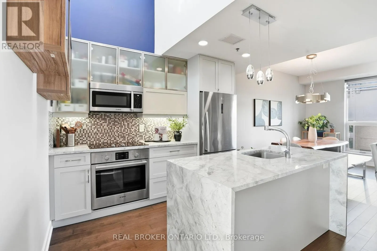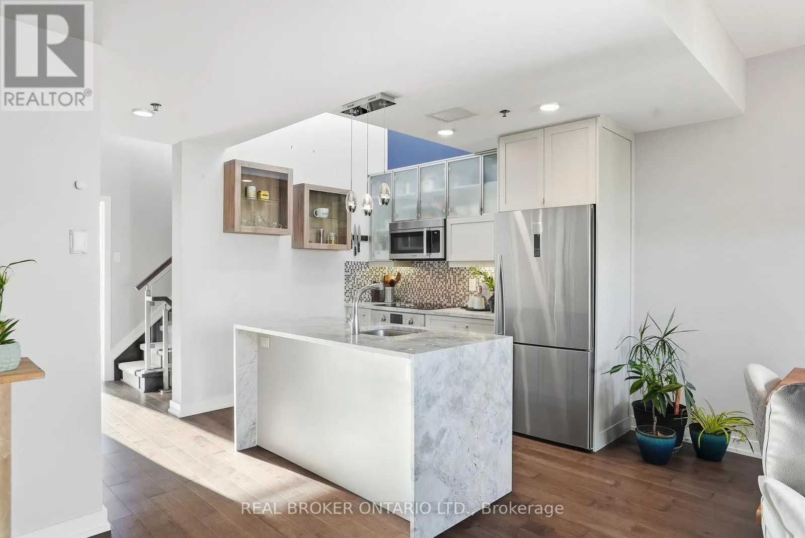Cross Streets: Lett St & Fleet St. ** Directions: From Wellington St, turn onto Lett St, 300 Lett on left side. Street parking in front of the building. Experience modern design and ultimate urban living in this stunning 2-storey, 2-bed/2-bath condo plus PRIVATE ROOFTOP TERRACE at Fusion LeBreton. Perfectly located just on the edge of downtown Ottawa, surrounded by greenspace, steps to top-rated restaurants, and less than a 5-minute walk to LRT! Infused with contemporary style and high-end finishes, this spacious condo offers ideal privacy with bedrooms on separate levels and a bright, open-concept main living area overlooking the preferred side of the building with a tranquil grassy courtyard below. The modern kitchen features a granite waterfall island, chic glass mosaic backsplash, stainless steel appliances, and vaulted ceiling that draws natural light into the heart of the unit. Primary bedroom with dual closets and cheater ensuite also located on main. The showstopper is your private rooftop terrace, offering unobstructed views of downtown Ottawa and the perfect setting to unwind or entertain. Residents enjoy access to resort-style amenities including a heated outdoor pool, fitness centre, party room, and shared rooftop terrace with BBQs. Step outside and connect directly to the Ottawa River Pathway, grab a bite in Little Italy, catch live music at Ottawa's Bluesfest, or ride the LRT to the Rideau Centre, this location delivers unmatched access to the best of downtown living. New LG washer & dryer. Includes underground parking and storage locker. Discover an exceptional urban lifestyle at Fusion LeBreton! (id:27476)