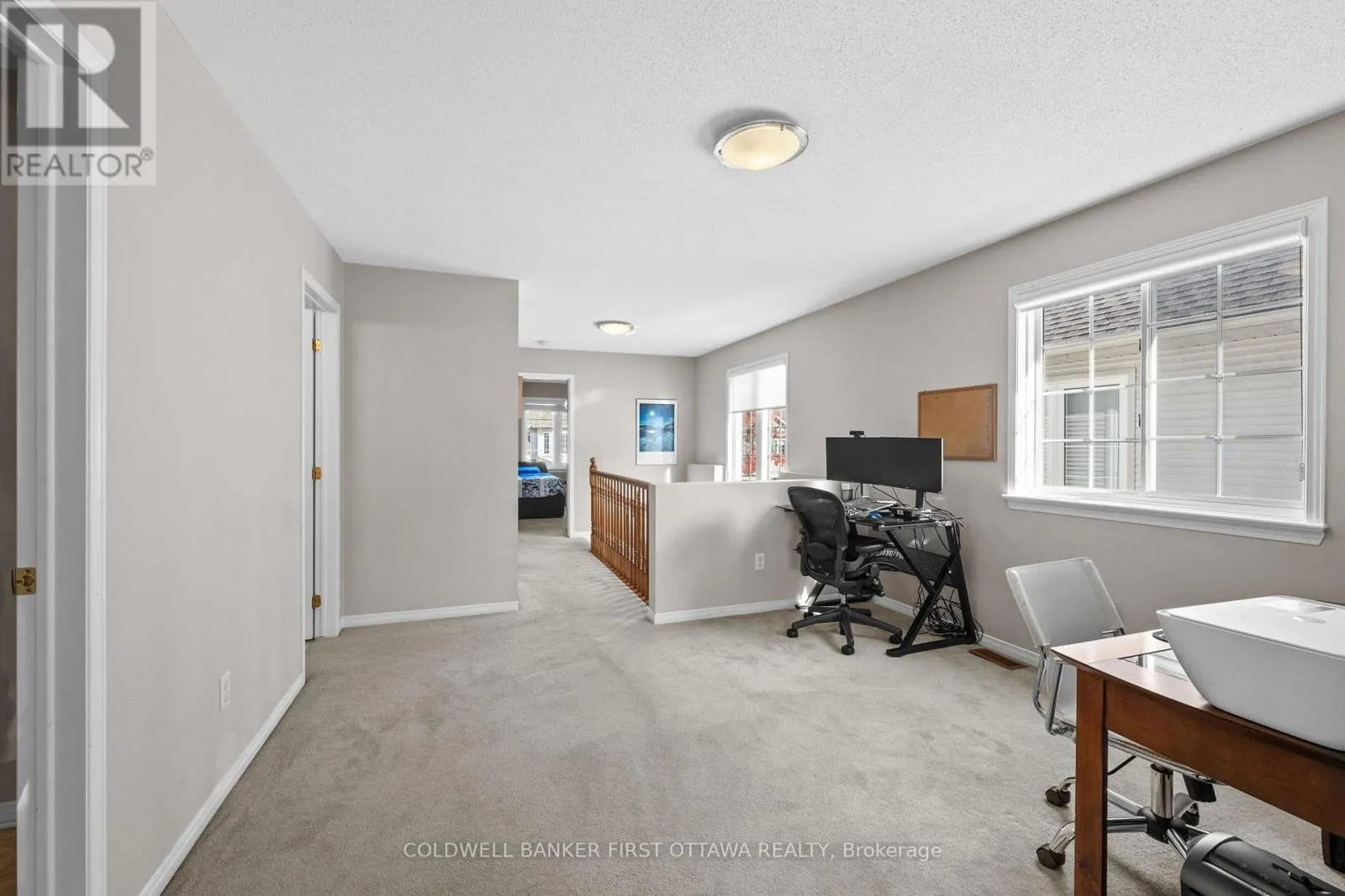 Cross Streets: Goldgate Pvt & Riverstone Dr. ** Directions: Take Longfields Dr South after Jockvale. Turn left onto Riverstone Dr. Turn left onto Goldgate Pvt and another left onto Fieldberry Pvt. #20 will be on your left hand side. Welcome to this beautifully maintained home in sought-after Stonebridge, blending comfort, functionality & upgrades. Feat. 3 beds, 2.5 baths & fully finished LL, this home has been cared for by longtime owners. Enter through the ceramic tiled foyer w/ dbl door closet & modern light fixture, inside access to the garage & a convenient 2pc bath. Step up to the main lvl where hardwood flr, pot lights & bright windows offering coziness, ideal for family living. The living rm flows into the dining & great rm, separated by a stylish portrait opening, maintaining an open-concept feel. The kitchen boasts SS Frigidaire appliances, tiled backsplash, deep double sink w/ built-in soap dispenser, ample cabinetry, breakfast bar seating & easy access to the dining area highlighted by a chandelier. The great rm, feat. a gas FP, large windows & walkout to the private backyard, perfect for entertaining. The 2nd lvl offers a hardwood banister leading to 3 spacious beds, incl. a bright primary suite w/ walk-in closet & 4pc ensuite feat. a stand-up shower, deep soaker tub & private toilet area. Two secondary beds w/ dbl closets & North-facing windows offer plenty of light. The main 4pc bath, laundry rm w/ large closet & a versatile loft space, ideal for an office or reading nook, complete this lvl. The finished LL (2015) feat. luxury vinyl plank flrs, pot lights & a generous rec rm w/ wet bar area. A fitness rm, L-shaped storage space w/ custom shelving add convenience. Enjoy low-maintenance outdoor living w/ an interlock patio, landscaped yard & fresh sod, mulch & planters in front yard. Other highlights incl. a smart thermostat, smart switches, central vac, new floor vents, & freshly painted rooms (Bedrooms 2 & 3, Entire main lvl) & carpet cleaning (Sept. 2025). Close to schools, parks, trails, shopping & just mins to the amenities of Barrhaven & Manotick Village. Experience comfort & convenience in this turnkey home & love your new Stonebridge lifestyle! (id:27476)