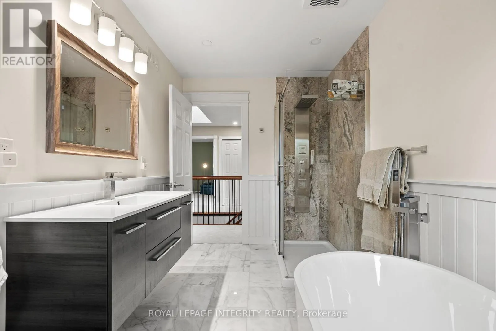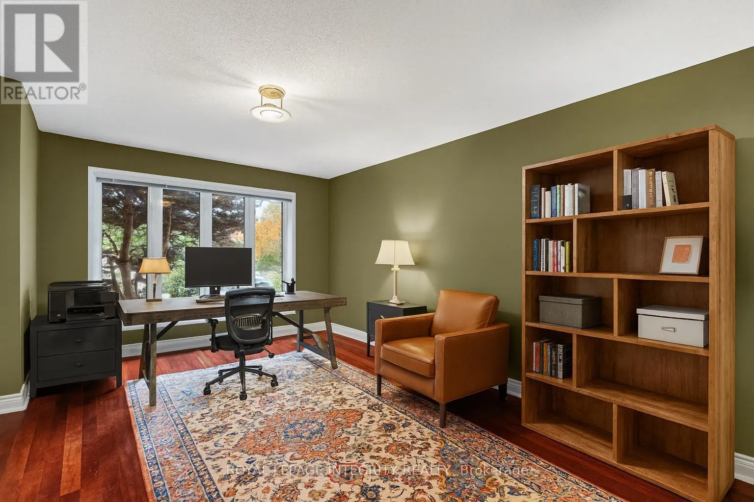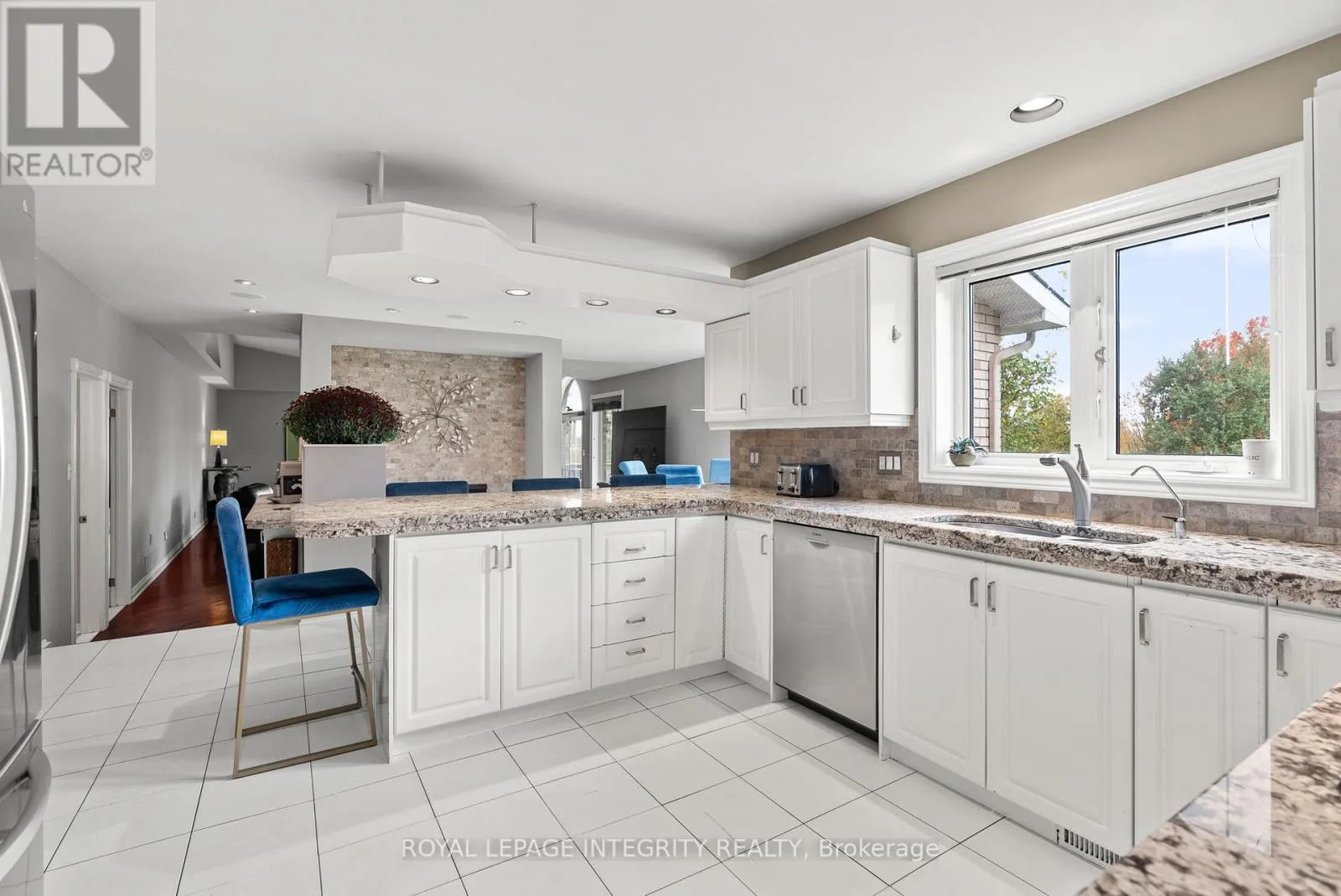 Cross Streets: Marchbrook Circle. ** Directions: From Old Carp Road, Turn onto Marchbrook Circle. Offering nearly 7,000 sq. ft. of living space, this gated estate delivers a scale rarely seen in Ottawa under $2M. Set on two manicured acres in one of the most unique locations in the entire city, it offers a combination you simply won't find anywhere else: true rural privacy and acreage living, yet a short commute to Kanata's tech hub, major shopping, restaurants, parks, and every modern convenience. It feels private and secluded, yet you are literally in the centre of it all. With an upcoming entertainment and commercial development, the convenience and long-term appeal of this location will only continue to grow. Inside, a soaring double-height foyer opens to 4,453 sq. ft. above grade. A dramatic 38'5" x 20'6" family room features 14' vaulted ceilings and a two-sided stone fireplace, connecting seamlessly to a 24' x 22' kitchen finished in granite and silver travertine with walk-in pantry, wet bar, breakfast nook, and expansive windows overlooking the grounds. Formal living and dining rooms, a French-door office, and a 36' mudroom/laundry room add flexibility for both entertaining and everyday life.The lower level includes a 1,250 sq. ft. finished in-law suite with slate floors, marble bath, kitchenette, French doors, and private garage entry-ideal for multigenerational living. An additional 1,200 sq. ft. of unfinished space offers potential for a gym, wine cellar, spa, or storage. Finishes throughout include crema marble, travertine, quartz, granite, black slate, and nearly 2,000 sq. ft. of Brazilian Cherry hardwood.Upstairs are four bedrooms, including a 24' x 15' primary suite with renovated marble ensuite. Outside, a new 24' x 20' deck overlooks two private acres with no rear neighbours. From its incomparable setting-two private acres in the heart of Kanata-to its scale, craftsmanship, and walkable access to one of Ottawa's largest business hubs, this estate is truly without equal. (id:27476)
