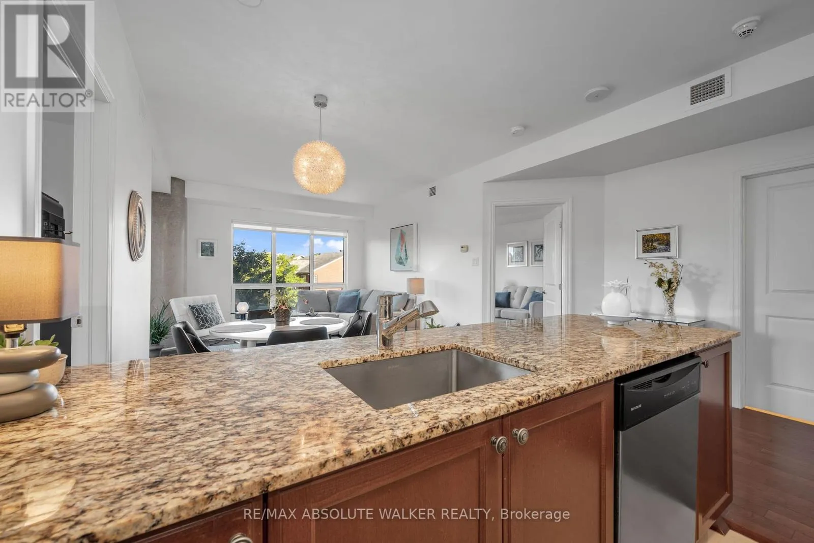 Cross Streets: Beechwood Avenue to Landry. ** Directions: Vanier parkway to Beechwood Avenue to Landry. Step into this beautifully upgraded 2-bedroom, 2-bathroom condo at La Tiffani, offering style, comfort, and everyday convenience. Once a model suite, this condo suite showcases elegant Maple hardwood flooring, an open-concept layout, and a bright, contemporary design. Designed for both comfort and style, the generous living and dining areas open to a private balcony, shared with the primary bedroom, creating a wonderful indoor-outdoor flow. The sleek kitchen, appointed with granite countertops, stainless steel appliances, and convenient bar seating, overlooks the warm and welcoming living space. The primary bedroom provides a tranquil retreat with a 4-piece ensuite featuring a jet tub, a walk-in closet while a second bedroom is equally spacious and bright and is complemented by a stylish second bathroom with an upgraded glass shower. Enjoy added convenience with in-suite laundry and an extra deep underground parking space large enough to accommodate both a car and a motorcycle and ideally positioned away from other vehicles for added peace of mind. Residents of La Tiffani enjoy a range of amenities, including an indoor pool, fitness centre, and party room. Conveniently located within walking distance of grocery stores, pharmacies, coffee shops, banks, eateries, parks, trails, and just minutes from Downtown Ottawa. This condo offers a vibrant urban lifestyle. Option to purchase fully furnished is available (id:27476)