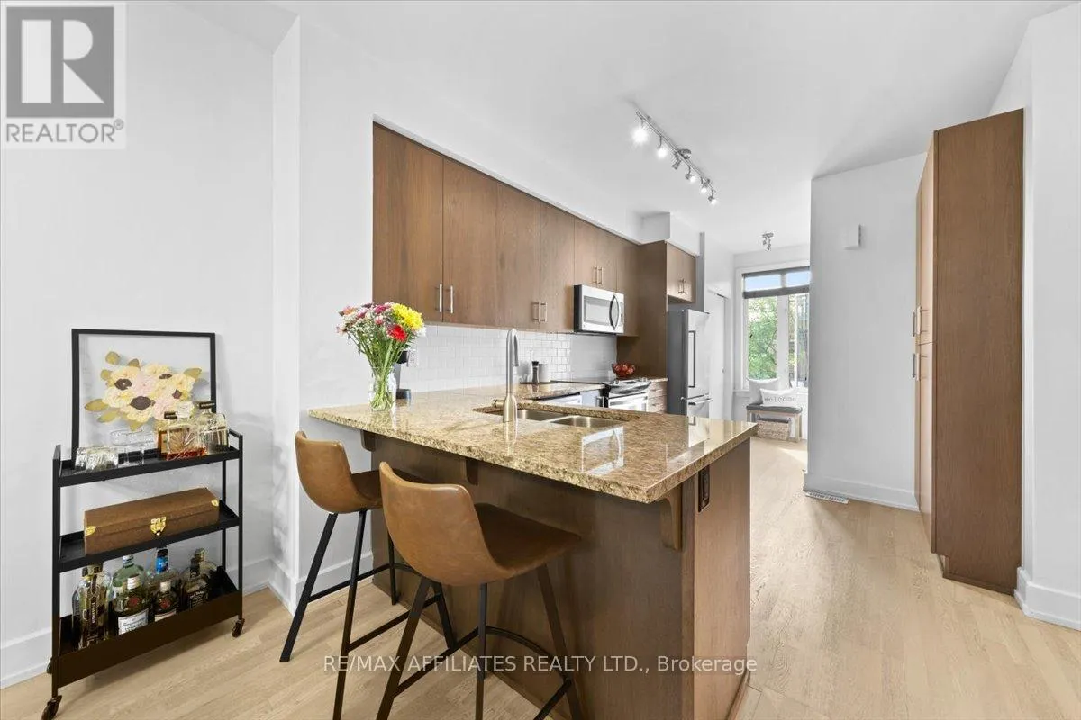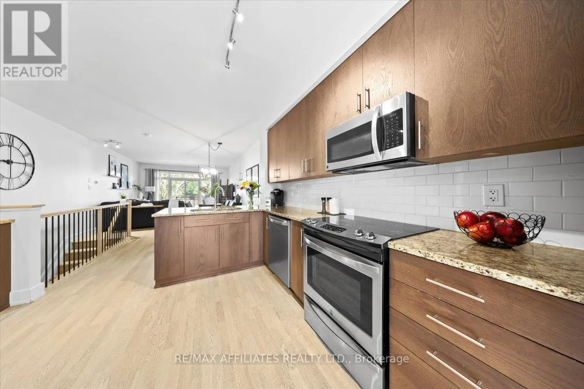 Cross Streets: Chapel Hill. ** Directions: Innes to Orleans Blvd to Meadowglen to Bergeron. Exclusive 2 Owned parking! 2 bedroom, 2.5 bathroom walk-up style condo! Open concept main floor with 10ft ceilings, elevating the home experience. Large east-to-west-facing windows allow for ample natural light. The powder room is tucked away around the main entrance. Kitchen w/ granite counter tops, a white horizontal subway tile backsplash, stainless steel appliances, ample floor-to-ceiling cabinetry, complemented by a breakfast bar and Pantry. Open great room with ample space for hosting and entertaining, as well as dining and living areas. Patio doors onto a composite rear deck with a BBQ on a Natural-Gas Hook-Up. Both spacious bedrooms feature large closets and are designed for comfortable living. In-Unit laundry. Primary bedroom w/ a 3-piece ensuite w/ oversized vanity and glass shower. 4-piece main bathroom nearing secondary bedroom. Sought-after neighbourhood of Chapel Hill North near walking trails, dog park, transit, excellent schools, groceries and more. Built by award-winning Domicile. (id:27476)