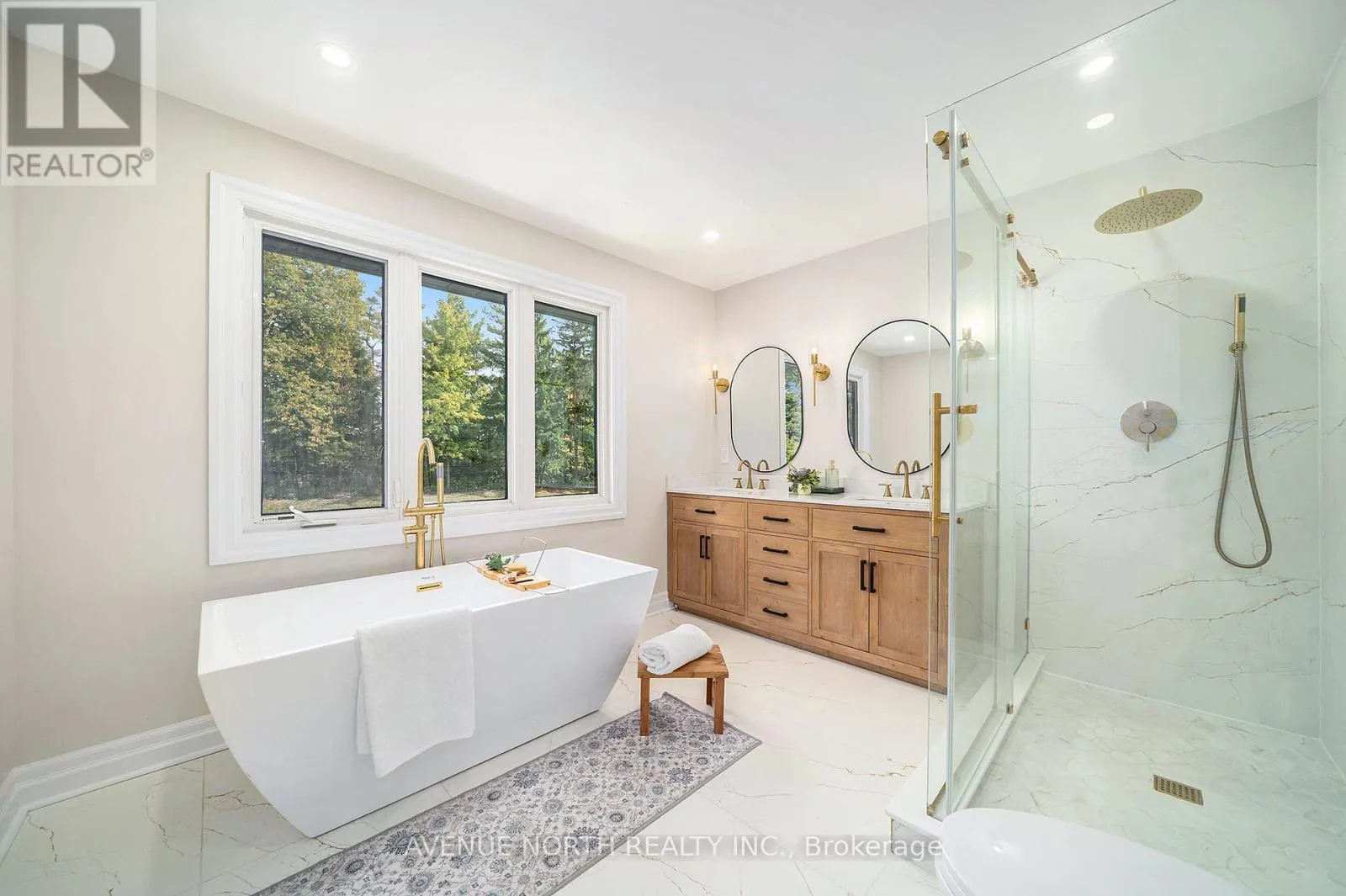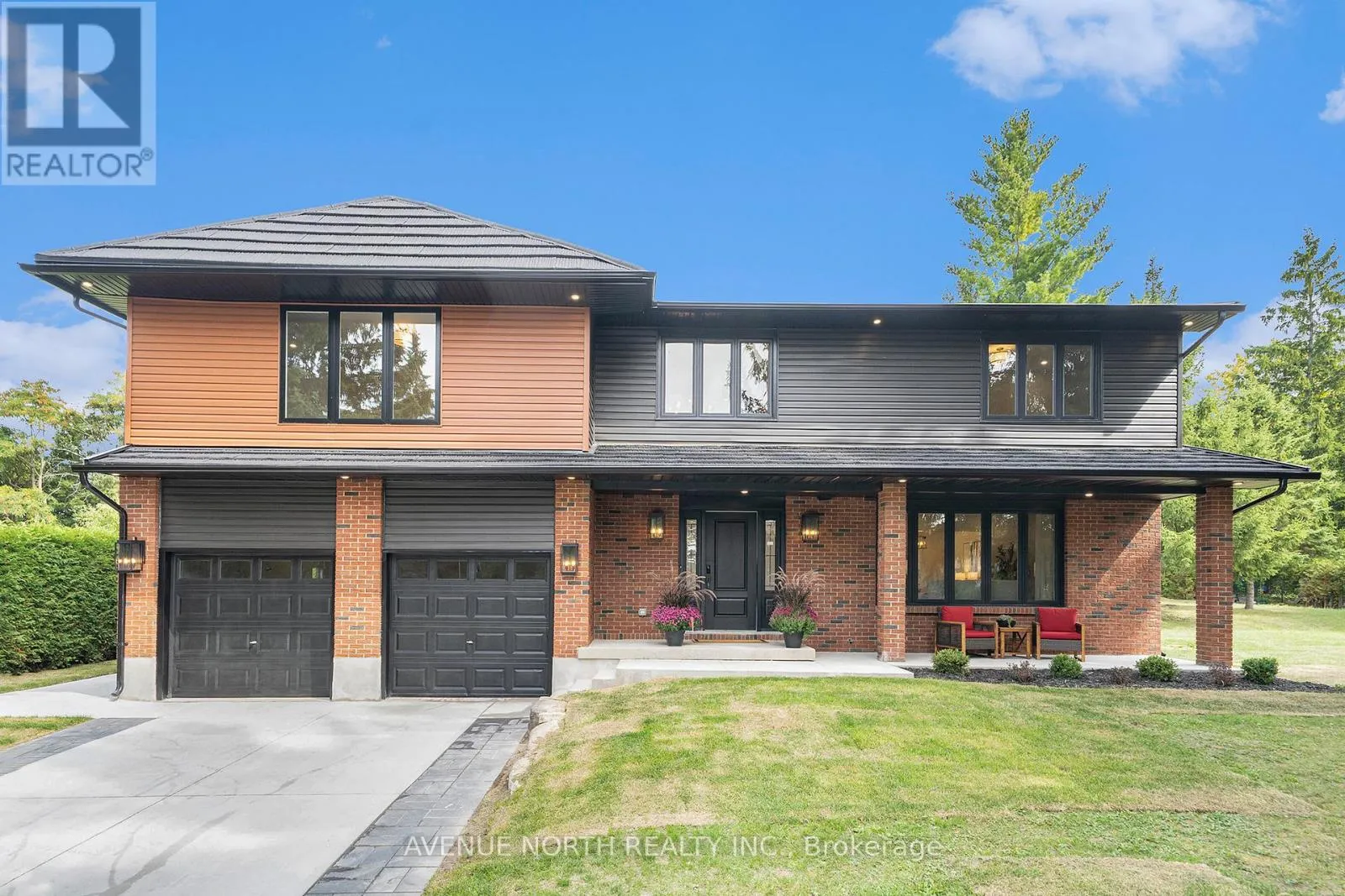 Cross Streets: Woodroffe. ** Directions: Woodroffe to Bren Maur Road to Newland Drive. Property will be on the right. Luxury Living in Prestigious Hearts Desire - Fully Remodeled Executive Home! Prepare to fall in love with this breathtaking, fully transformed executive home, set on an oversized 150x200 ft lot at the end of a quiet cul-de-sac in one of the city's most desirable neighbourhoods. From the moment you arrive, the curb appeal is undeniable - impressive exterior framed by mature trees, inviting front porch, oversized double garage, and 6-car driveway that creates an unforgettable first impression. Meticulously redesigned with high-end finishes and sophisticated upgrades throughout, this home offers a rare blend of luxury and elegant design. The private backyard offers a park-like feel, complete with a large patio surrounded by natural greenery, ideal for outdoor entertaining or a peaceful retreat. Inside, the open layout and natural light create a bright and inviting feel throughout the home. Thoughtful design elements include a striking open staircase, engineered hardwood flooring, carpet-free living, a sleek modern fireplace, designer lighting, pot lights, and more. At the heart of the home is a custom chef's kitchen featuring a large island, modern cabinetry, and high-end appliances, perfect for everyday living and effortless hosting. The main floor flows seamlessly through formal living, dining, and family areas. Upstairs, two luxurious primary suites feature walk-in closets and spa-inspired en-suites. Two additional spacious bedrooms with walk-in closets, a beautiful main bathroom, and convenient laundry complete the second floor. The finished basement offers flexible space for a home office, gym, theatre, or games room. The home has been extensively upgraded with all-new wiring and 200-amp service with EV rough-in, a new metal roof, new insulation (including attic), new windows, doors, and more. Ideally located near top schools, scenic trails, parks, and amenities, this one-of-a-kind home offers luxury, lifestyle, and an exceptional location. (id:27476)