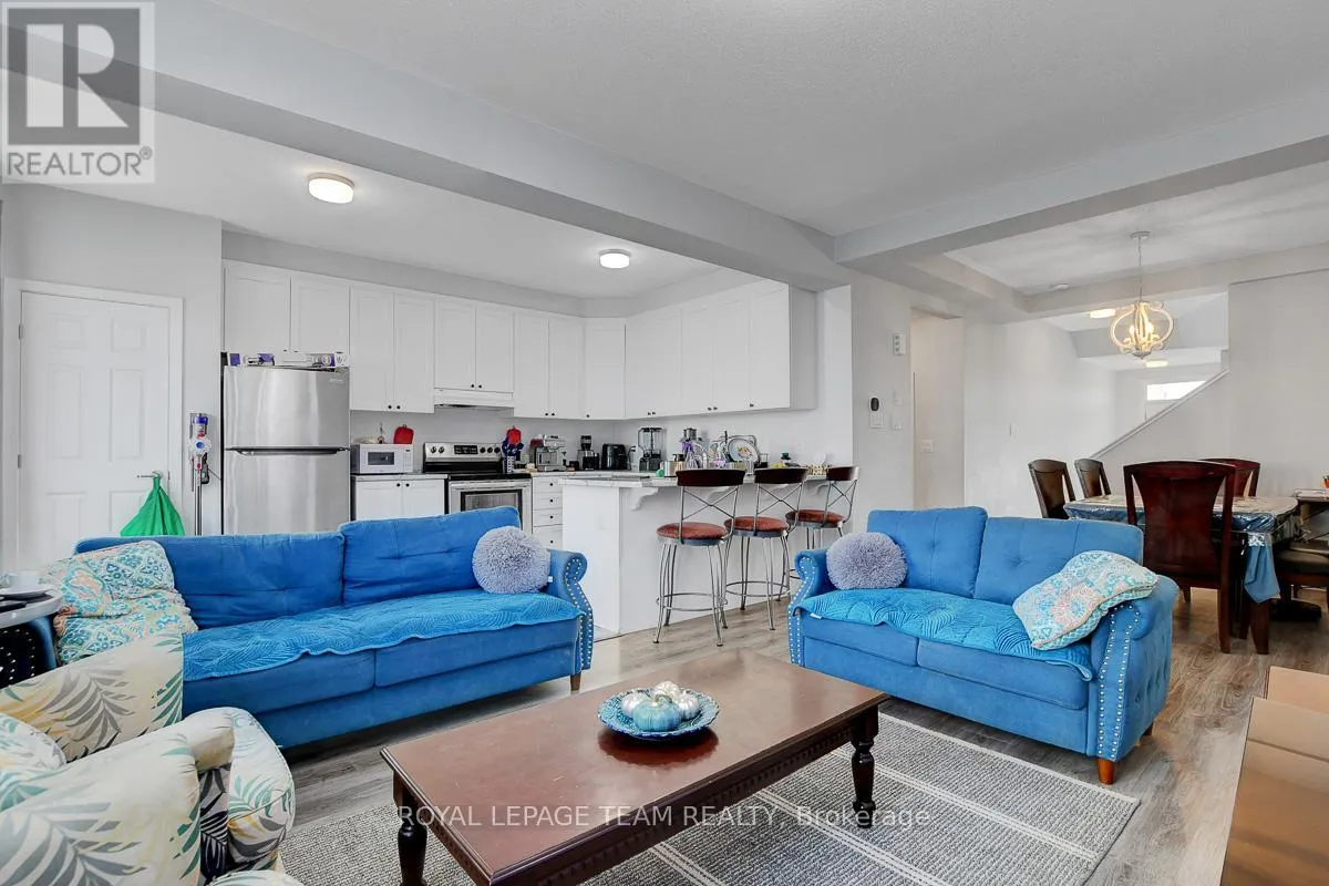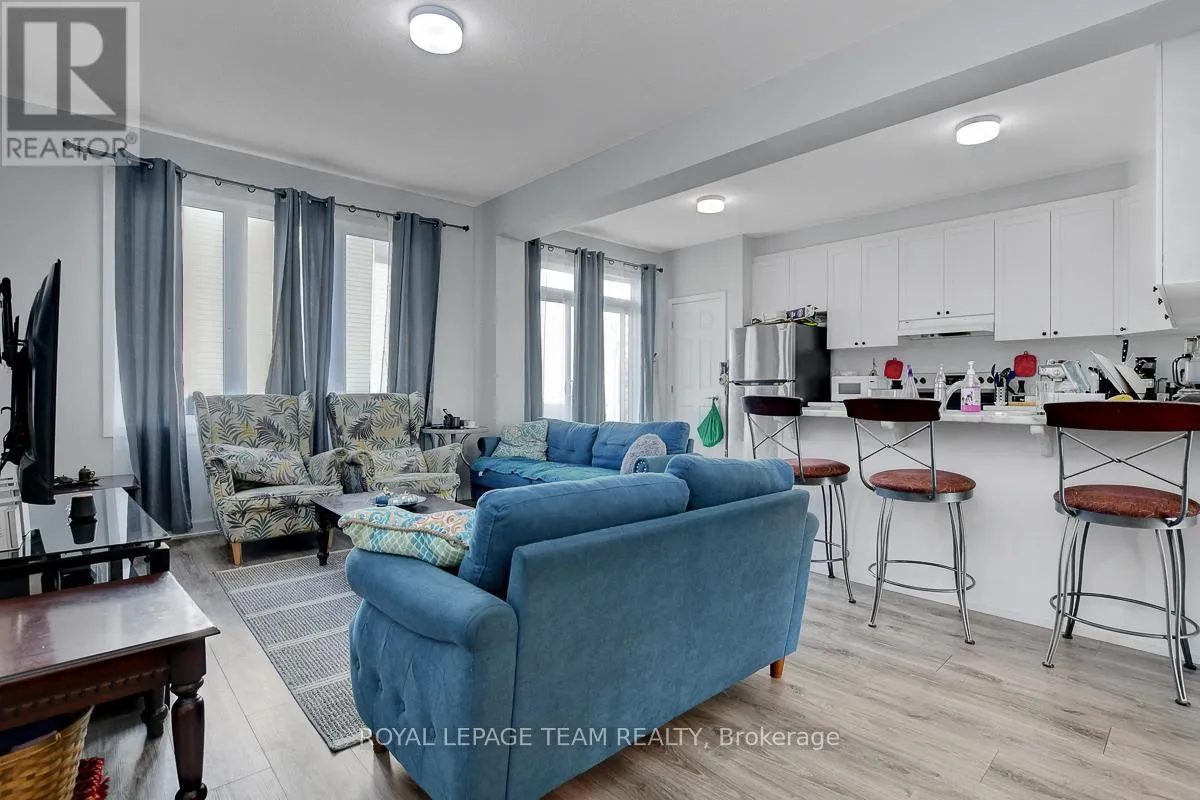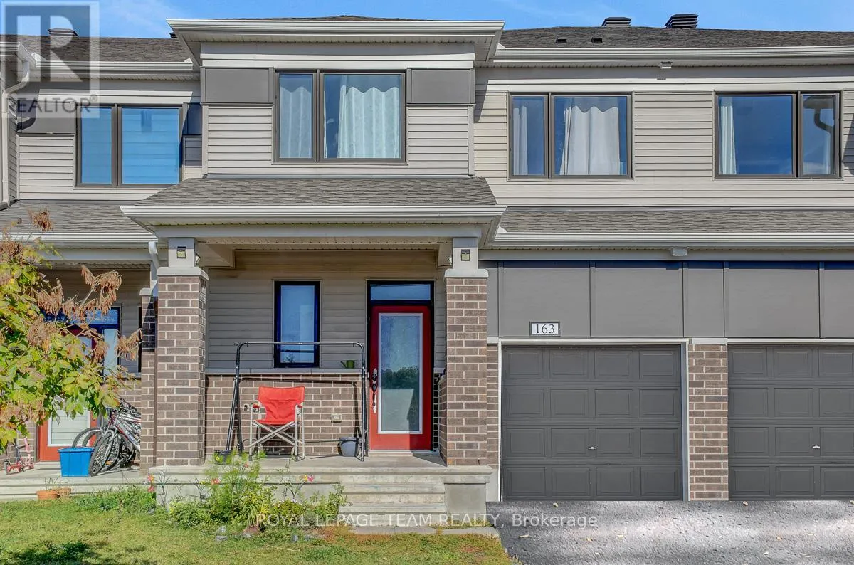 Cross Streets: Perth Street (left) to Meynell Road (Right) on Yearling Circle. ** Directions: Eagleson Road (right) to PerthStreet (left) to Meynell Road (Right)on Yearling Circle. Home is located at the end of the street, on the left, front facing the peaceful open field. Welcome to 163 Yearling Circle, a charming freehold townhome tucked into the heart of Richmond Meadows one of Ottawas most sought after family-friendly communities! This rarely offered Lilic model features 3 bedrooms, 2 full bathrooms, a convenient main floor powder room, and a unique location facing an open field with NO front neighbours a true bonus for those seeking peace and extra privacy! Step up to the inviting front porch and into a bright tiled foyer w/walk-in closet, basement access, and a smart layout that keeps life practical and organized. The main level offers a neutral, move-in ready palette, durable laminate flooring, a 2-piece bath, and a sun-filled open concept living/dining room. The adjacent kitchen features stainless steel appliances, a generous breakfast bar, hood fan, and patio doors leading to the backyard perfect for morning coffee or evening family BBQs. You'll find a convenient separate mudroom area w/inside access to the 1 car garage, a closet, and convenient 2-piece bath ideal for busy families or guests. Upstairs, plush carpet leads to a spacious primary suite complete with walk-in closet and private 3pcs ensuite featuring a tub/shower combo and oversized vanity. Two additional well-sized bedrooms, a full 3 pcs family bath, and a laundry area on the second floor make daily routines easy and efficient. The builder-finished basement adds even more living space with two windows for natural light, storage, and a 3-piece bath rough-in already in place. Currently tenant-occupied, this home also offers a fantastic opportunity for investors or those planning ahead. Don't miss this fantastic home in a quiet location with no front neighbours. (id:27476)