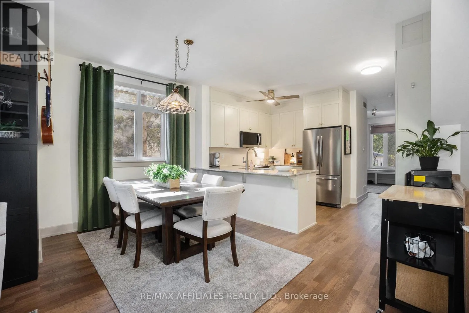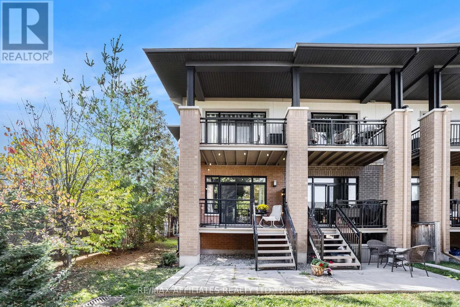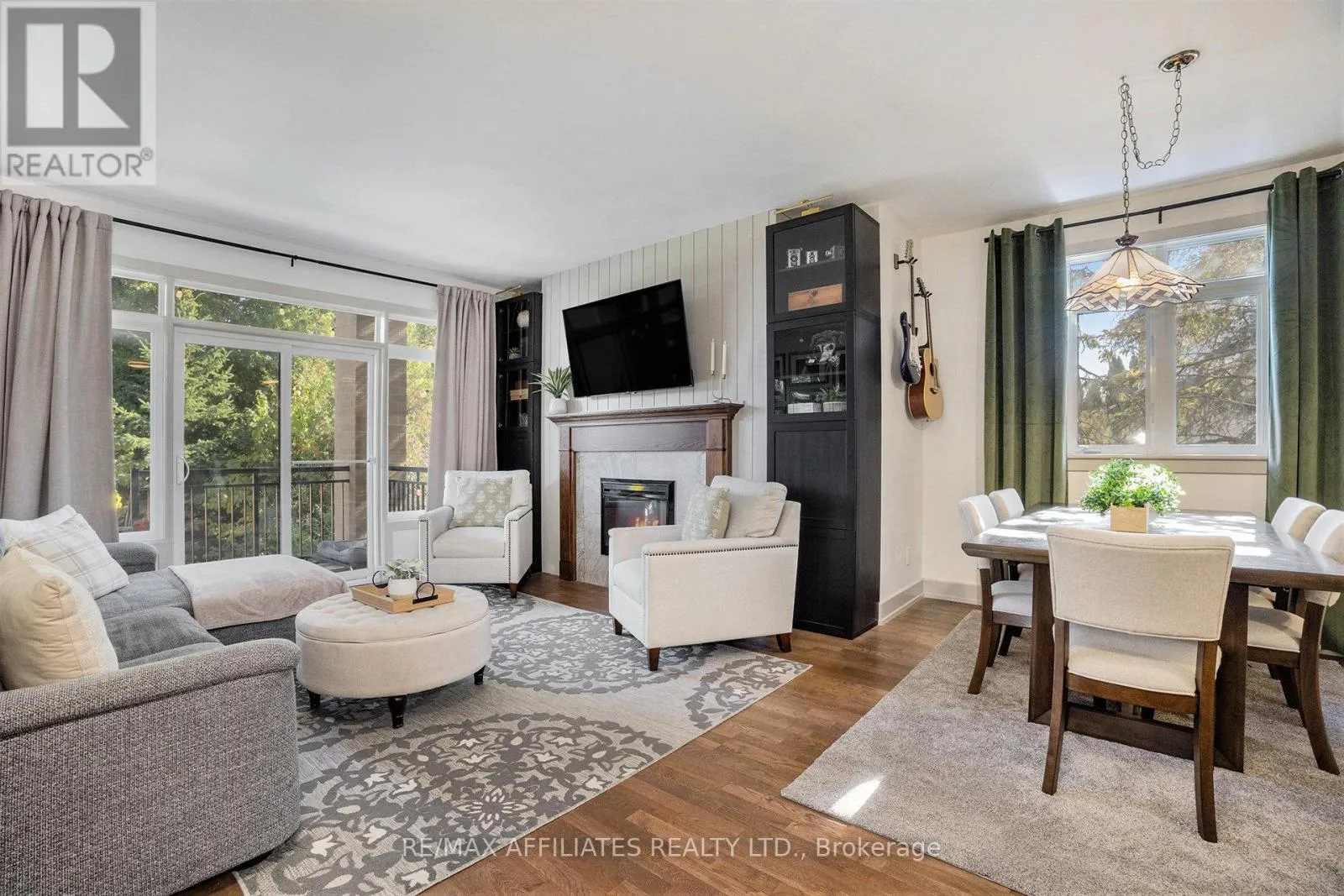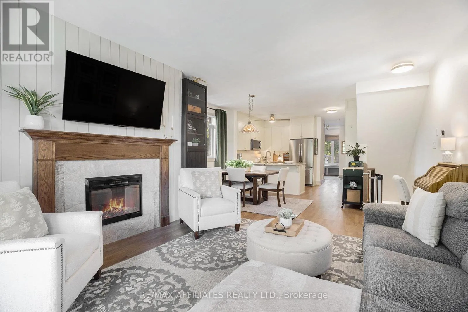 Cross Streets: Meadowglen Dr & Bergeron Private. ** Directions: East on Innes, left at Orleans Blvd, left at Meadowglen Dr, left at Bergeron Pvt. Gorgeous 3 bedroom Domicile lower end unit terrace home with modern touches in desirable Chapel Hill! Welcoming foyer with plenty of custom storage space. Luxurious, oversized open concept living/dining/kitchen area with hardwood floors. Cozy electric fireplace feature wall. A dream space for entertaining guests or curling up with a good book. You'll love the ample cabinet space in the kitchen, quartz countertops and stainless steel appliances. Lower level features primary bedroom with 4 piece ensuite, built in TV and custom walk in closet with wall to wall Ikea cupboards! 2 secondary bedrooms, family bath and laundry complete this level that includes updated luxury vinyl floors. Enjoy time outside on your balcony and interlock patio below. There is 1 parking space included with the unit as well as a storage locker. This unit is a must see!! (id:27476)