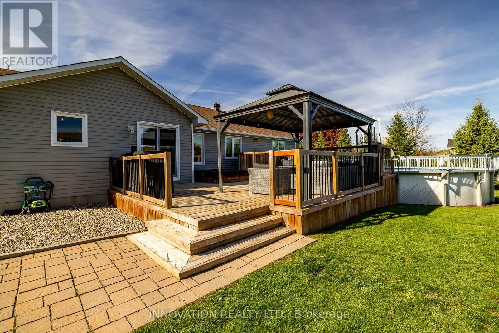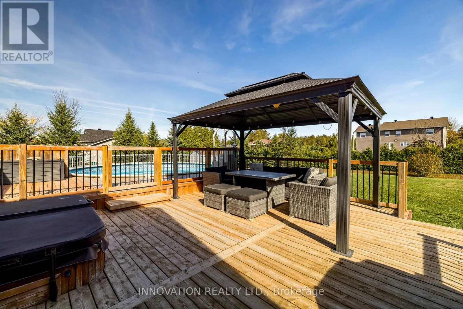 Cross Streets: Lawrence St. ** Directions: Bank St to Lawrence to Calbrent. Welcome to this charming bungalow in a wonderful, friendly neighborhood a perfect blend of comfort, warmth, and style. From the moment you arrive, you'll appreciate the large driveway, insulated and heated double garage, and inviting covered front porch that set the tone for this welcoming home. Step inside to a thoughtfully designed main floor that offers both functionality and charm. The primary bedroom features its own ensuite bathroom and walk-in closet, creating a peaceful retreat. A den provides the ideal space for a home office, reading nook, or hobby area. The country-style kitchen is bright and inviting, opening to a spacious deck, perfect for entertaining or simply relaxing outdoors. The backyard oasis is a true showstopper, complete with a heated above-ground pool, hot tub, and expansive yard that's both private and picturesque. Its the ultimate setting for summer gatherings and year-round enjoyment. Downstairs, the fully finished lower level offers a cozy family room with a gas fireplace, a fourth bedroom with its own ensuite, and plenty of space for guests or a growing family. With a long list of thoughtful updates, this home is move-in ready and waiting for its next chapter. Come discover the comfort, community, and charm that make this bungalow so special. Your perfect place to call home. Windows 2021, Furnace 2022, Water treatment 2023, Hot water Tank 2023, Garage natural gas heater 2020, New well pump 2019, Deck 2021, Pool and heater 2019, Roof 2015. Invisible fence could stay if required. (id:27476)