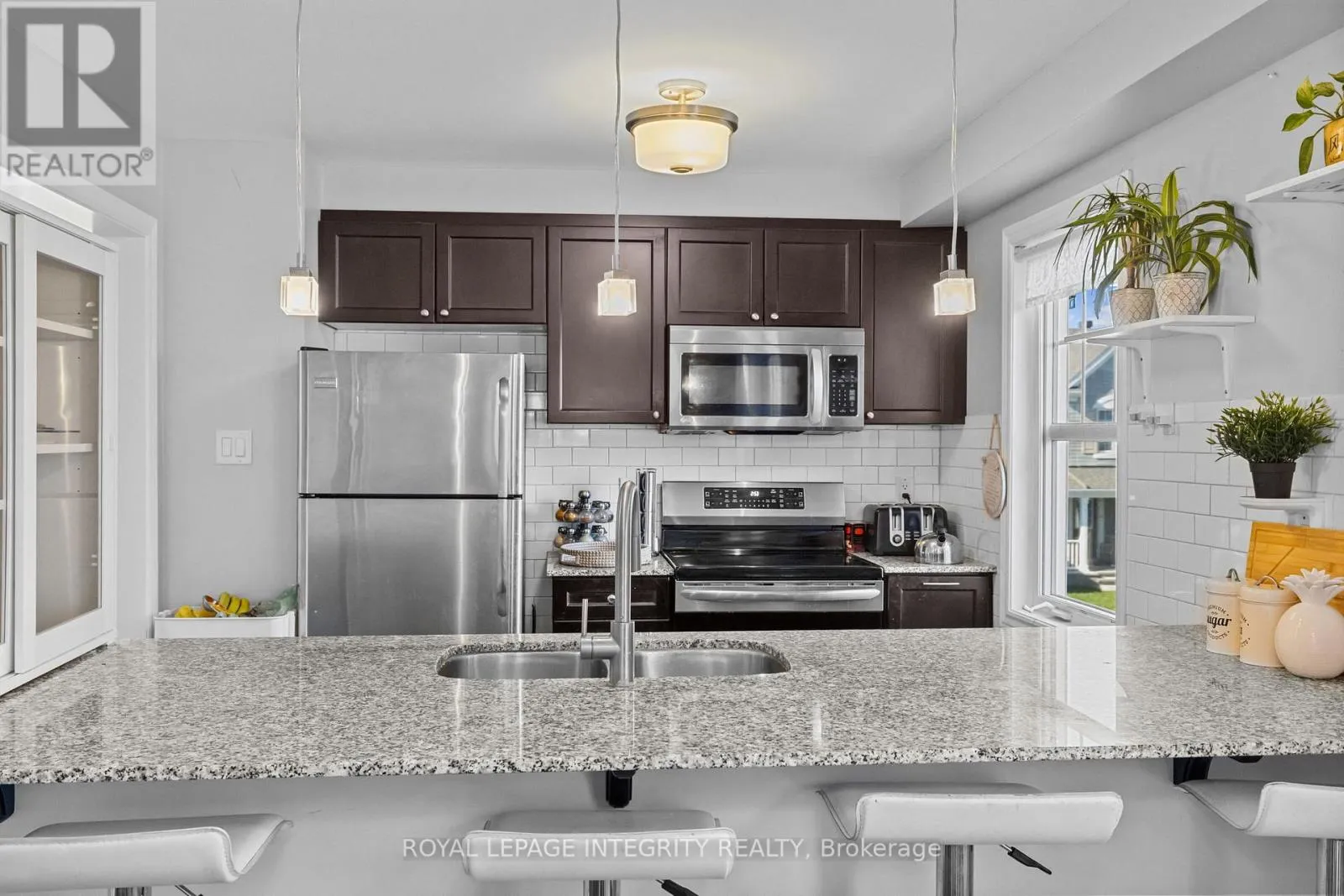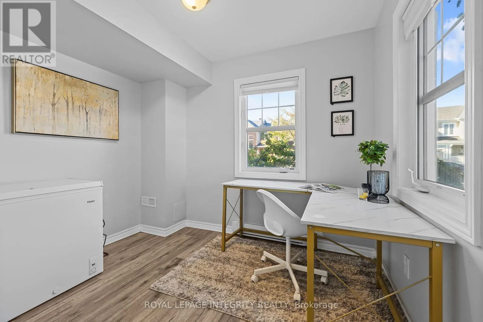 Huntmar to Maple Grove, right on Grenadine, left on Bensinger Way Welcome to this bright and inviting 2015 built FREEHOLD CORNER UNIT move-in ready 3 BED+DEN/1.5 BATH townhouse nestled in the vibrant Fairwinds neighborhood in Stittsville! With its modern upgrades throughout, this home is ideal for first-time buyers ready to embark on the journey of homeownership with comfort and style. The main level includes entry off an attached garage with extra space to allow for extra storage and a versatile den, ideal for a home office or study. Enjoy the open-concept layout featuring hardwood floors on the second levels and luxury vinyl flooring throughout the rest of the house. Upstairs, the open-concept second level offers a well-planned layout with a modern kitchen, living room, and dining area - all connected seamlessly for everyday living and entertaining. The sleek kitchen boasts granite countertops, generous cabinet space and stainless steel appliances. Off the dining area you will find a spacious balcony for the summer season. Upper level features 3 good sized bedrooms with a full bathroom. Conveniently located near shopping, dining, and public transit and 417 HWY, this gem offers the perfect blend of modern living and everyday convenience. This low-maintenance townhouse is ideal for first-time homebuyers or investors. Don't miss this opportunity, schedule your private showing today! (id:27476)