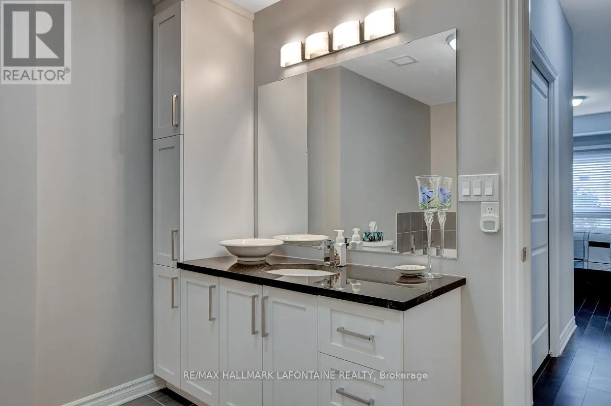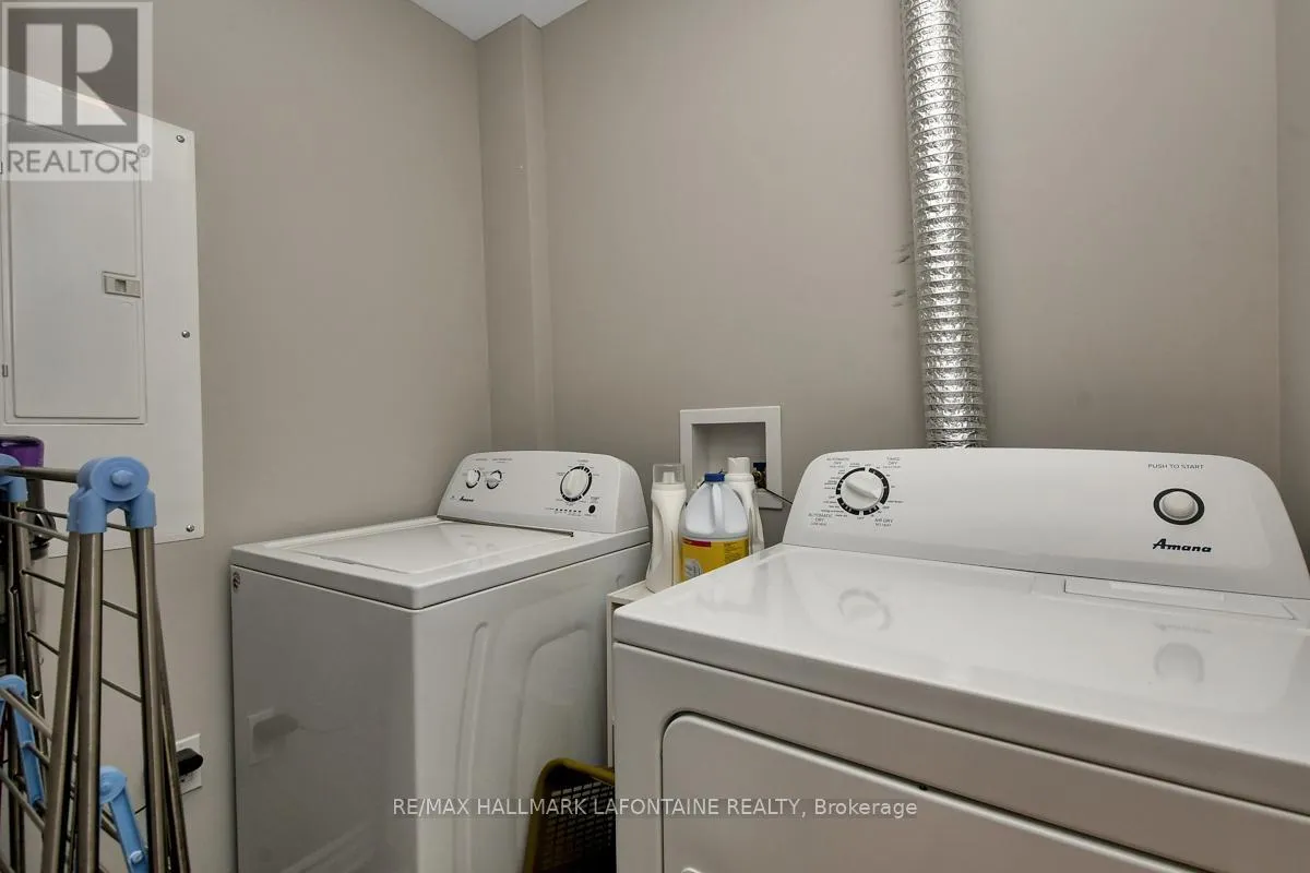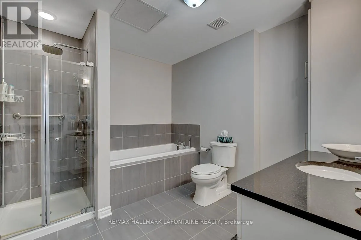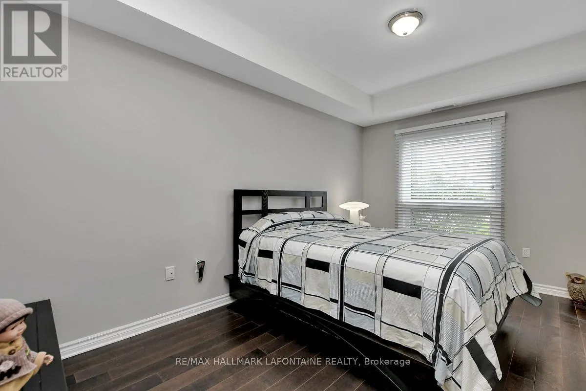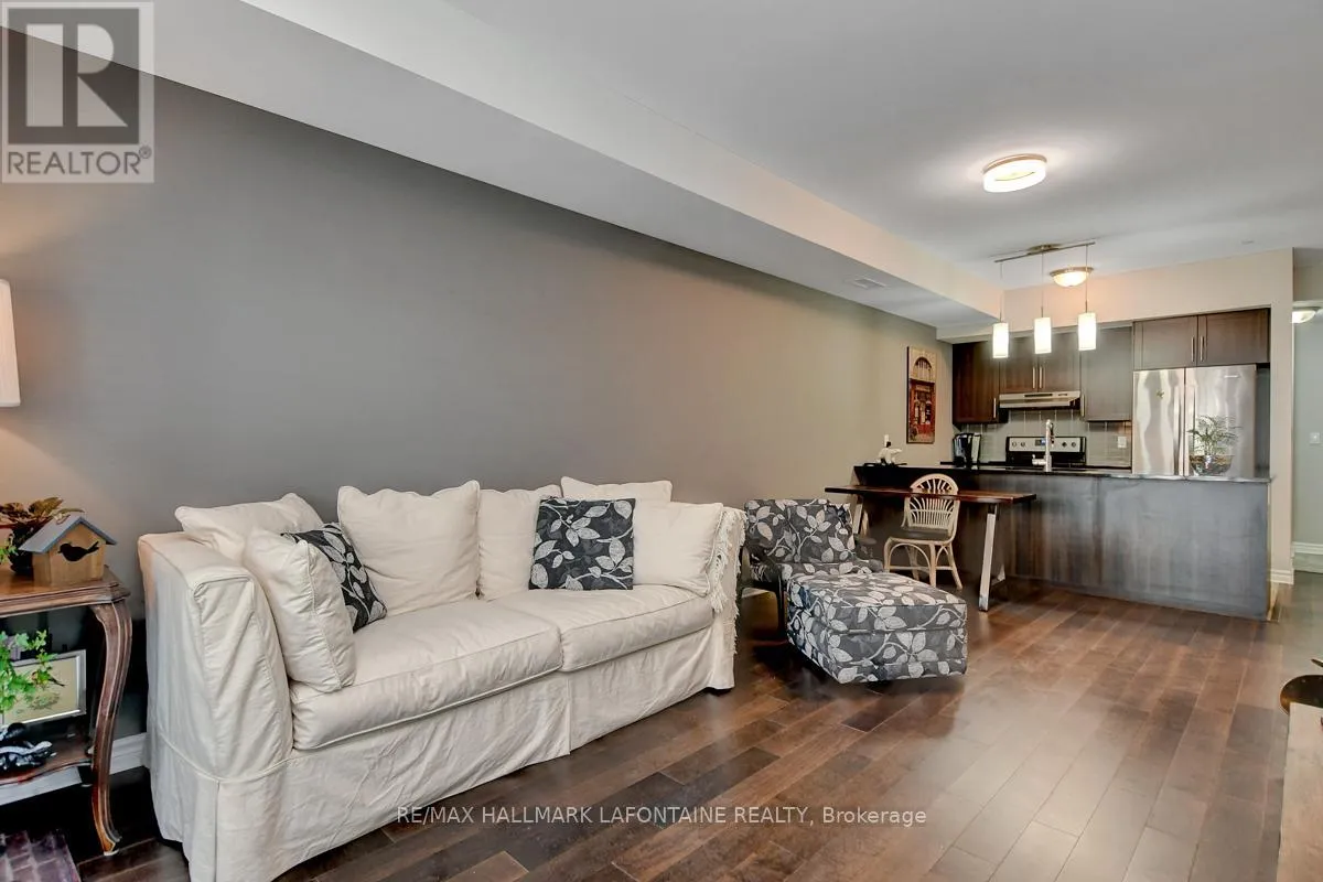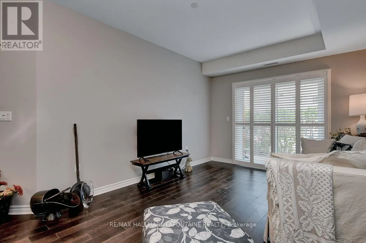 Cross Streets: Jeanne D'Arc and Prestige. ** Directions: Jeanne D'Arc to Prestige. Welcome to Petrie's Landing! This spacious and thoughtfully designed 2-bedroom condo combines modern comfort with a fantastic location. Enjoy effortless access to transportation and the beautiful Ottawa River trails just steps from your door.The bright, open-concept living and dining area features engineered hardwood flooring, California shutters, and sliding doors that lead to your private terrace - perfect for morning coffee or evening relaxation. The kitchen boasts granite countertops, a breakfast bar, stainless steel appliances, and a stylish backsplash.The generous primary bedroom includes a luxurious ensuite with a soaker tub, separate shower, granite counters, and ceramic tile flooring. A second full bathroom with matching finishes conveniently connects to the in-unit laundry room.Nestled on the quiet side of the building, this condo is surrounded by greenery and even has a small park right out front. A wonderful blend of nature, style, and convenience come see it for yourself! (id:27476)