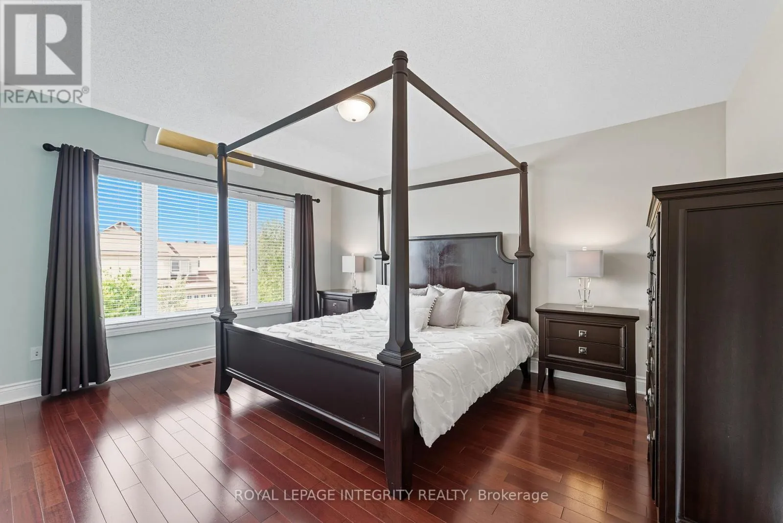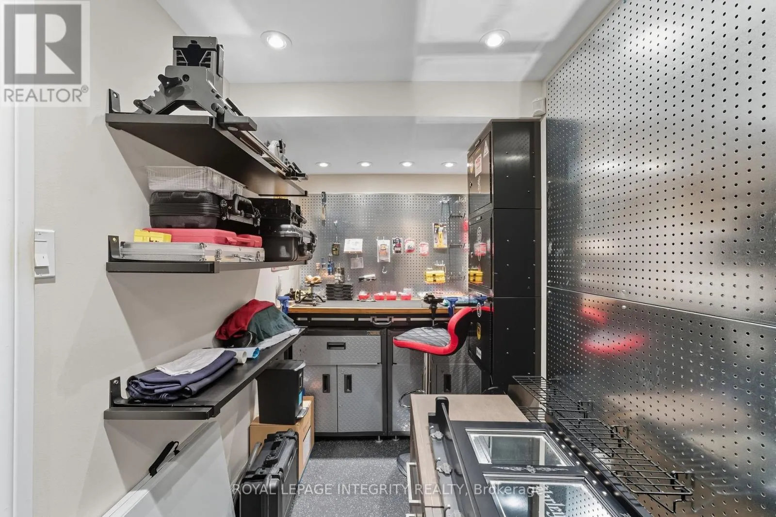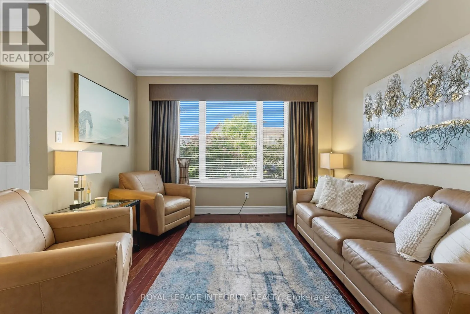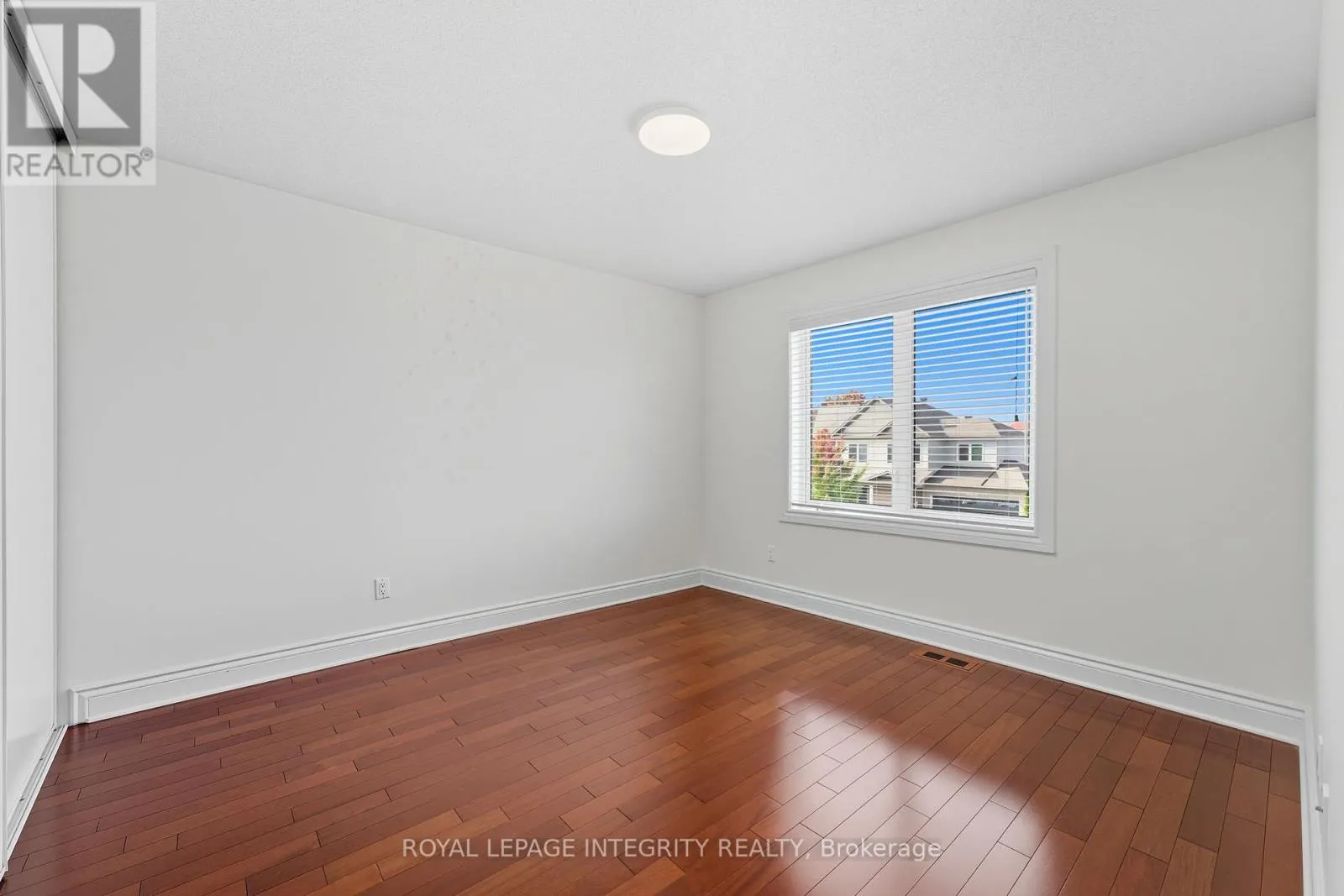 Cross Streets: Tenth Line Road and Harvest Valley Drive. ** Directions: Going South on Tenth Line Road, turn left onto Harvest Valley Ave, turn right onto Beaudelaire Dr., and turn left onto Winterspring Ridge. Exceptional 4-bedroom, 4-bath home with over $250k in upgrades offers over 2,900 sq ft of thoughtfully designed living space, combining elegance, comfort, and sophisticated craftsmanship at every turn. Beautiful front landscaping sets the stage from the moment you arrive, leading to an interior with a spiral staircase crowned by a crystal chandelier. 9 ft ceilings, rich Brazilian cherry hardwood floors, granite surfaces, custom millwork including wainscoting and crown moulding, and a built-in sound system create an atmosphere of elevated living, complemented by abundant potlights throughout. The family room, anchored by a gas fireplace with cultured stone surround, flows seamlessly into the kitchen, featuring a coffered ceiling, large granite island, and solid wood cabinetry - a perfect space for entertaining or daily family life. The primary bedroom is a private retreat, offering a walk-in closet and a spa-inspired 5-piece ensuite with a glass shower, soaker tub, and double sinks. Three additional bedrooms are spacious and bright, while the upper-level laundry with cabinetry adds convenience. The fully finished lower level with 9-foot ceilings unveils a grand entertaining haven, showcasing a custom granite and cultured stone bar, private gym, full bathroom with a large glass shower, workshop area, and extensive storage. Step outside to a sun-filled, resort-style backyard. A heated saltwater pool sits at the heart of the space, framed by custom interlocking stonework, with an expansive pavilion-style covered patio providing the perfect setting for summer gatherings. Southern exposure and lush landscaping envelop the property in warmth and serenity, creating a luxurious private oasis. Additional features include an irrigation system and celebright soffit lighting, showcasing the care and attention to detail evident throughout this remarkable property. Located steps from scenic walking trails surrounding a large pond. 24hr irrevocable on all offers. (id:27476)