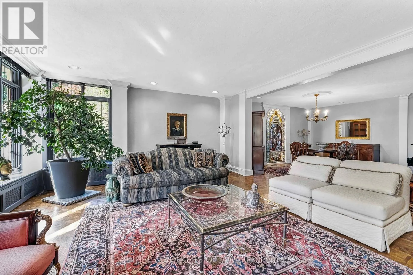 Cross Streets: Stanley and Union. ** Directions: Stanley. This "John Arnold" architectural masterpiece overlooks Stanley Park, the Rideau River and the Ottawa skyline. Approx 3,000 sq. ft located on one of the prime avenues of New Edinburgh. Outdoor spaces are 3 terraces and a walled garden, all with outstanding views. This home offers high ceilings, hardwood floors and classic finishings. All has been maintained and upgraded over the years. Depending upon your needs, there are 3-5 bedrooms. 3.5 luxurious baths. Large entertaining spaces and a very flexible layout combine to create an oasis in the city. A shared lane guides you to a spacious double garage, which can be accessed from the rear courtyard or the side entrance walkway. The basement is completely finished. One terrace has an electrical operated awning and the master bathroom features a steamroom shower. All appliances included. Exclusion is statue in front yard. (id:27476)