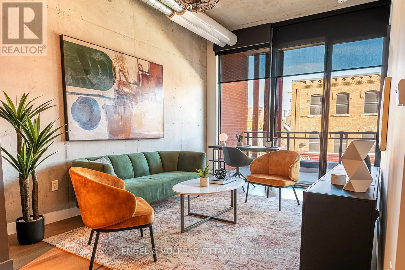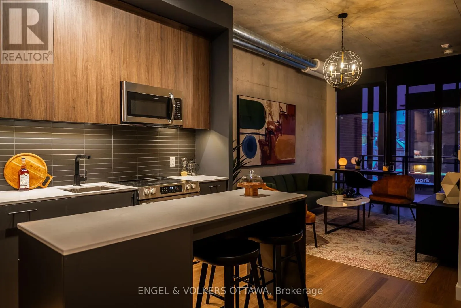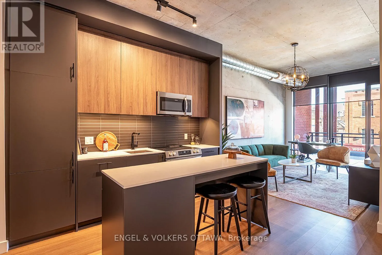 Cross Streets: Bank St. / James St. ** Directions: From Bank St. and Gladstone Ave., head North on Bank St, then turn West onto James St. Experience elevated living at the brand-new James House, a boutique condominium redefining urban sophistication in the heart of Centretown. Designed by award-winning architects, this trend-setting development offers contemporary new-loft style living and thoughtfully curated amenities. This stylish 2-bedroom suite spans 745 sq.ft. of interior space and features 10-ft ceilings, floor-to-ceiling windows, exposed concrete accents, and a private balcony. The modern kitchen is equipped with a sleek island, quartz countertops, built-in refrigerator and dishwasher, stainless steel appliances, and ambient under-cabinet lighting. The thoughtfully designed layout includes in-suite laundry conveniently located near the entrance and a full bathroom with modern finishes. James House enhances urban living with amenities including a west-facing rooftop saltwater pool, fitness center, yoga studio, zen garden, stylish resident lounge, and a dog washing station. Located steps from Centretown and the Glebe's finest dining, shopping, and entertainment, James House creates a vibrant and welcoming atmosphere that sets a new standard for luxurious urban living. On-site visitor parking adds to the appeal. Other suite models are also available. Inquire about our flexible ownership options, including rent-to-own and save-to-own programs, designed to help you move in and own faster. (id:27476)