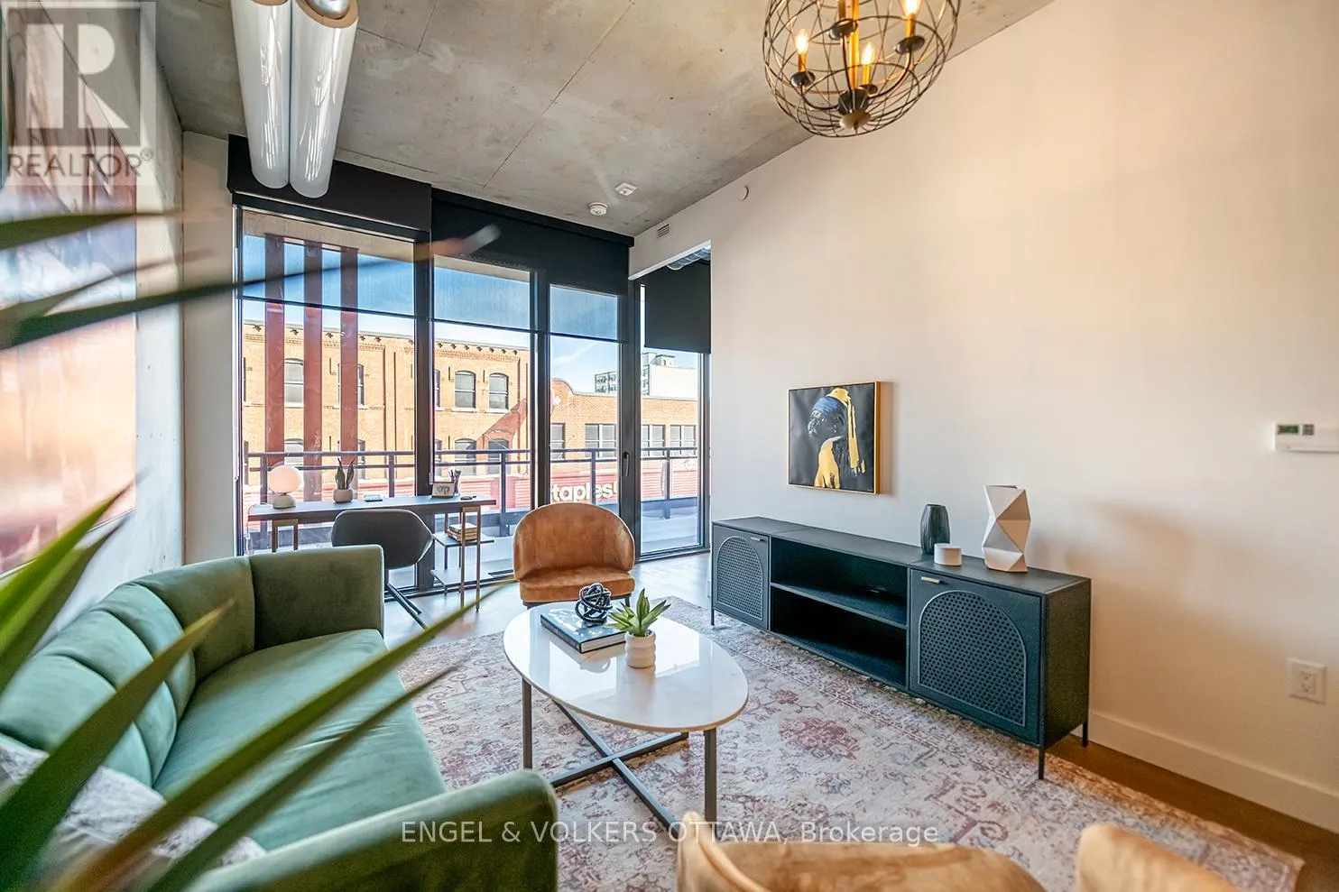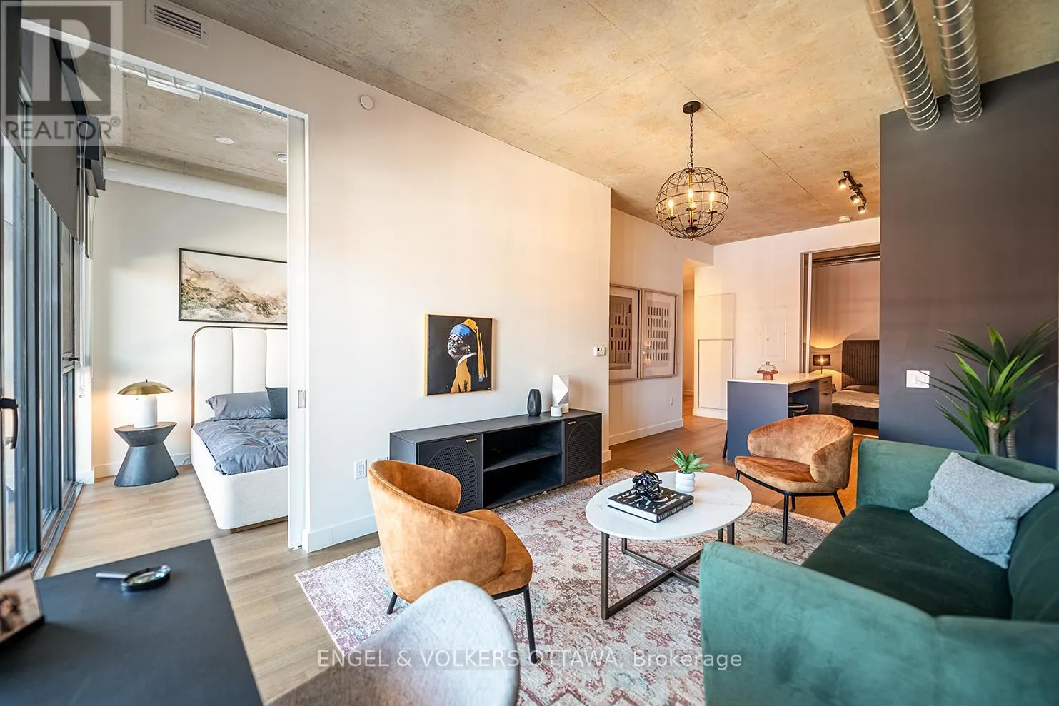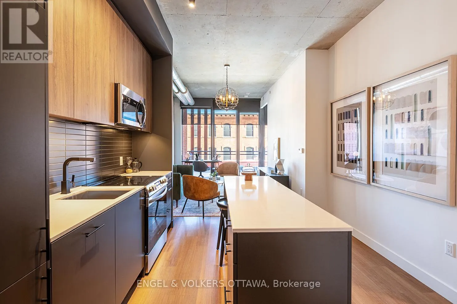 Cross Streets: Bank St. / James St. ** Directions: From Bank St. and Gladstone Ave., head North on Bank St, then turn West onto James St. Experience elevated living at the brand-new James House, a boutique condominium redefining urban sophistication in the heart of Centretown. Designed by award-winning architects, this trend-setting development offers contemporary new-loft style living and thoughtfully curated amenities. This stylish 2-bedroom suite spans 745 sq.ft. of interior space and features 10-ft ceilings, floor-to-ceiling windows, exposed concrete accents, and a private balcony. The modern kitchen is equipped with a sleek island, quartz countertops, built-in refrigerator and dishwasher, stainless steel appliances, and ambient under-cabinet lighting. The thoughtfully designed layout includes in-suite laundry conveniently located near the entrance and a full bathroom with modern finishes. James House enhances urban living with amenities including a west-facing rooftop saltwater pool, fitness center, yoga studio, zen garden, stylish resident lounge, and a dog washing station. Located steps from Centretown and the Glebe's finest dining, shopping, and entertainment, James House creates a vibrant and welcoming atmosphere that sets a new standard for luxurious urban living. On-site visitor parking adds to the appeal. Other suite models are also available. Inquire about our flexible ownership options, including rent-to-own and save-to-own programs, designed to help you move in and own faster. (id:27476)