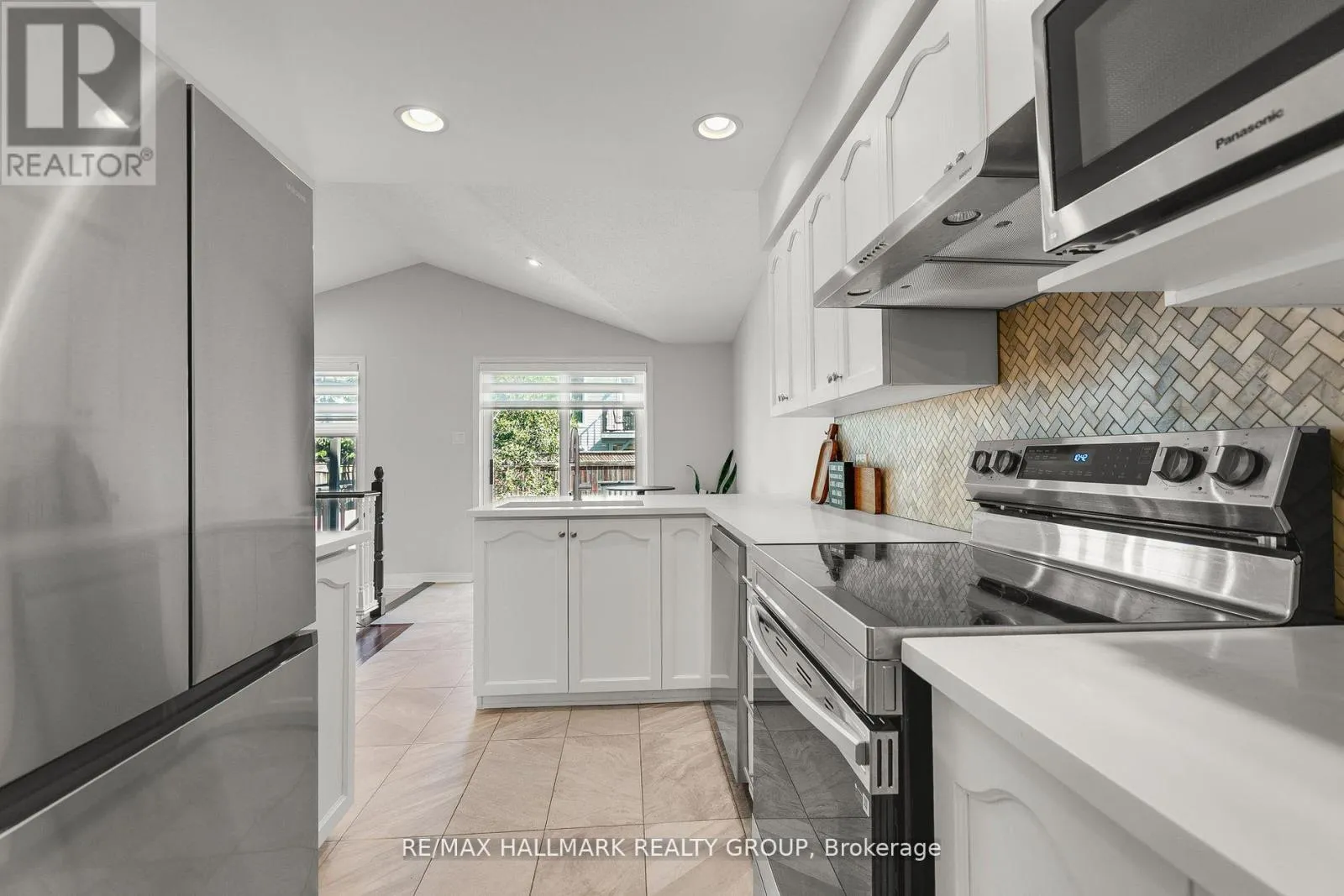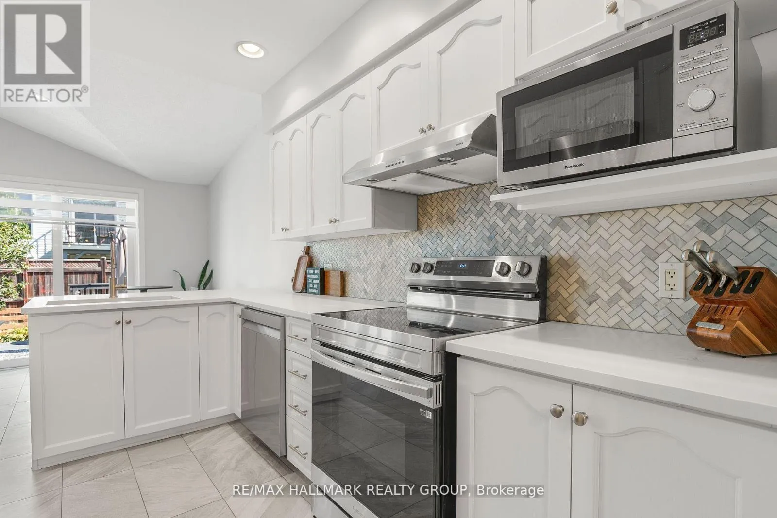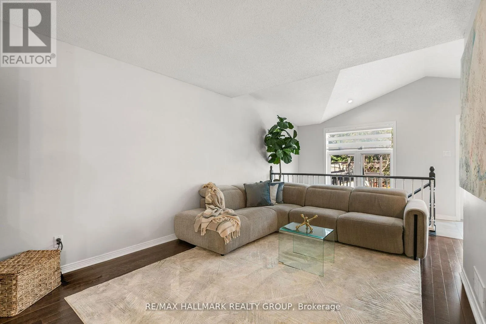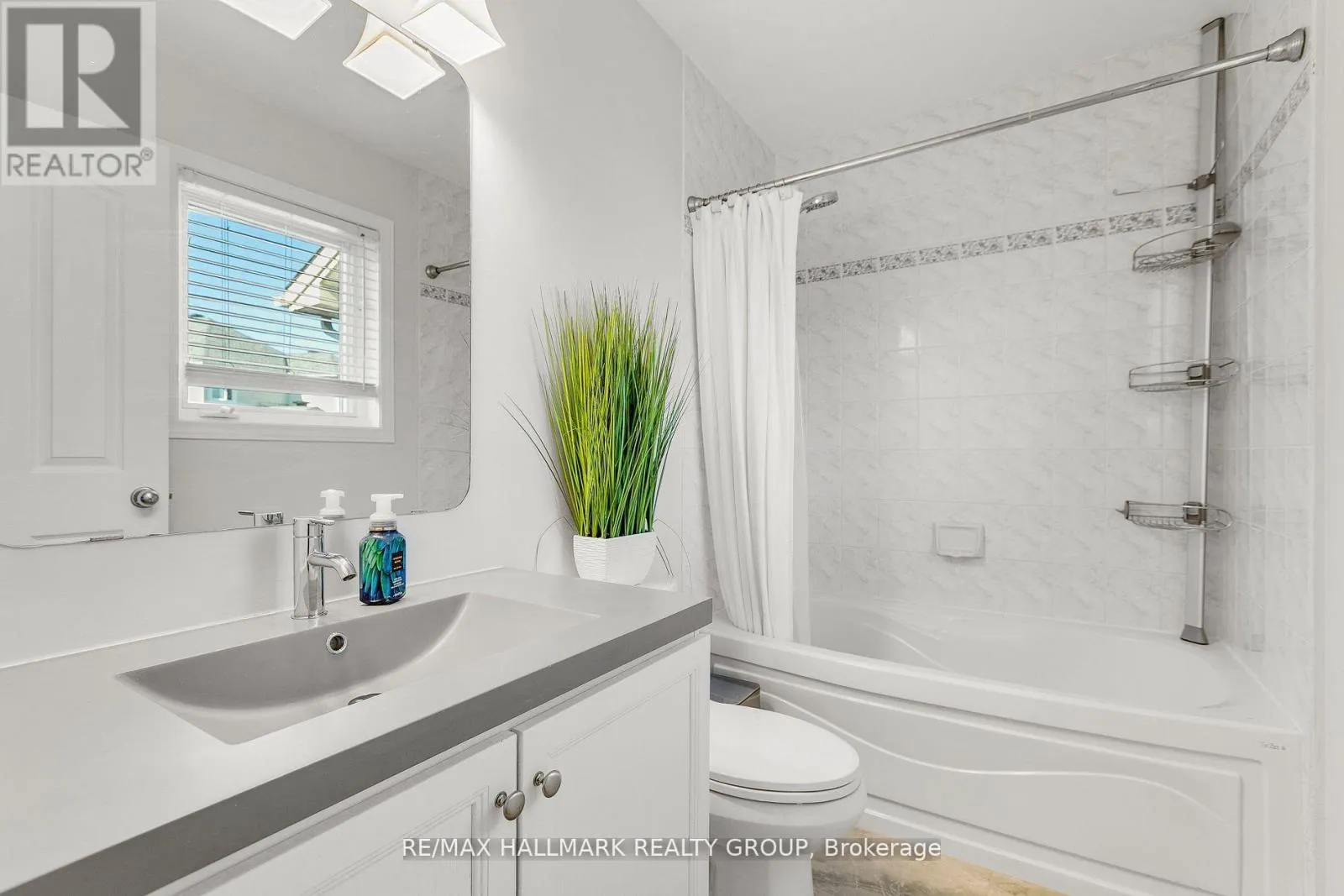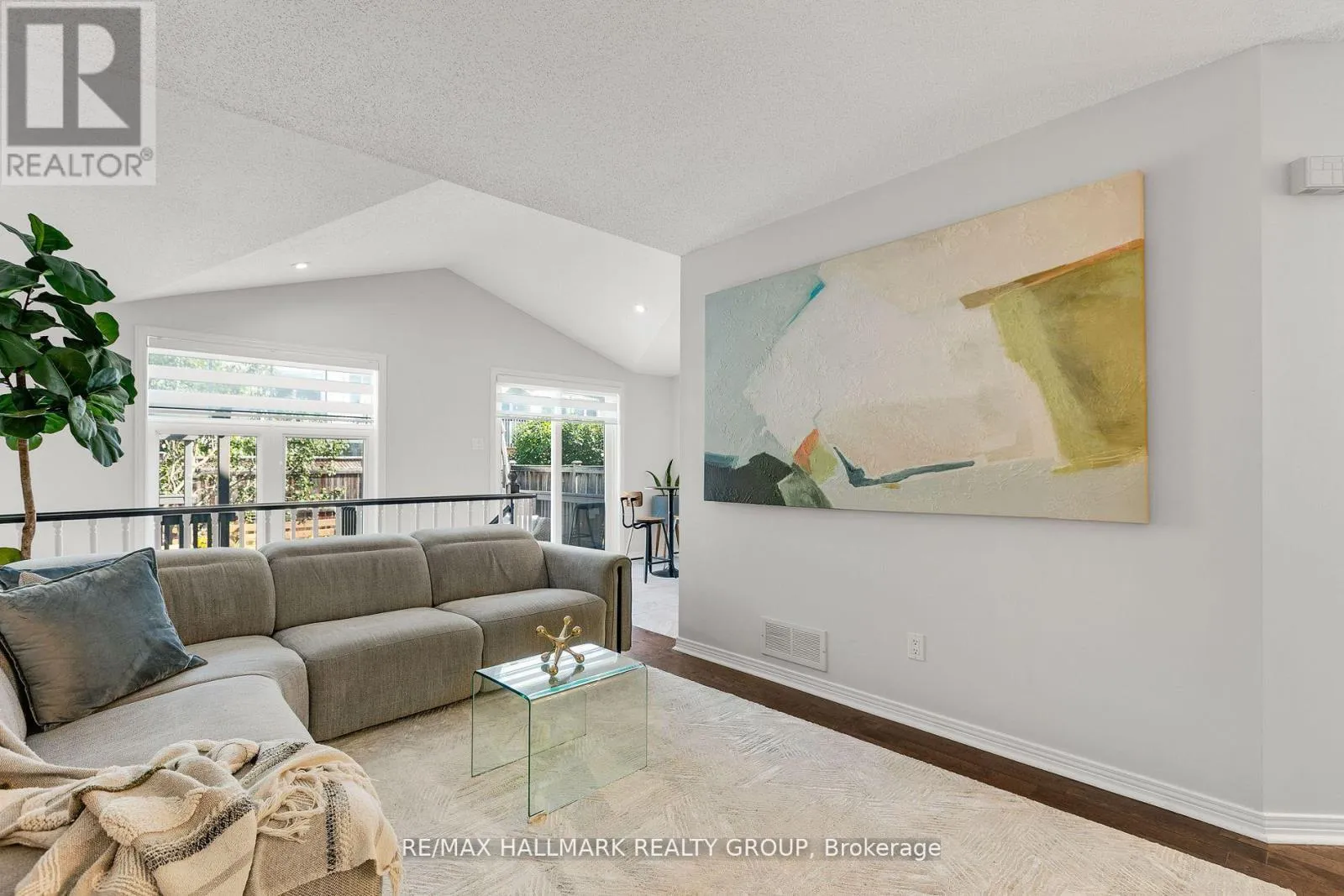 31 Saddlesmith Circ, Kanata Beautifully updated 3-bedroom 3 bath townhome in the desirable Bridlewood community of Kanata! The main level offers hardwood and tile flooring, a spacious living room with vaulted ceiling, separate dining area, and a bright eat-in kitchen with quartz counters, breakfast bar, and recently updated SS appliances. Upstairs you'll find a generous primary suite with ensuite and walk-in closet, two additional bedrooms, and a full 3piece bath. The finished lower level features a cozy family room and plenty of storage. Enjoy outdoor living in the fenced backyard with oversized deck, perfect for relaxing or entertaining. Additional features include updated baths, central air, brick frontage with covered entrance, and parking for 2 cars. Located in a family-friendly neighborhood close to excellent schools, parks, trails, shopping, and public transit. (id:27476)