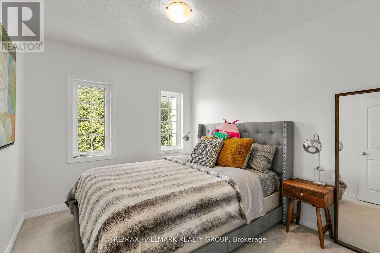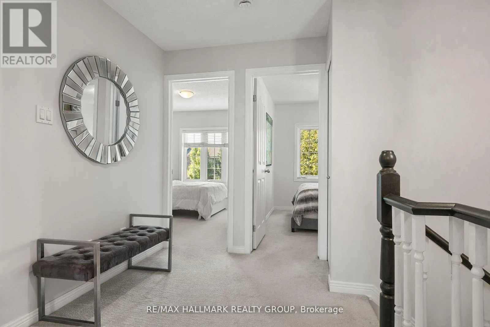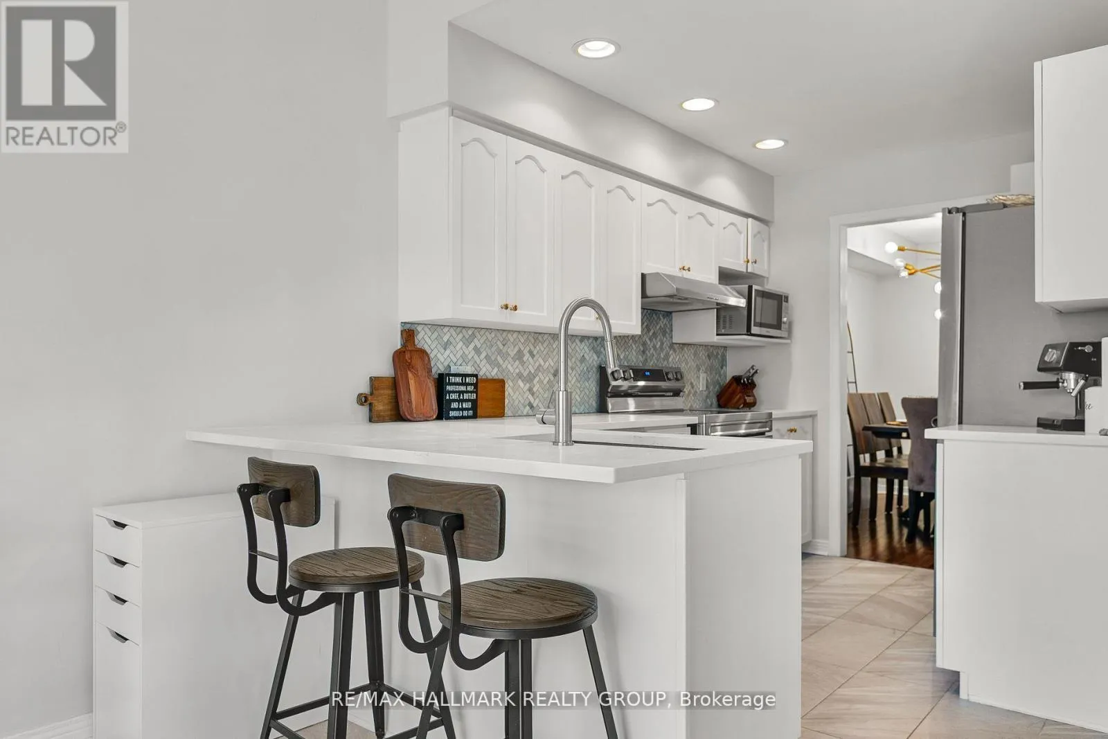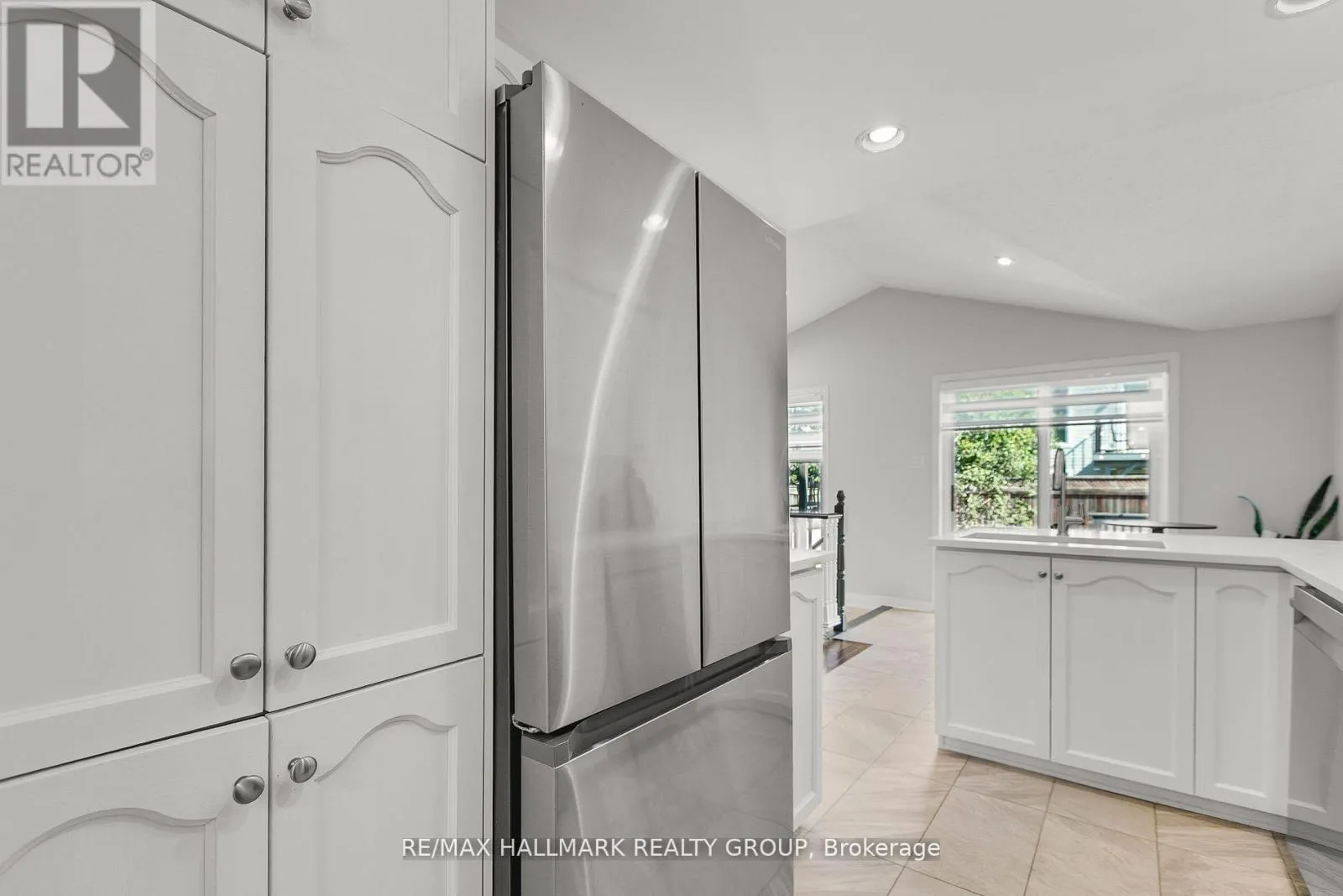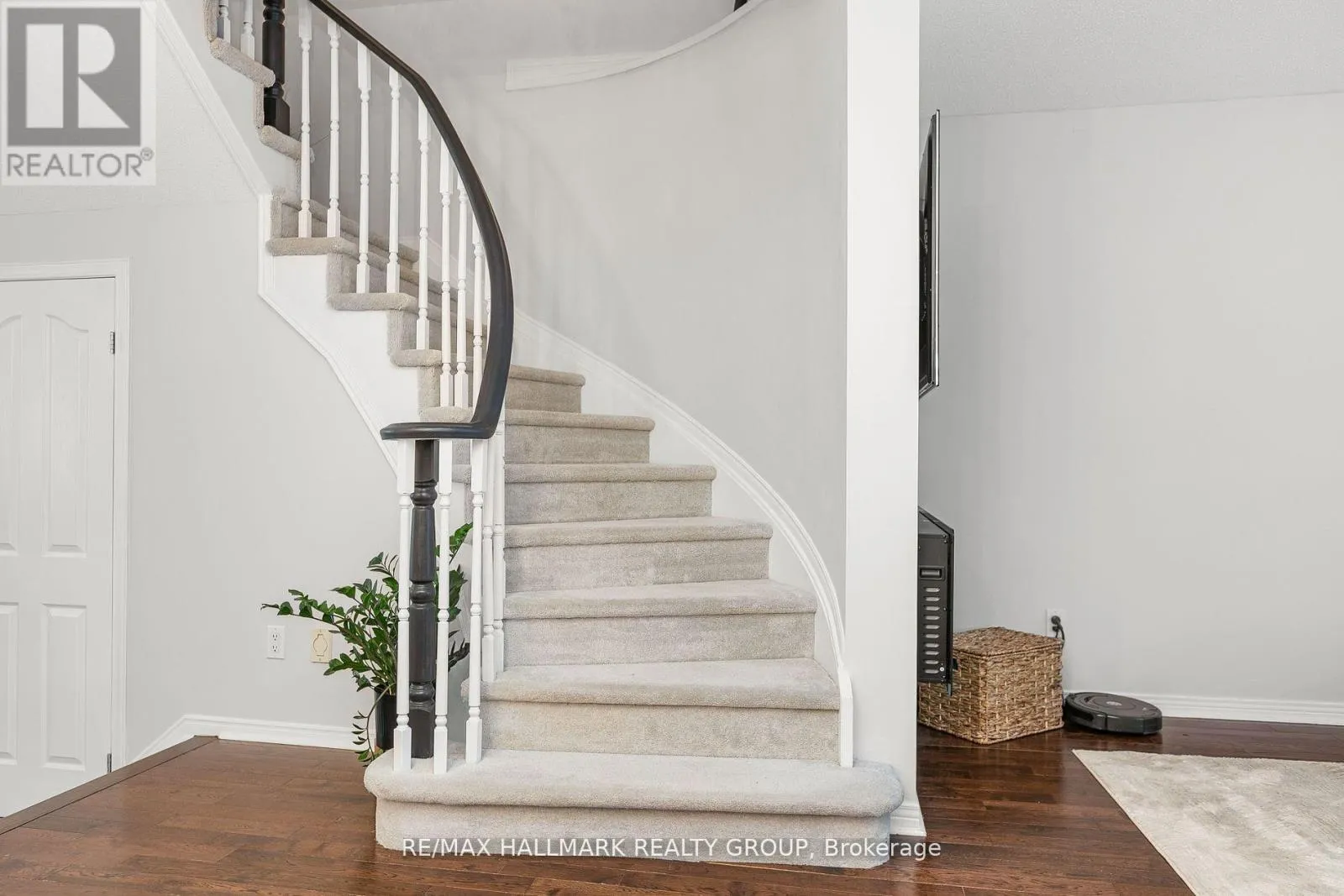 31 Saddlesmith Circ, Kanata Beautifully updated 3-bedroom 3 bath townhome in the desirable Bridlewood community of Kanata! The main level offers hardwood and tile flooring, a spacious living room with vaulted ceiling, separate dining area, and a bright eat-in kitchen with quartz counters, breakfast bar, and recently updated SS appliances. Upstairs you'll find a generous primary suite with ensuite and walk-in closet, two additional bedrooms, and a full 3piece bath. The finished lower level features a cozy family room and plenty of storage. Enjoy outdoor living in the fenced backyard with oversized deck, perfect for relaxing or entertaining. Additional features include updated baths, central air, brick frontage with covered entrance, and parking for 2 cars. Located in a family-friendly neighborhood close to excellent schools, parks, trails, shopping, and public transit. (id:27476)