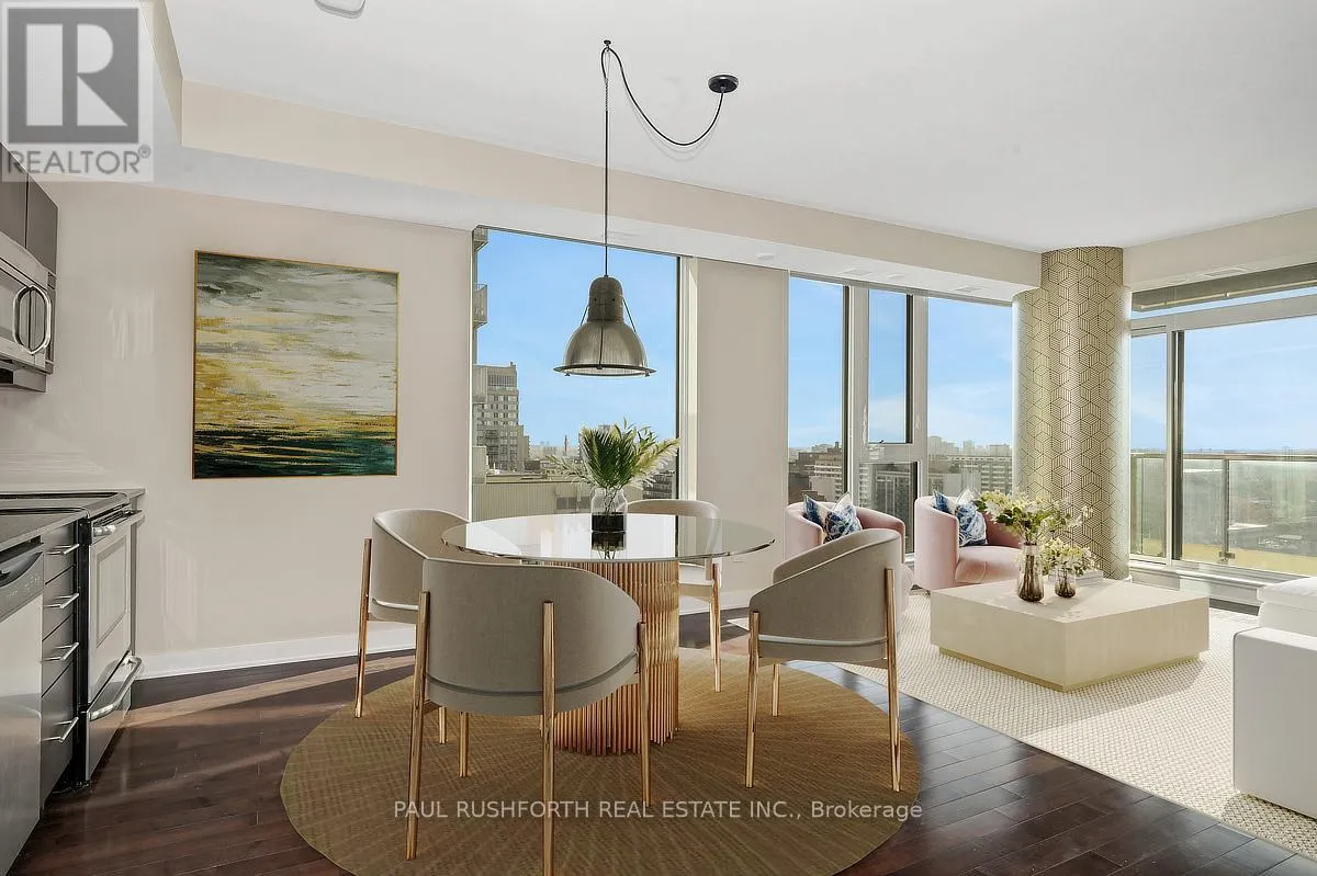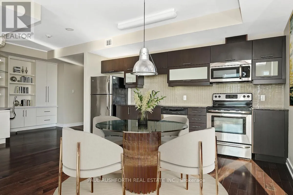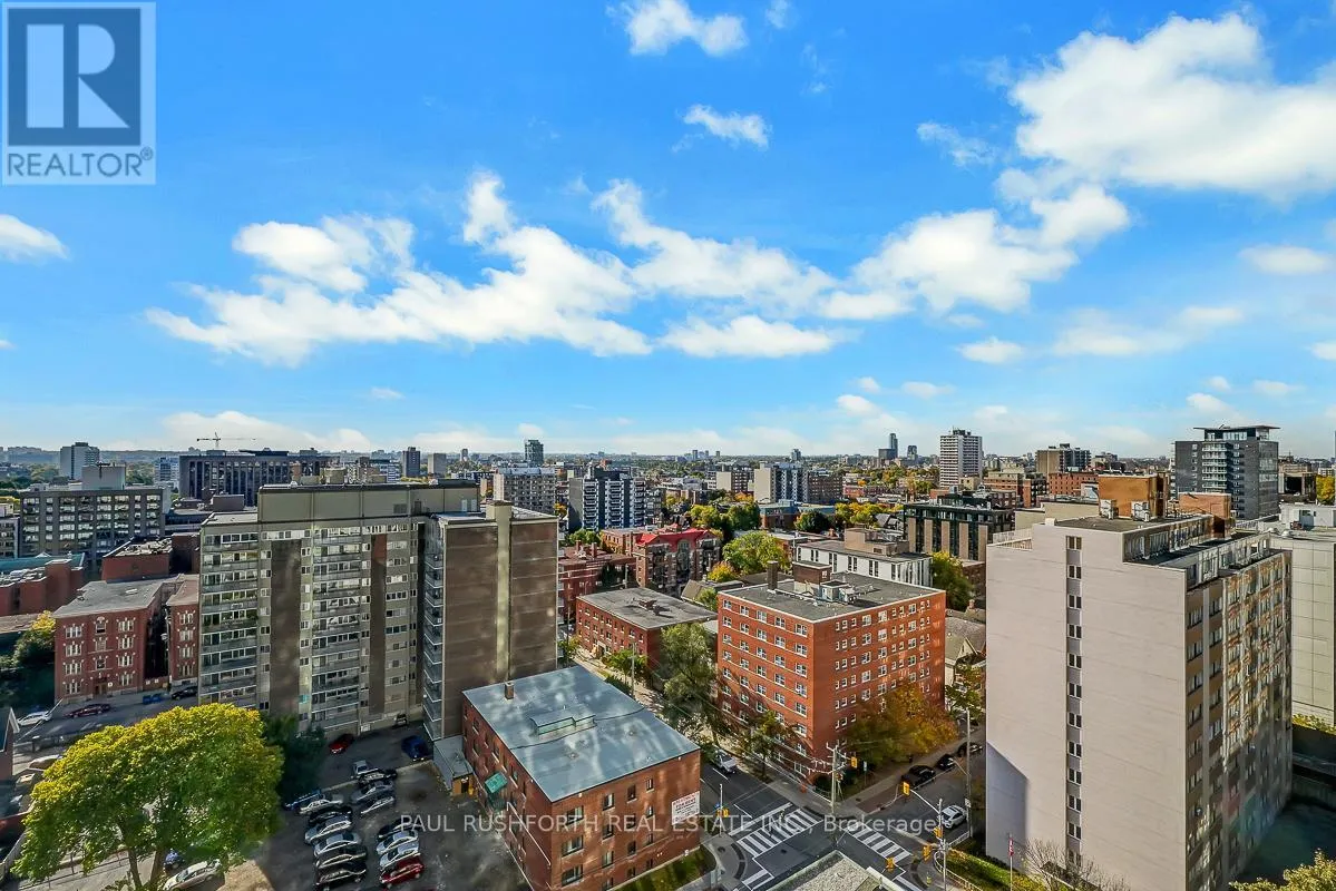 Cross Streets: Corner of Metcalfe and Nepean Street. ** Directions: Highway 417 E, Exit 119 Metcalfe St, merge to Isabella St, left on Metcalfe, property on right. Welcome to urban living at its best in the heart of it ALL! CORNER UNIT; one of the largest units in the building. This 1-bedroom plus den on the 14th floor of the Tribeca building offers a bright, open layout with floor-to-ceiling windows, city views, and a private balcony. The space feels airy and modern, with hardwood floors throughout the main living areas and ceramic tile in the kitchen and bath. The kitchen features stainless steel appliances, granite counters: the perfect spot for entertaining. The den, with gorgeous custom built in desk area, is a perfect work-from-home space or reading nook, and in-unit laundry makes day-to-day living so convenient. This fabulous building is known for its full suite of amenities, including a 24-hour concierge, indoor pool, fitness centre, rooftop terrace, BBQs, guest suites, and secure underground parking with storage. The monthly condo fee includes heat, water, building insurance, and common area maintenance, keeping ownership simple and predictable. Set just steps from Elgin Street's restaurants and shops, the Rideau Centre, the LRT, LCBO, Farm Boy (on the ground floor)...Parliament Hill and a short walk to uOttawa the location couldn't be more convenient. Whether your'e a first-time buyer, investor, or looking for a low-maintenance home base downtown, this condo delivers comfort, style, and unbeatable walkability. Underground parking and locker included. (id:27476)
