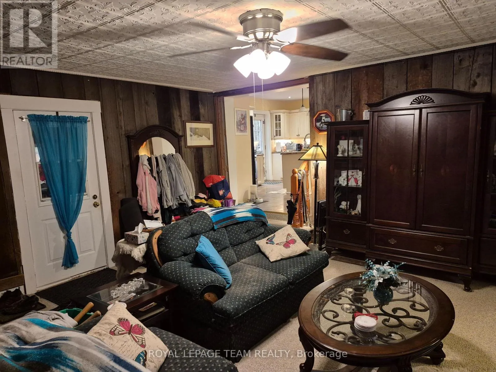 Cross Streets: Yorks Cors Rd and Victoria St. ** Directions: 1000 ft East of Yorks cors Rd ,South side of Victoria St. Just East of the village of Metcalfe--is this rural opportunity on five acres! 1870's farm home has received various improvements and upgrades over past 30 years and is seeking new owners to apply some finishing touches! A private wooded location set back from Victoria St -Minutes from Metcalfe and Russell with lots of potential and occupied by mature folks who are ready to downsize.Newer kitchen with Island and adjacent dining room.Large living room,Three bedrooms,Nat gas heat,air conditioning,2 baths,Separate staircase to primary bedrm(With ensuite) and original stairs to other bedrms and main bath.Sellers are busy packing but can allow showings with 24 hrs advance notice. Sellers may prefer attendance at showings by listing agent.Outbuildings should not be entered due to poor condition.Sellers are busy decluttering.Pls excuse temporary misc items outside etc. (id:27476)