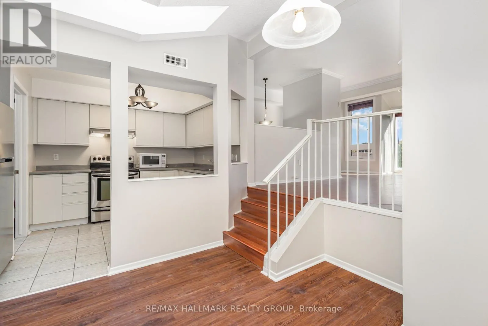 Cross Streets: Woodroffe Avenue & Medhurst Drive. ** Directions: Woodroffe Avenue, East on Medhurst Drive, South on Woodfield Drive OR Merivale Road, West on Woodfield Drive. Welcome to this bright and spacious 2-bedroom upper-unit condo townhome in Nepean, offering a comfortable and convenient lifestyle in a fantastic location. Large windows fill the home with natural light, while laminate flooring flows throughout the space for a clean, cohesive look. The inviting living room features a wood-burning fireplace, crown moulding, and pot lights, creating a warm and welcoming atmosphere. A separate dining area provides plenty of room for family meals or casual entertaining. The well-equipped kitchen includes all appliances and has a handy laundry/utility room just off to the side for added convenience. The primary bedroom offers cheater access to the main bath, while a second bedroom and a powder room complete the home. Condo fees cover water and exterior maintenance, making for easy, low-maintenance living. Two parking spaces are also included. Perfectly located just minutes from public transit, walking paths, parks, the Nepean Sportsplex, Costco, Ottawa Hunt & Golf Club, Algonquin College, and a wide variety of shops, restaurants, and recreational options. Immediate possession available - move in and enjoy this bright and welcoming home today! (id:27476)