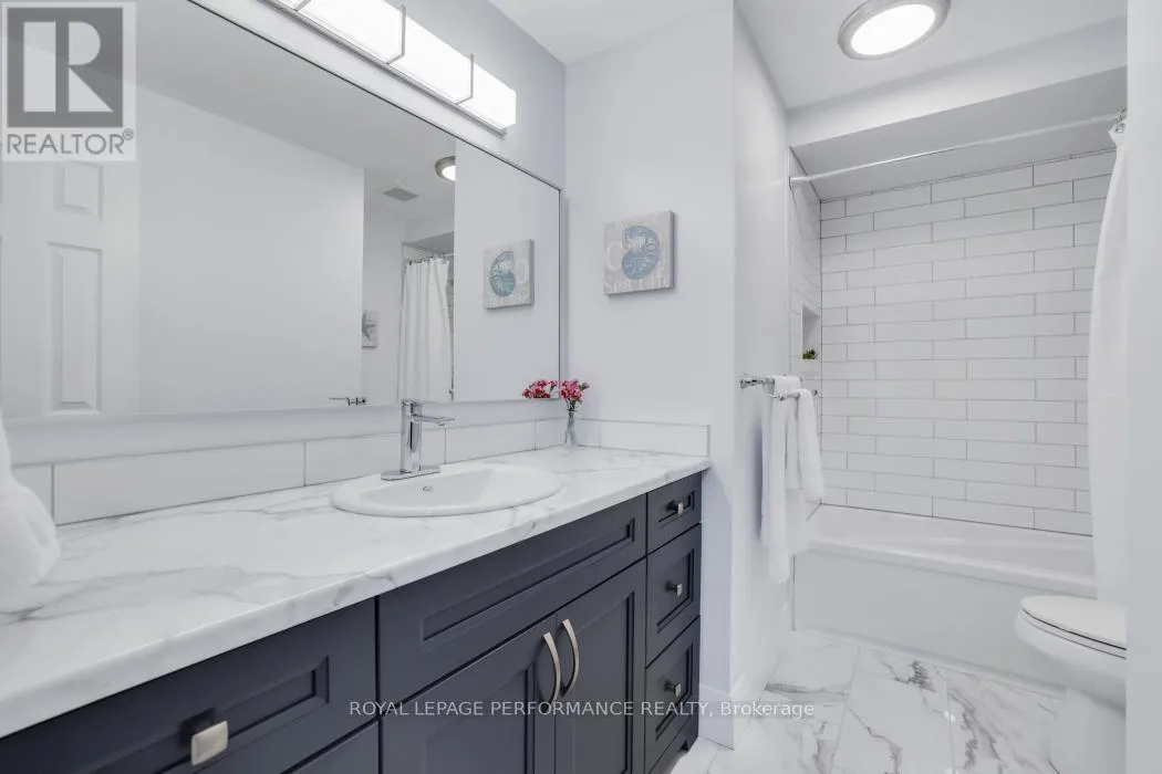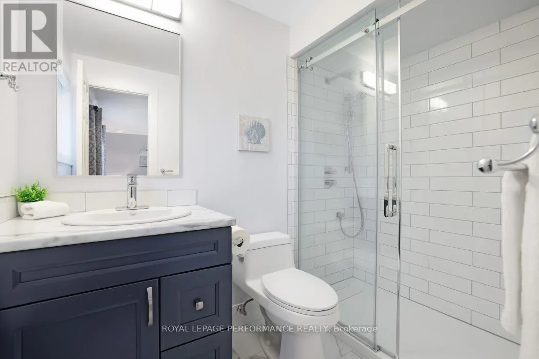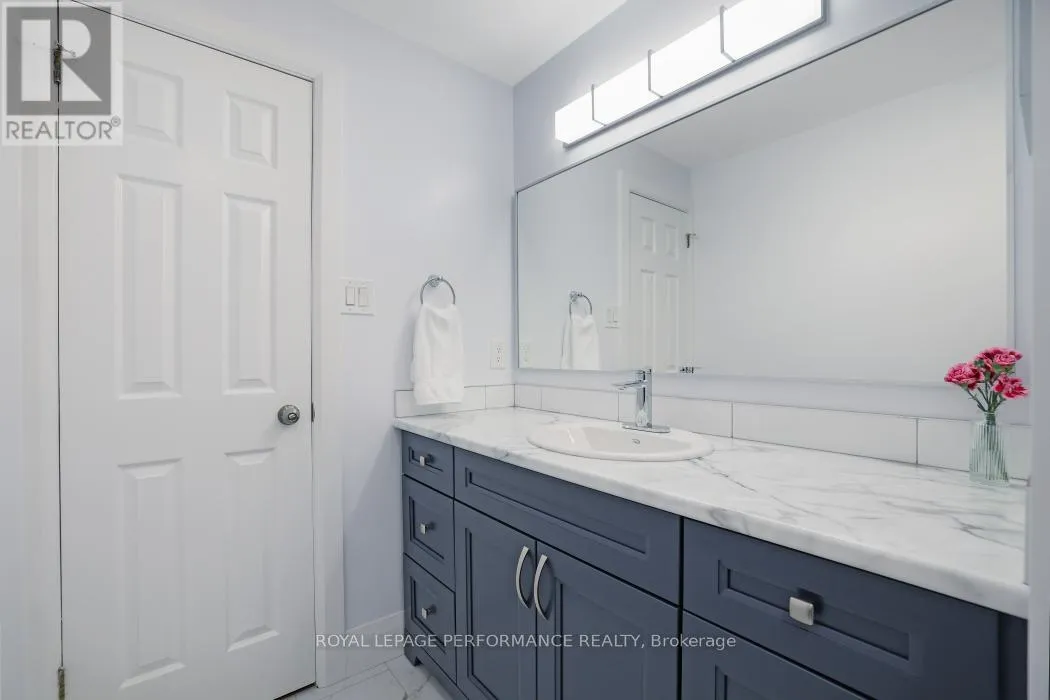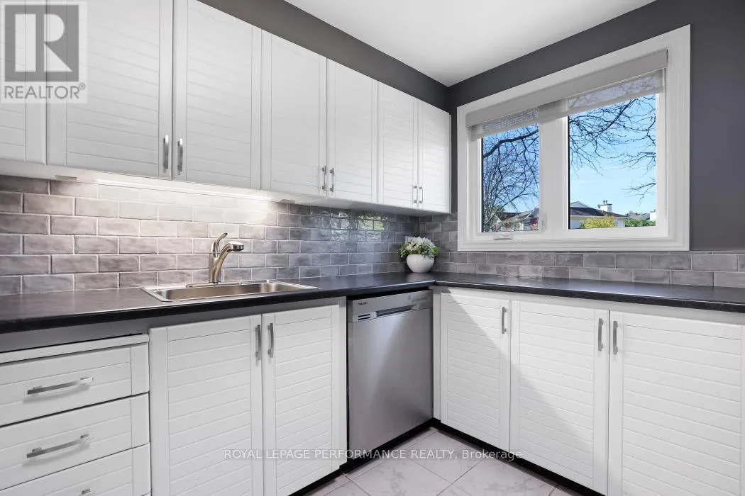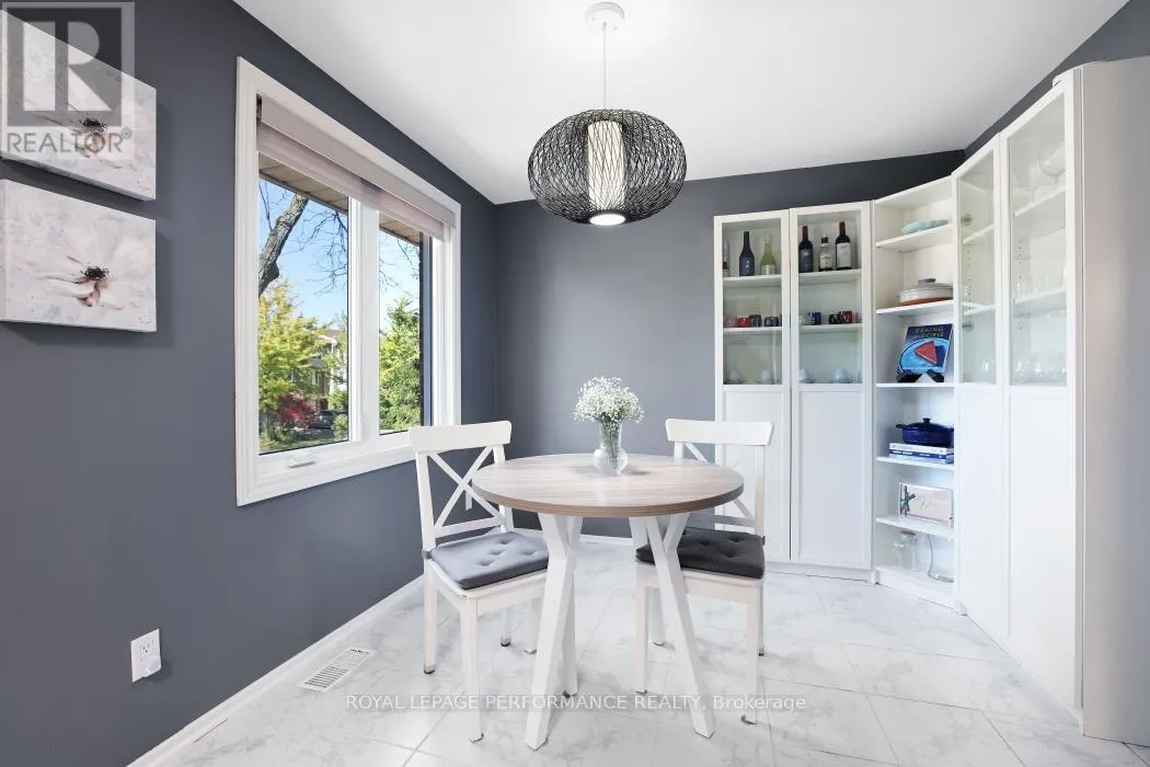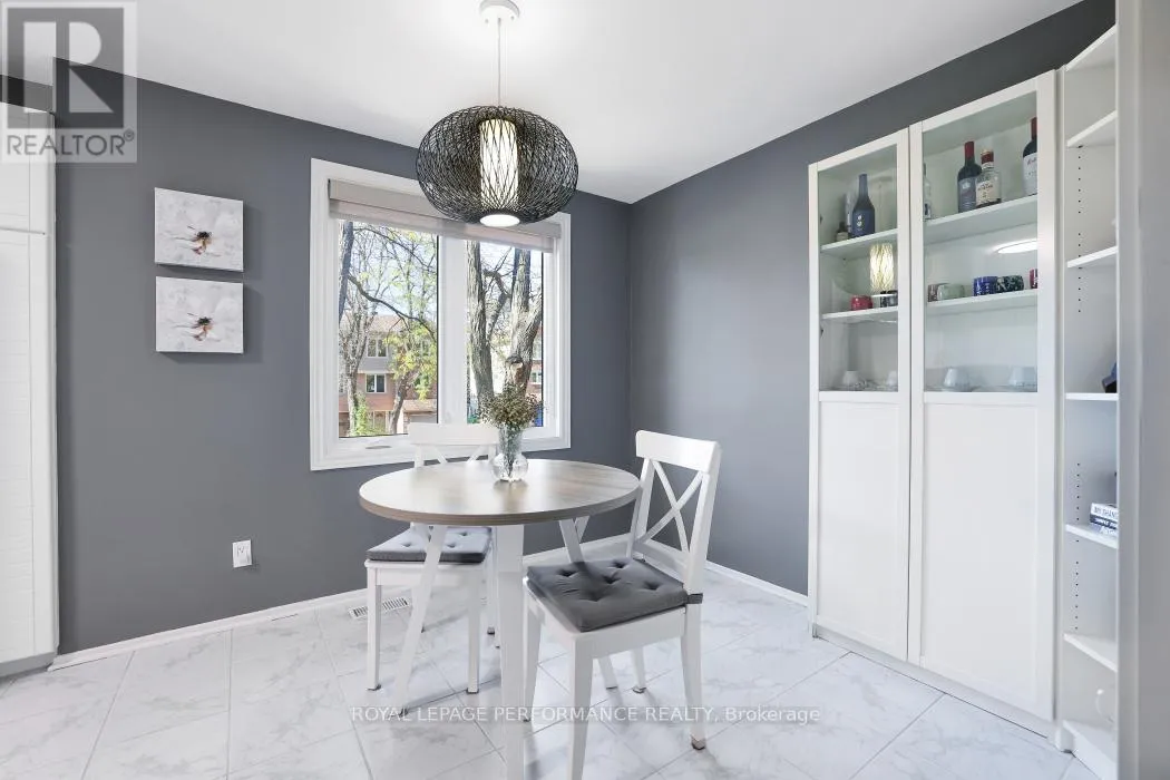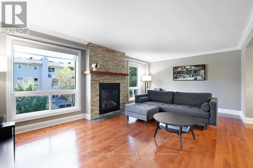 Cross Streets: Centrepointe Dr and Arbordale Cres. ** Directions: Centrepointe Dr to Arbordale Cres. Nestled on a quiet, tree-lined street in the desirable Centrepointe neighbourhood, this extensively renovated freehold townhome (no condo fees) is a true gem. Step inside the spacious tile foyer on the main level, featuring new closet doors, a freshly updated powder room (2023) and a bright family room or office space with direct access to the private backyard patio. The second floor impresses with an elegant living and dining area showcasing gleaming hardwood floors, crown moulding, and a cozy gas fireplace adorned with cultured stone surround.The large, bright eat-in kitchen boasts updated appliances, a stylish subway tile backsplash, and a generous pantry perfect for culinary enthusiasts. Upstairs, the carpet-free third level offers three spacious bedrooms, including a primary suite with a walk-in closet and a beautifully renovated 3-piece ensuite (2023), alongside a full family bathroom (2023).Enjoy your private, fenced backyard retreat featuring mature trees, lush gardens, and a handy storage shed. Conveniently located within walking distance to Centrepointe Park, Centrepointe Theatre, Algonquin College, College Square Shopping Centre, and excellent transit options.This stunning home perfectly combines modern updates with a sought-after location ideal for families and professionals alike. (id:27476)