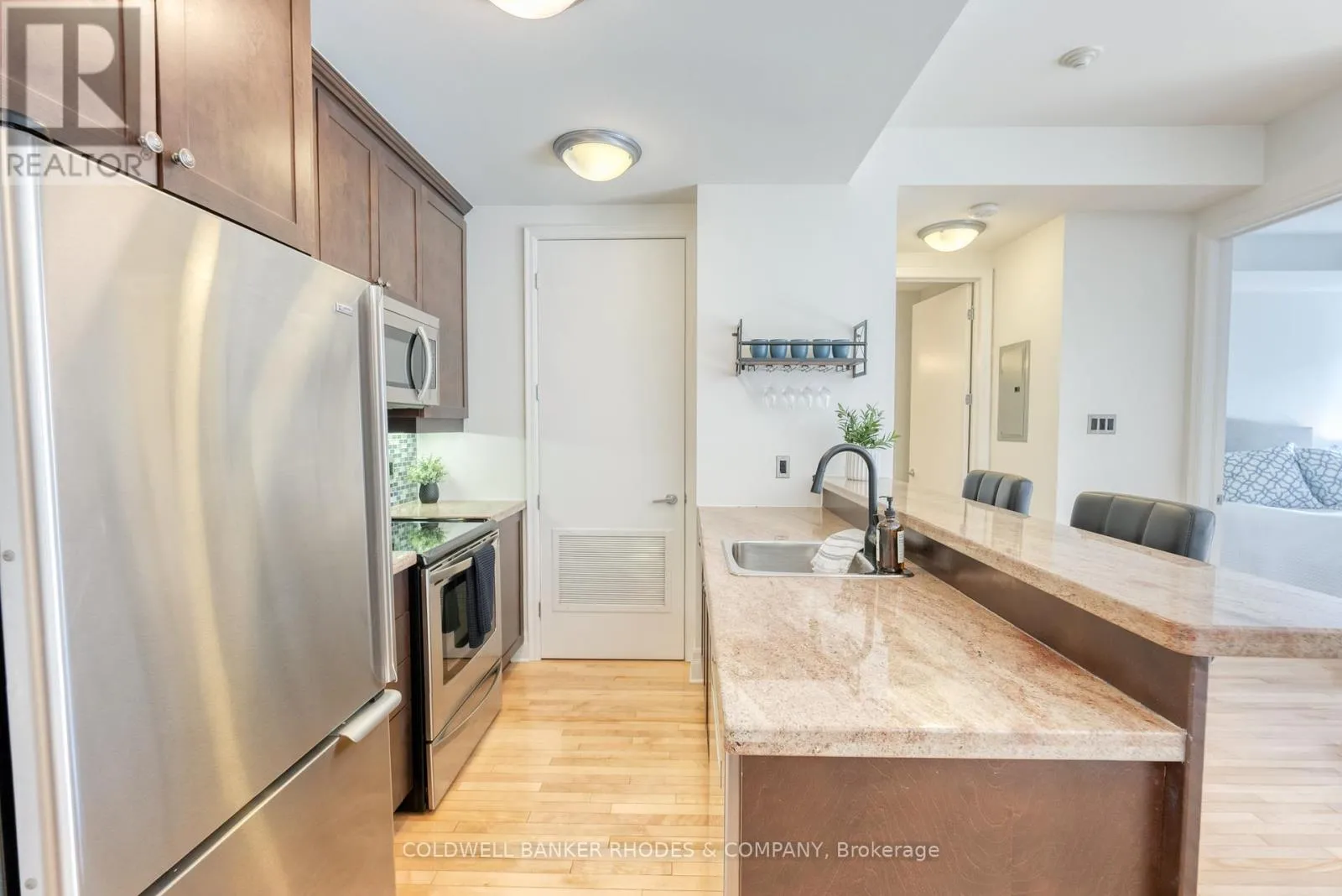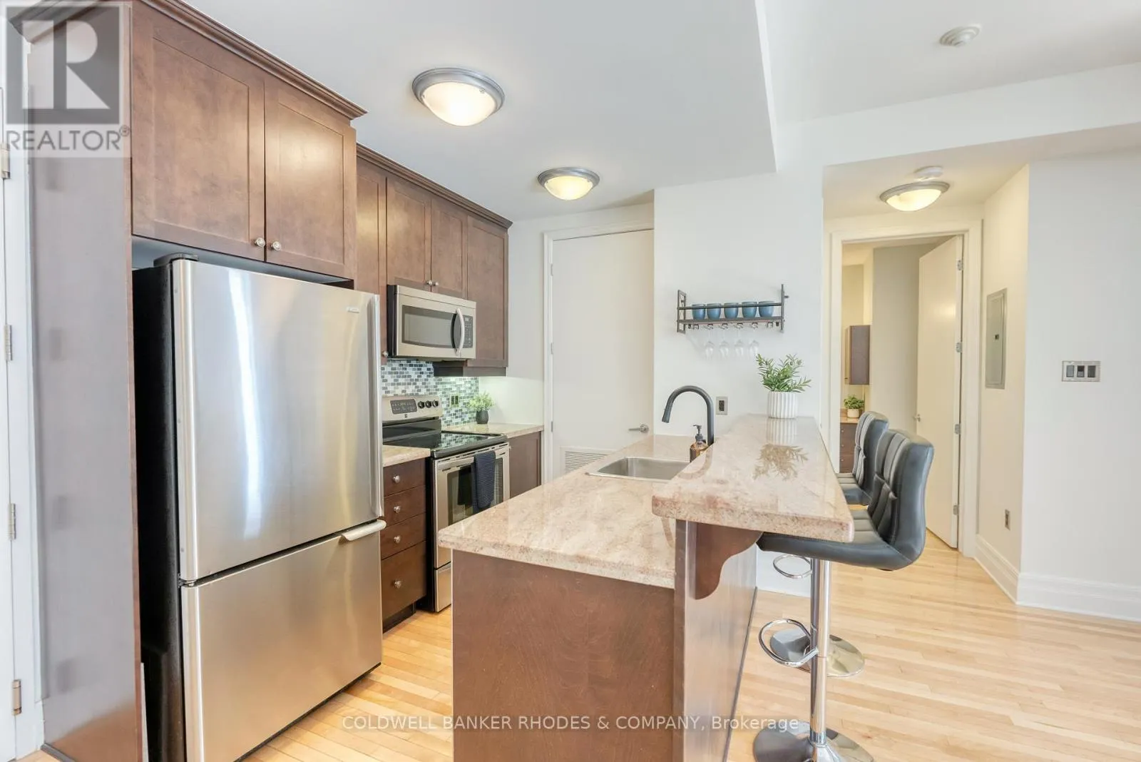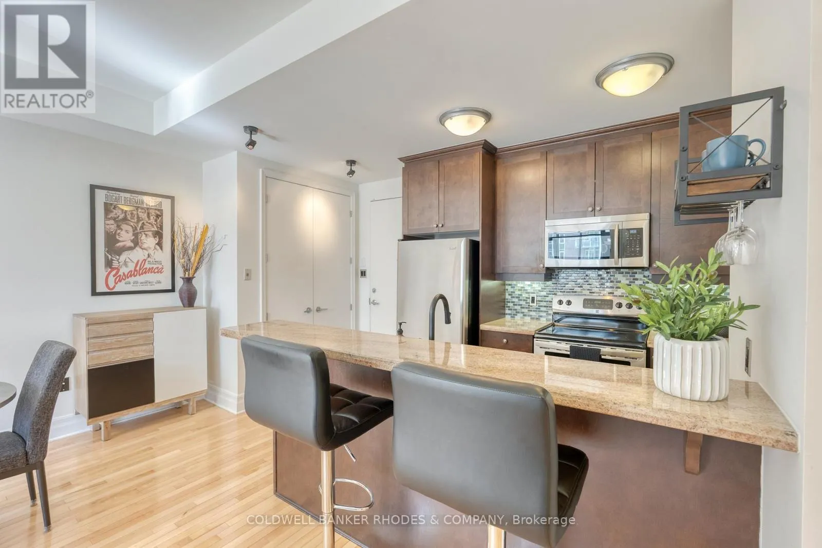 Cross Streets: Richmond Rd. ** Directions: Richmond Road to Berkley Ave. Domicile-built sunny open concept condo in prime Westboro location steps to all the desirable shops and restaurants this neighbourhood has to offer! Gourmet kitchen with 2 level sit-up bar, stainless steel appliances, granite countertops, tasteful backsplash & ample work space. Sit-up bar and adjacent eating area provides great dining options. Large wall of windows flood the living space with natural sunlight. Cozy gas fireplace sets the mood while providing warmth and comfort. Easy access from living room to spacious balcony with natural gas hookup, perfect for outdoor summer living. Conveniently located bright 4-piece bath. Primary bedroom with ample closet space and across from practical in-unit laundry. Proximity to parks, Ottawa River, Westboro Beach, pathways and more. Commuting made easy with easy access to transit, including future Kichi Zibi LRT station at the end of the street! (id:27476)