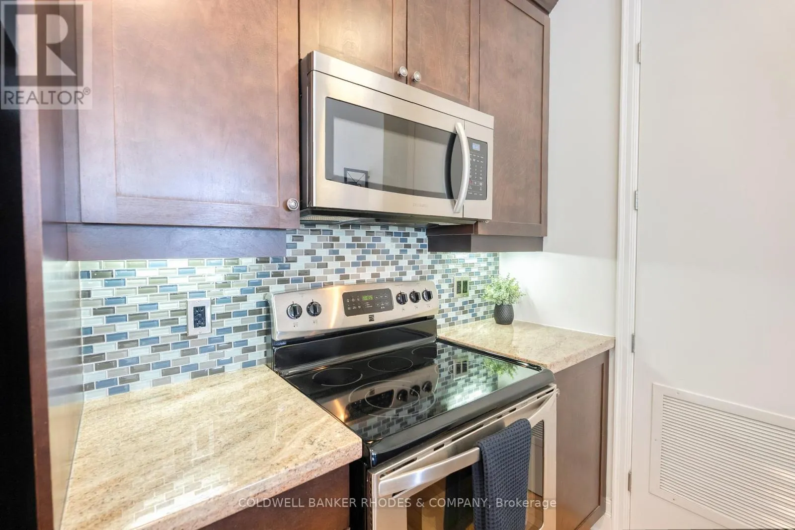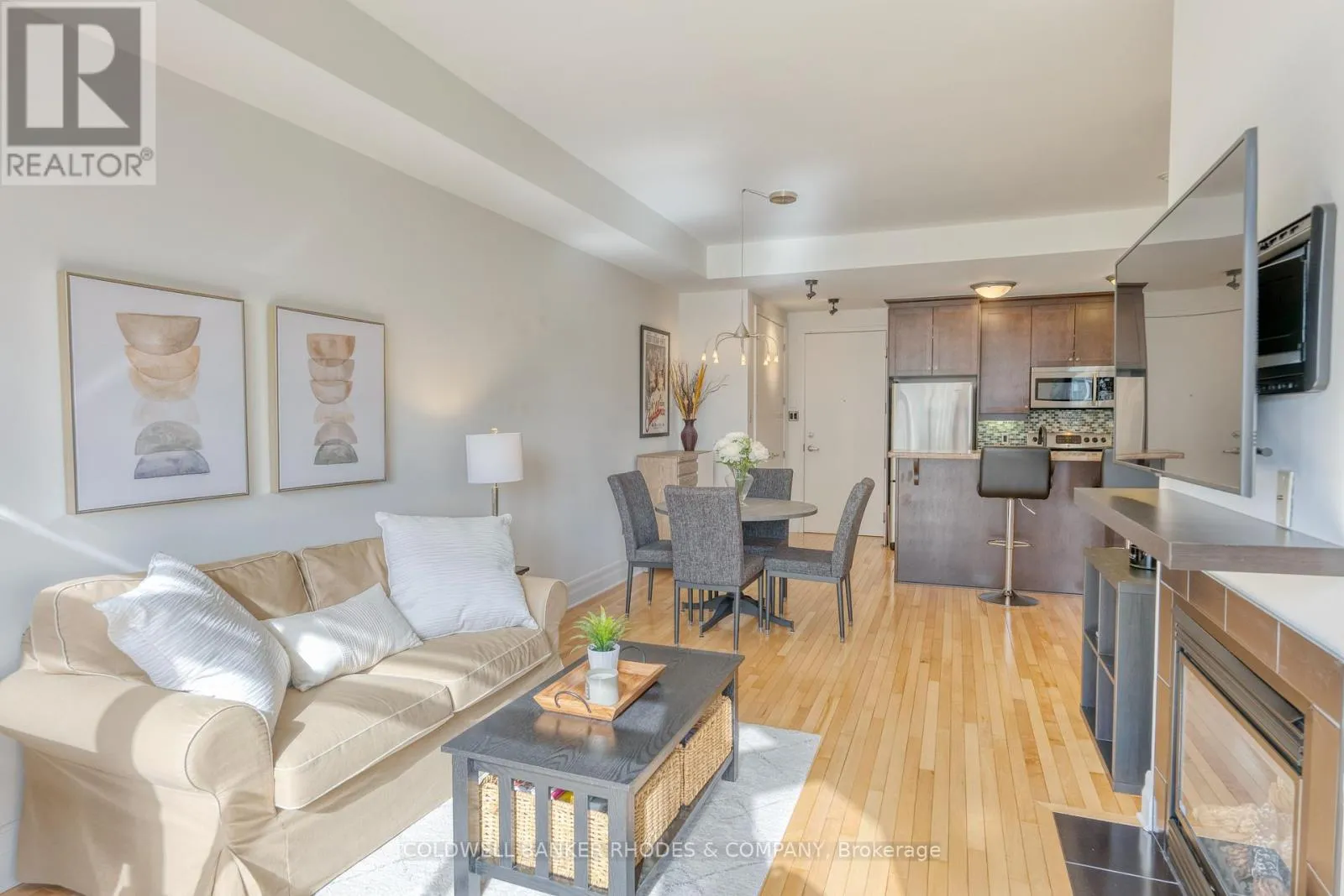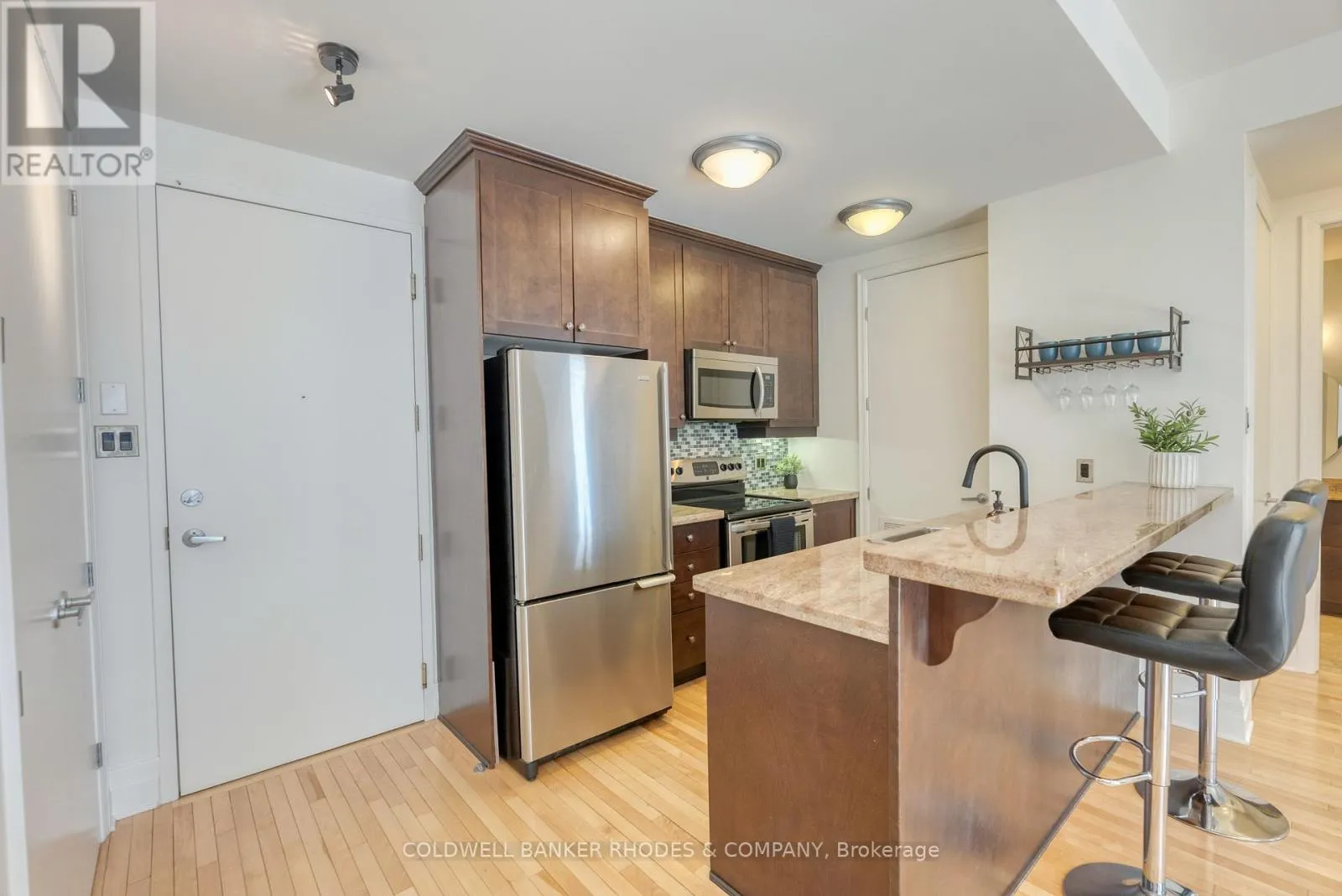 Cross Streets: Richmond Rd. ** Directions: Richmond Road to Berkley Ave. Domicile-built sunny open concept condo in prime Westboro location steps to all the desirable shops and restaurants this neighbourhood has to offer! Gourmet kitchen with 2 level sit-up bar, stainless steel appliances, granite countertops, tasteful backsplash & ample work space. Sit-up bar and adjacent eating area provides great dining options. Large wall of windows flood the living space with natural sunlight. Cozy gas fireplace sets the mood while providing warmth and comfort. Easy access from living room to spacious balcony with natural gas hookup, perfect for outdoor summer living. Conveniently located bright 4-piece bath. Primary bedroom with ample closet space and across from practical in-unit laundry. Proximity to parks, Ottawa River, Westboro Beach, pathways and more. Commuting made easy with easy access to transit, including future Kichi Zibi LRT station at the end of the street! (id:27476)