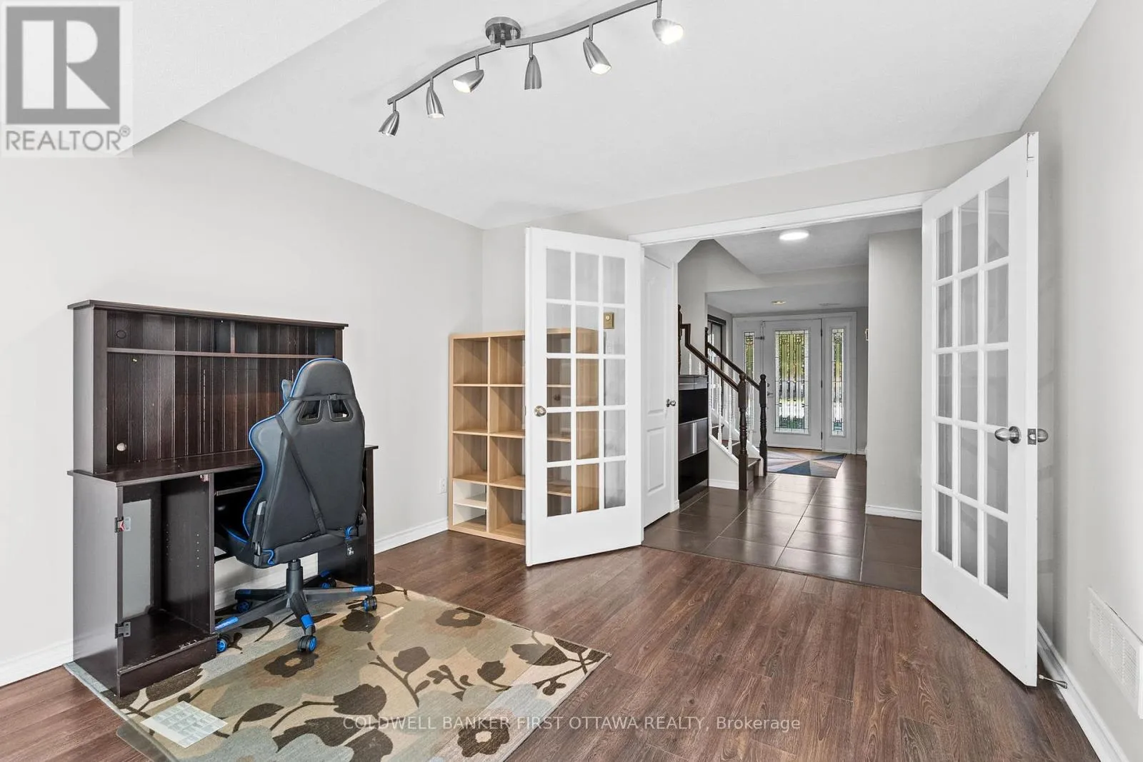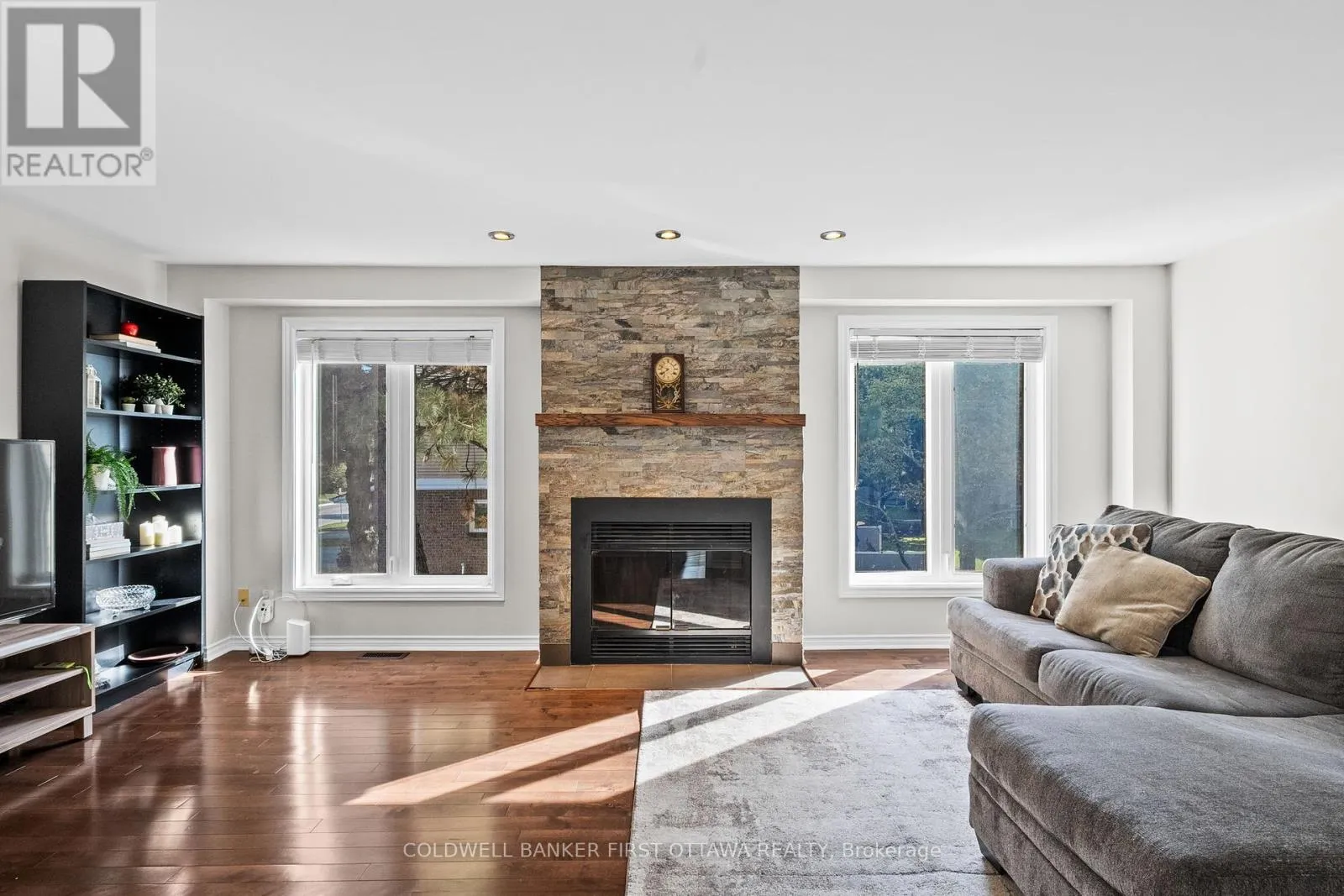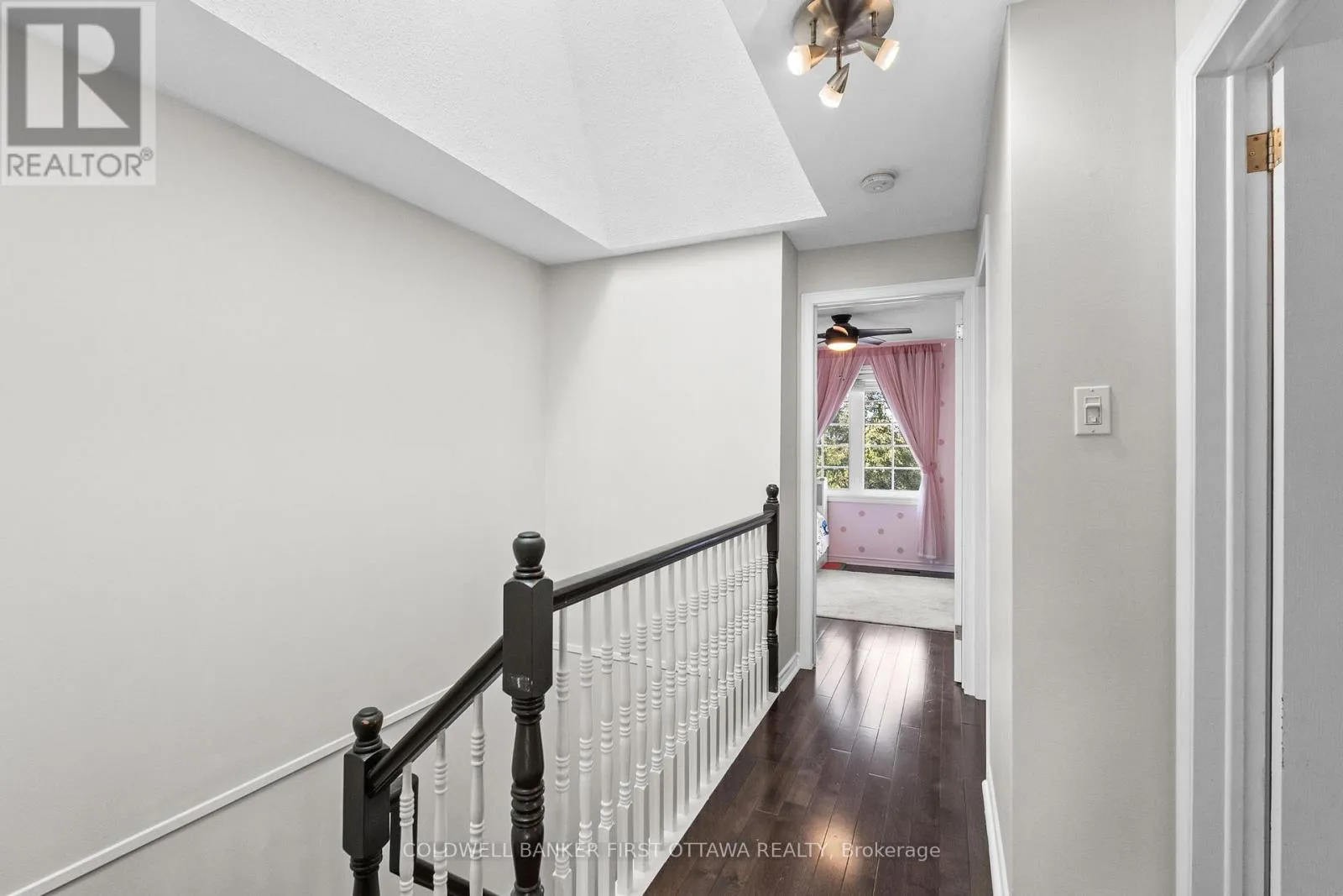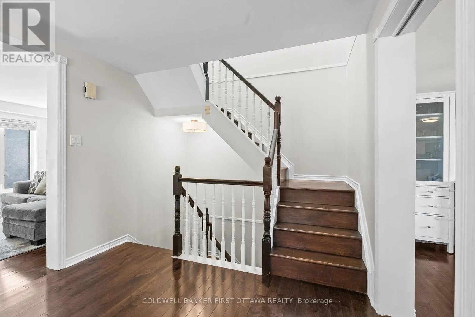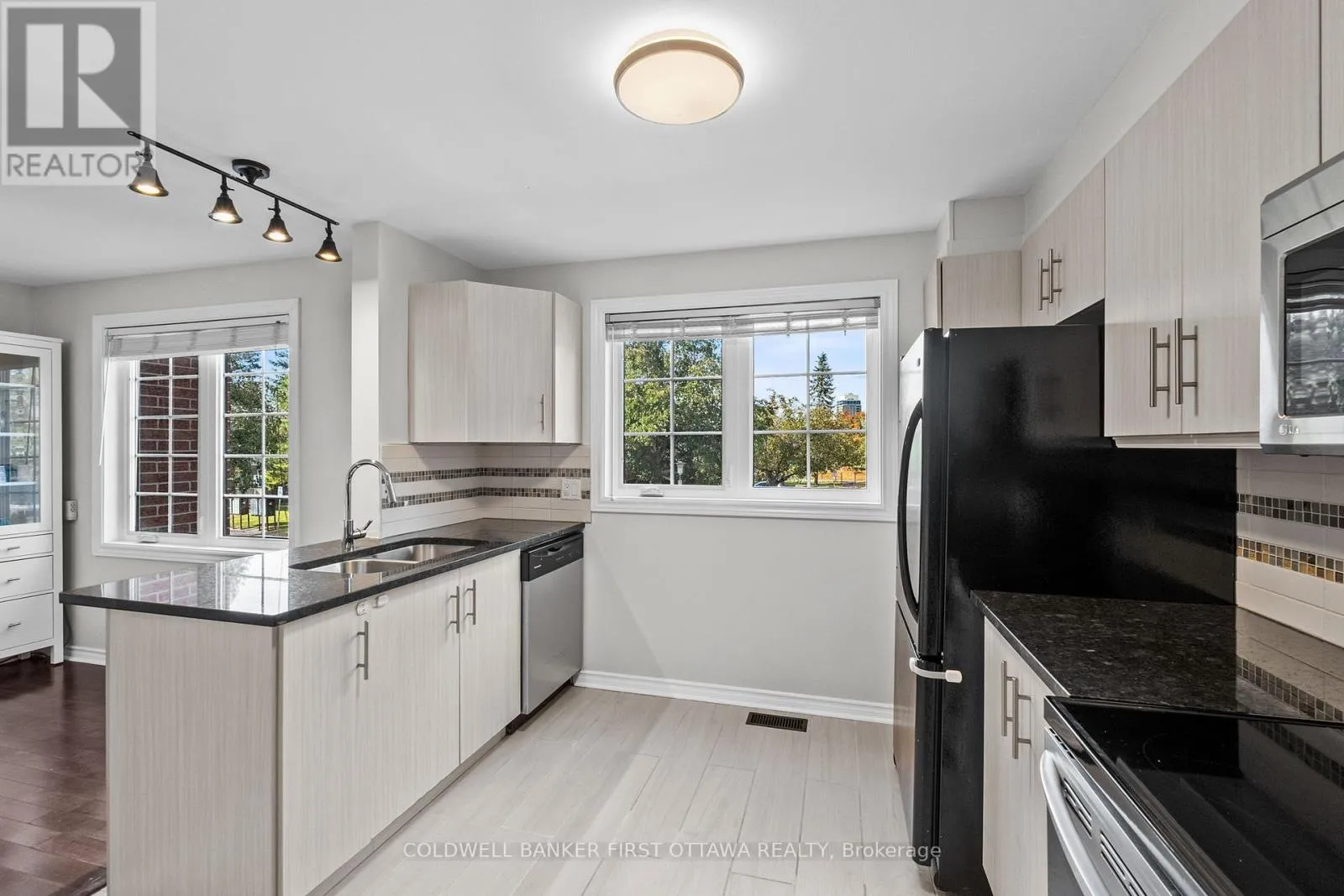 Cross Streets: Centrepointe Dr and Dalecroft Cr. ** Directions: Baseline Rd to Centrepointe Dr. To Dalecroft to Wrenwood or Baseline to Tallwood to Centrepointe to Dalecroft to Wrenwood. Welcome to this bright and beautifully maintained 3-bed, 3-bath condo townhouse located in the very central and always popular Centrepointe area! Tucked in on a quiet crescent, this END UNIT offers the perfect blend of comfort, convenience, and value, and is located close to Algonquin College, all the amenities of College Square, transit, and parks - including one just steps from the front door! The ground level has a big tiled foyer with an equally large closet, inside access to the garage, a convenient powder room and a den with french doors which works perfectly as a home office. You'll also find the furnace room with ample storage space and access to the tree covered yard space, perfect for entertaining and enjoying the seasons as they change. The hardwood stairs lead to the second level with a great open-concept living and dining area, also with hardwood floors, and filled with natural light from the big bay window. The updated eat-in kitchen features granite counters, SS appliances, convenient laundry closet, and a cozy breakfast nook with added storage. Upstairs, you'll find three spacious bedrooms (also with hwd floors - NO carpet anywhere here!), including a primary with a walk-in closet and 3pc ensuite with glass shower, and an updated full main bath. Not only will you enjoy the space and finishes offered inside, you'll love the location with everything you need just minutes away from your front step! (id:27476)