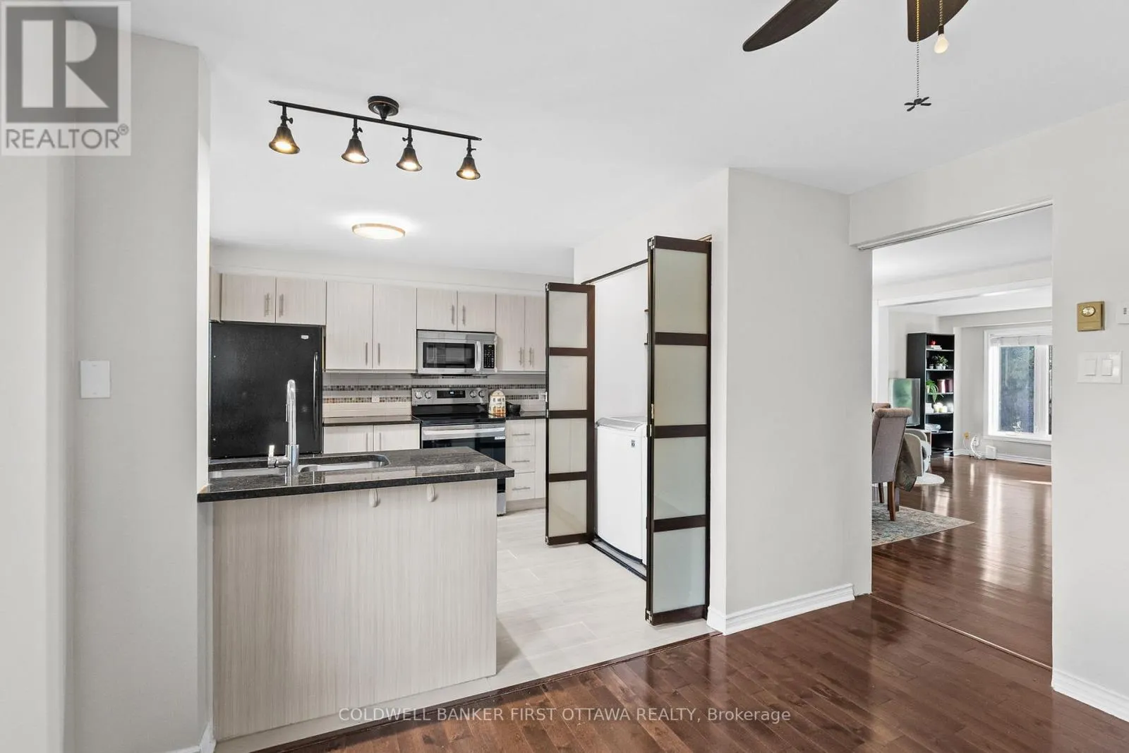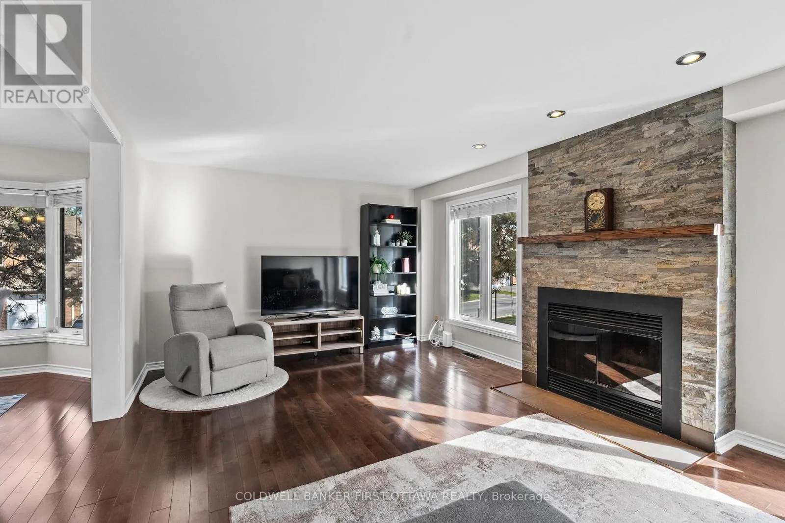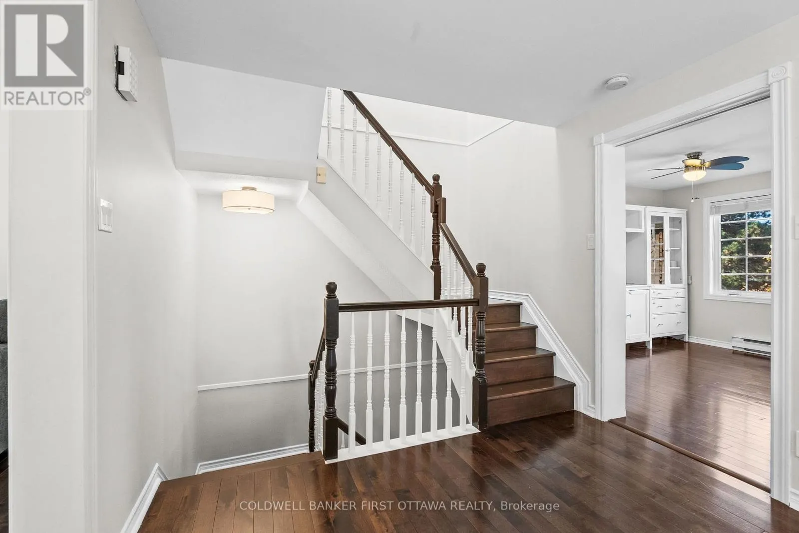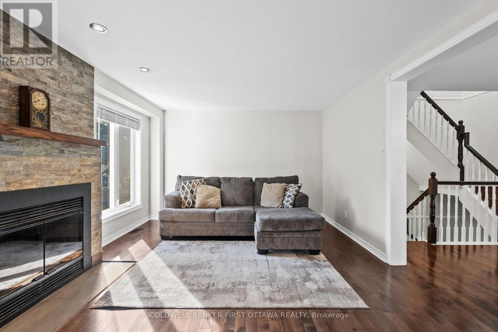 Cross Streets: Centrepointe Dr and Dalecroft Cr. ** Directions: Baseline Rd to Centrepointe Dr. To Dalecroft to Wrenwood or Baseline to Tallwood to Centrepointe to Dalecroft to Wrenwood. Welcome to this bright and beautifully maintained 3-bed, 3-bath condo townhouse located in the very central and always popular Centrepointe area! Tucked in on a quiet crescent, this END UNIT offers the perfect blend of comfort, convenience, and value, and is located close to Algonquin College, all the amenities of College Square, transit, and parks - including one just steps from the front door! The ground level has a big tiled foyer with an equally large closet, inside access to the garage, a convenient powder room and a den with french doors which works perfectly as a home office. You'll also find the furnace room with ample storage space and access to the tree covered yard space, perfect for entertaining and enjoying the seasons as they change. The hardwood stairs lead to the second level with a great open-concept living and dining area, also with hardwood floors, and filled with natural light from the big bay window. The updated eat-in kitchen features granite counters, SS appliances, convenient laundry closet, and a cozy breakfast nook with added storage. Upstairs, you'll find three spacious bedrooms (also with hwd floors - NO carpet anywhere here!), including a primary with a walk-in closet and 3pc ensuite with glass shower, and an updated full main bath. Not only will you enjoy the space and finishes offered inside, you'll love the location with everything you need just minutes away from your front step! (id:27476)