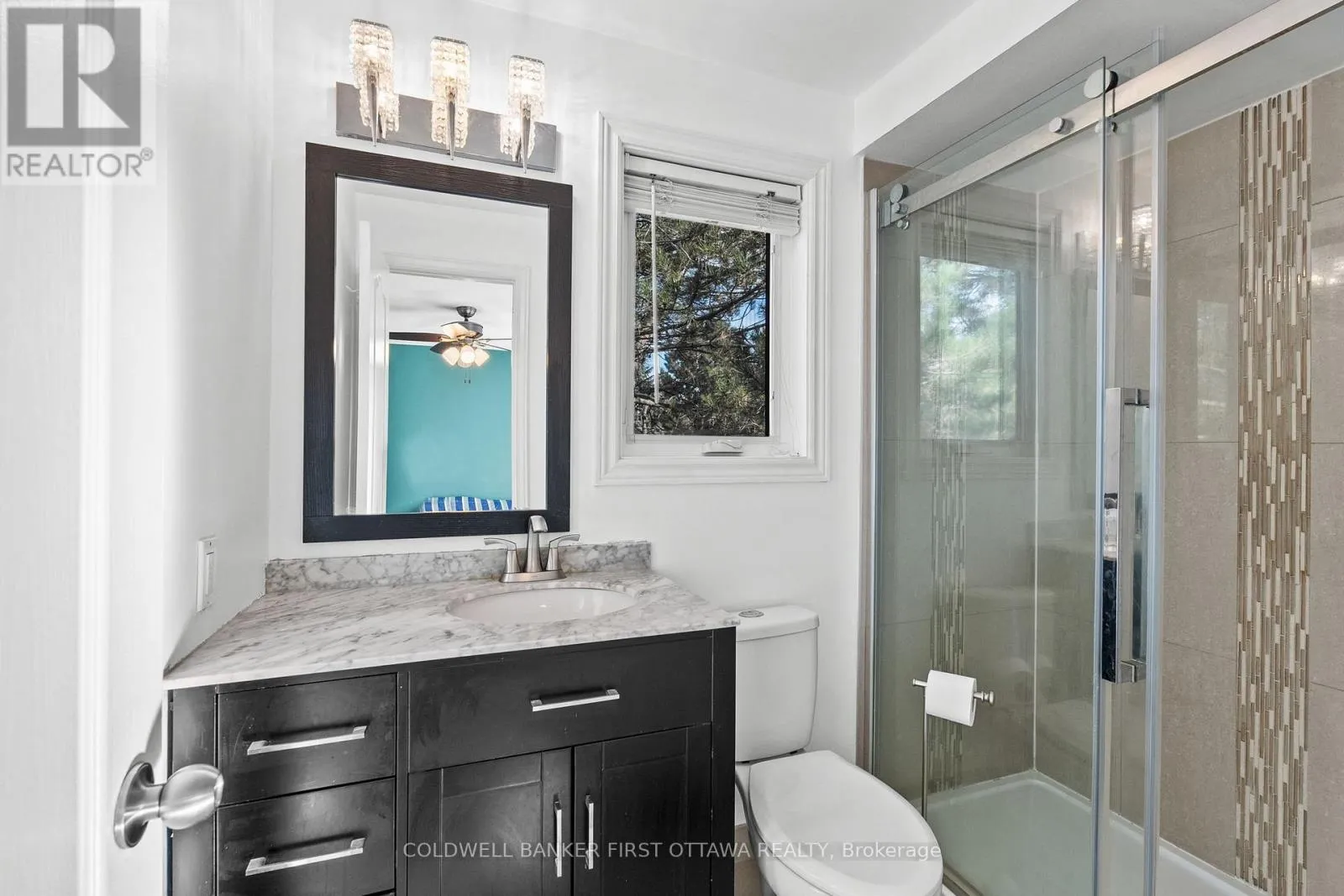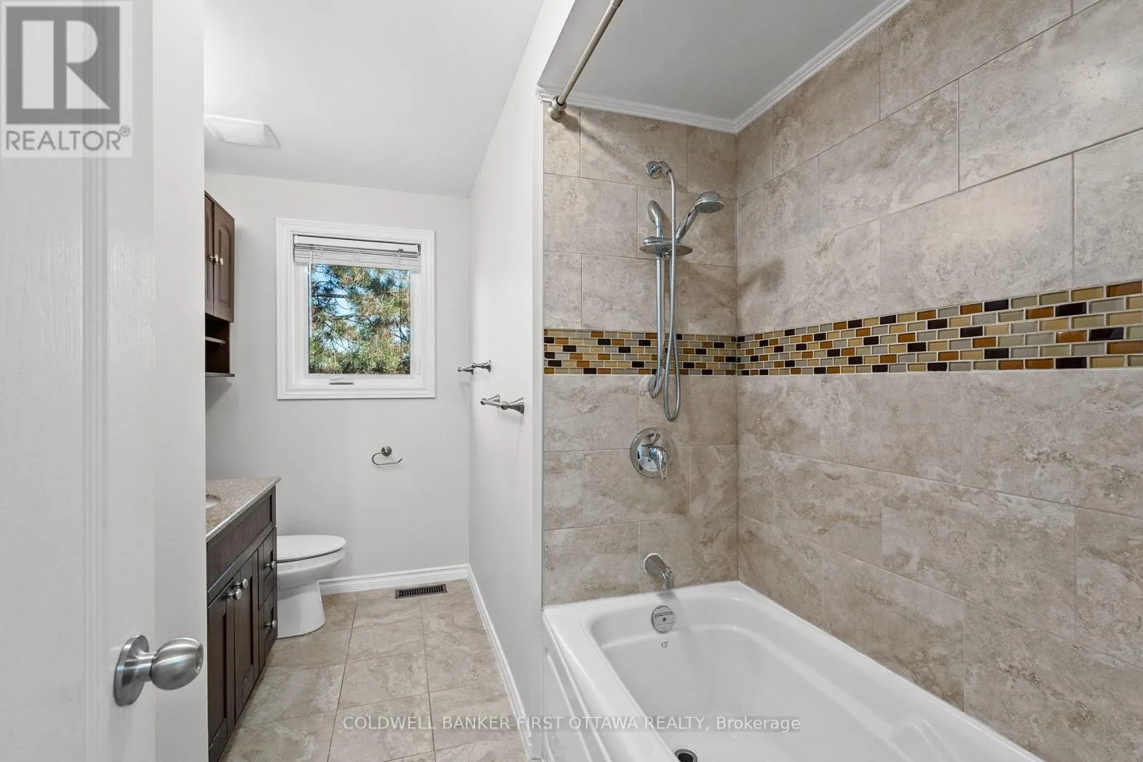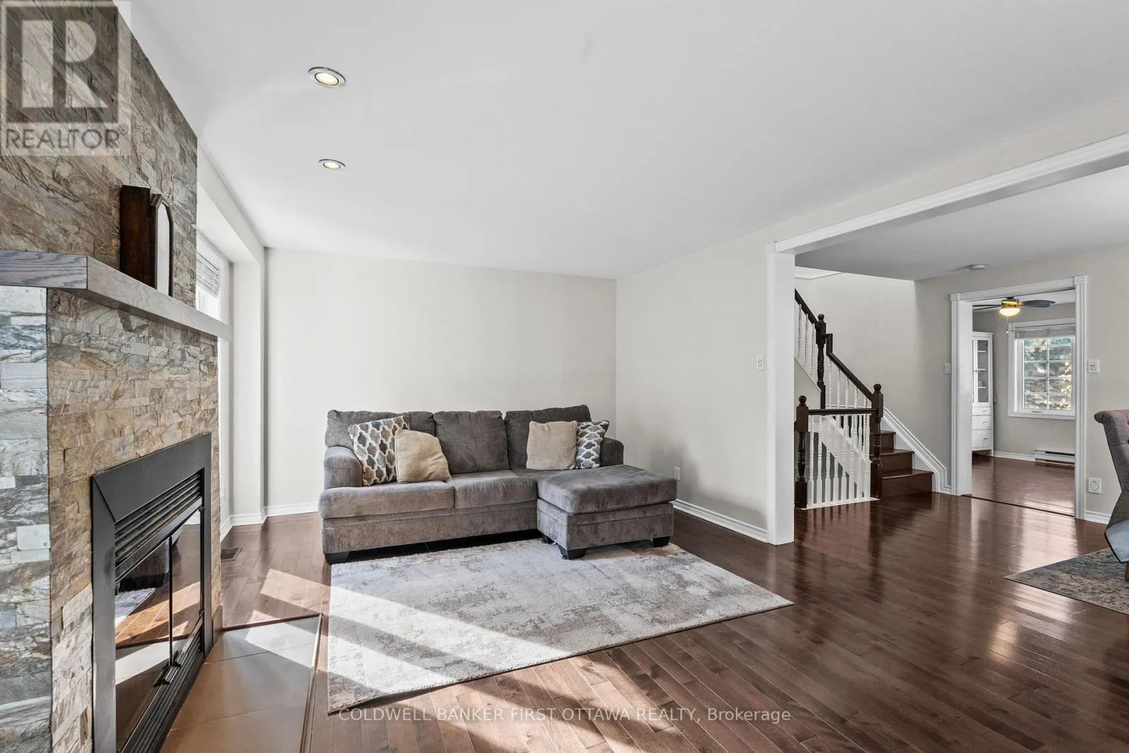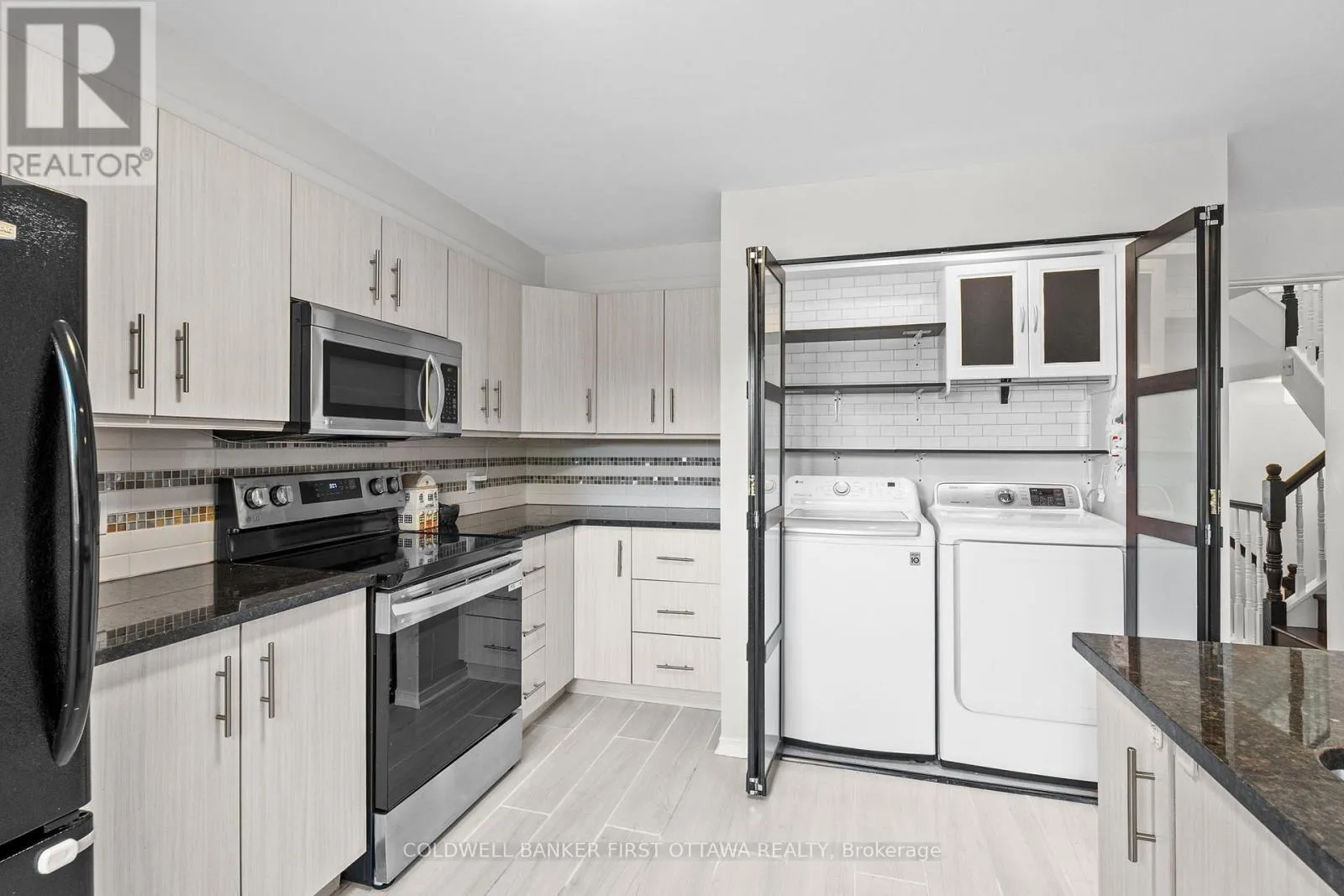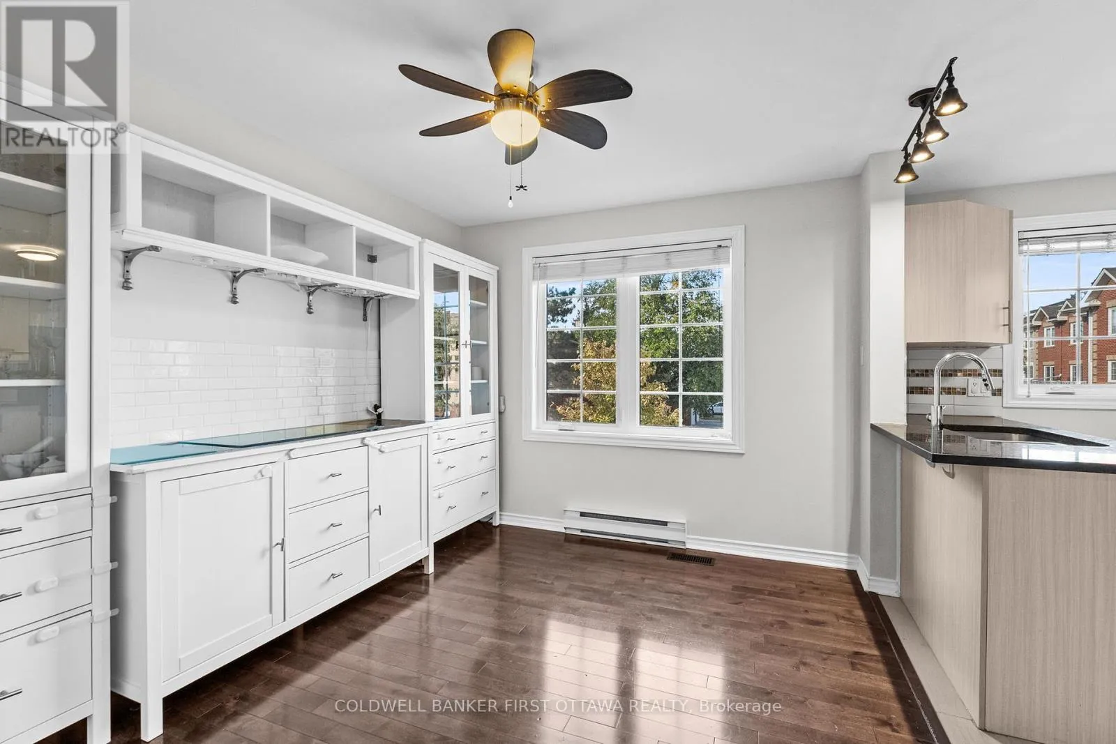 Cross Streets: Centrepointe Dr and Dalecroft Cr. ** Directions: Baseline Rd to Centrepointe Dr. To Dalecroft to Wrenwood or Baseline to Tallwood to Centrepointe to Dalecroft to Wrenwood. Welcome to this bright and beautifully maintained 3-bed, 3-bath condo townhouse located in the very central and always popular Centrepointe area! Tucked in on a quiet crescent, this END UNIT offers the perfect blend of comfort, convenience, and value, and is located close to Algonquin College, all the amenities of College Square, transit, and parks - including one just steps from the front door! The ground level has a big tiled foyer with an equally large closet, inside access to the garage, a convenient powder room and a den with french doors which works perfectly as a home office. You'll also find the furnace room with ample storage space and access to the tree covered yard space, perfect for entertaining and enjoying the seasons as they change. The hardwood stairs lead to the second level with a great open-concept living and dining area, also with hardwood floors, and filled with natural light from the big bay window. The updated eat-in kitchen features granite counters, SS appliances, convenient laundry closet, and a cozy breakfast nook with added storage. Upstairs, you'll find three spacious bedrooms (also with hwd floors - NO carpet anywhere here!), including a primary with a walk-in closet and 3pc ensuite with glass shower, and an updated full main bath. Not only will you enjoy the space and finishes offered inside, you'll love the location with everything you need just minutes away from your front step! (id:27476)