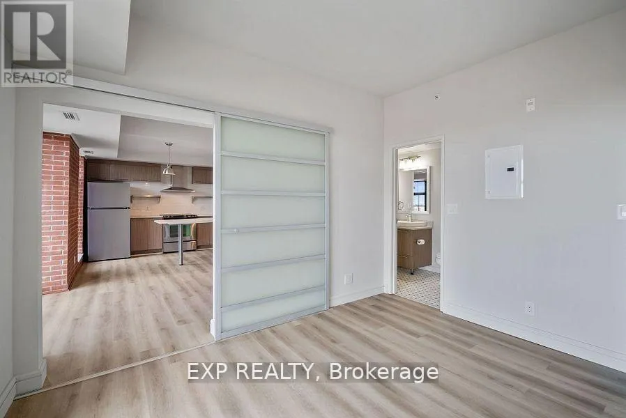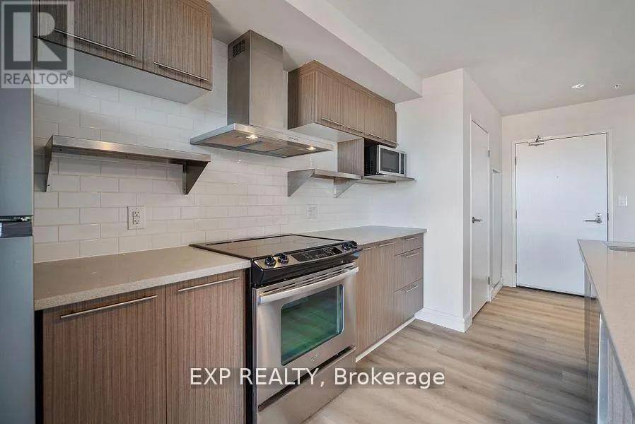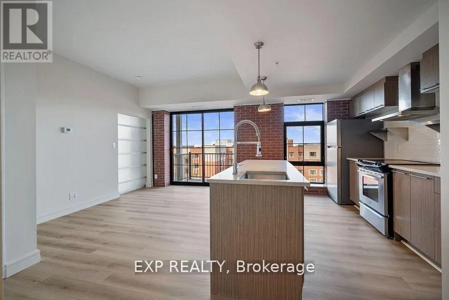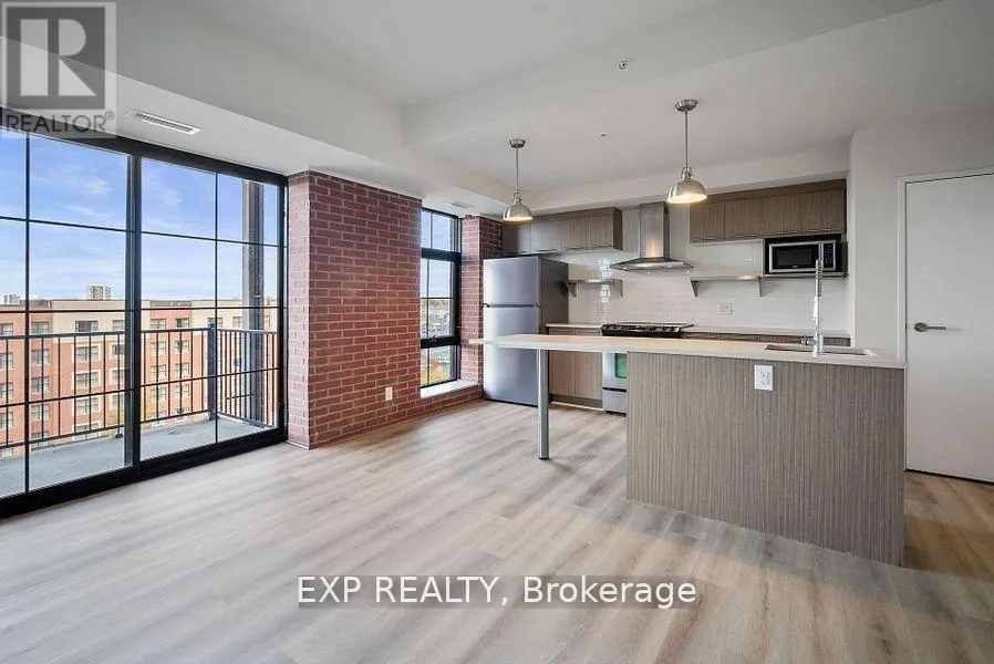 Cross Streets: Walkley / Anand. ** Directions: From Walkley turn into Anand Private. Modern 1-bed, 1-bath condo with parking and locker! This bright north-facing unit (689 sq. ft.) features brand-new flooring, new appliances, exposed brick, and sleek vessel sinks. Oversized windows bring in tons of natural light. Enjoy a stylish kitchen with quartz countertops, floating shelves, breakfast bar, and stainless steel appliances and a balcony. Top-tier amenities: full gym, pet spa, party/lounge room with WiFi, scenic walking paths & more. Underground parking + locker included. Steps to the new Walkley LRT station, close to Carleton U, Mooneys Bay, shopping, dining, and 417 access. Move-in ready. Urban, sleek, and unbeatable location. (id:27476)