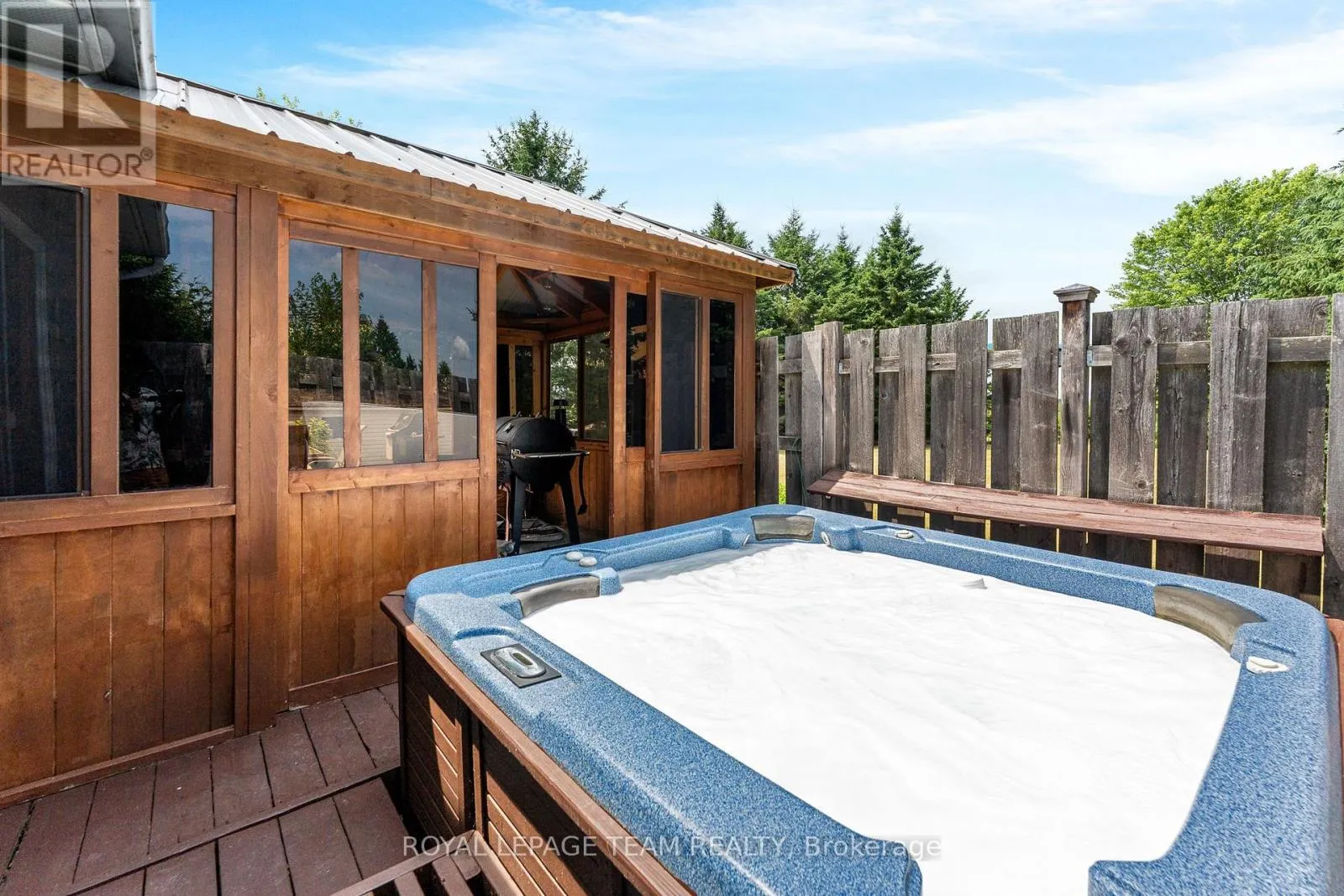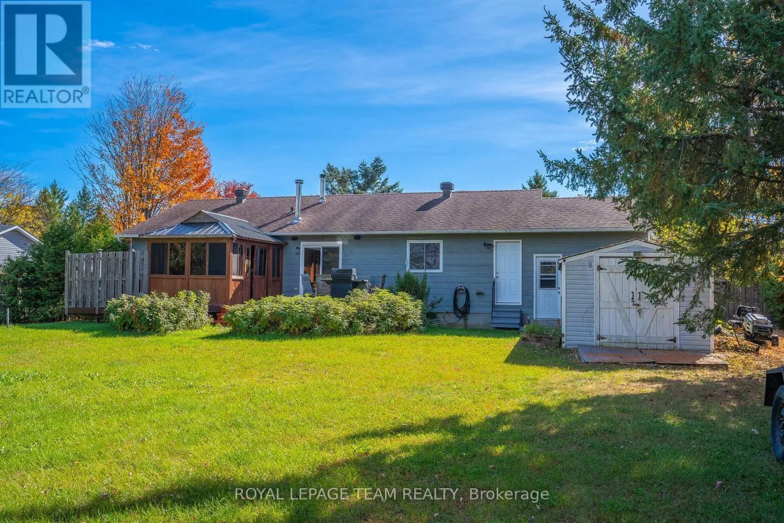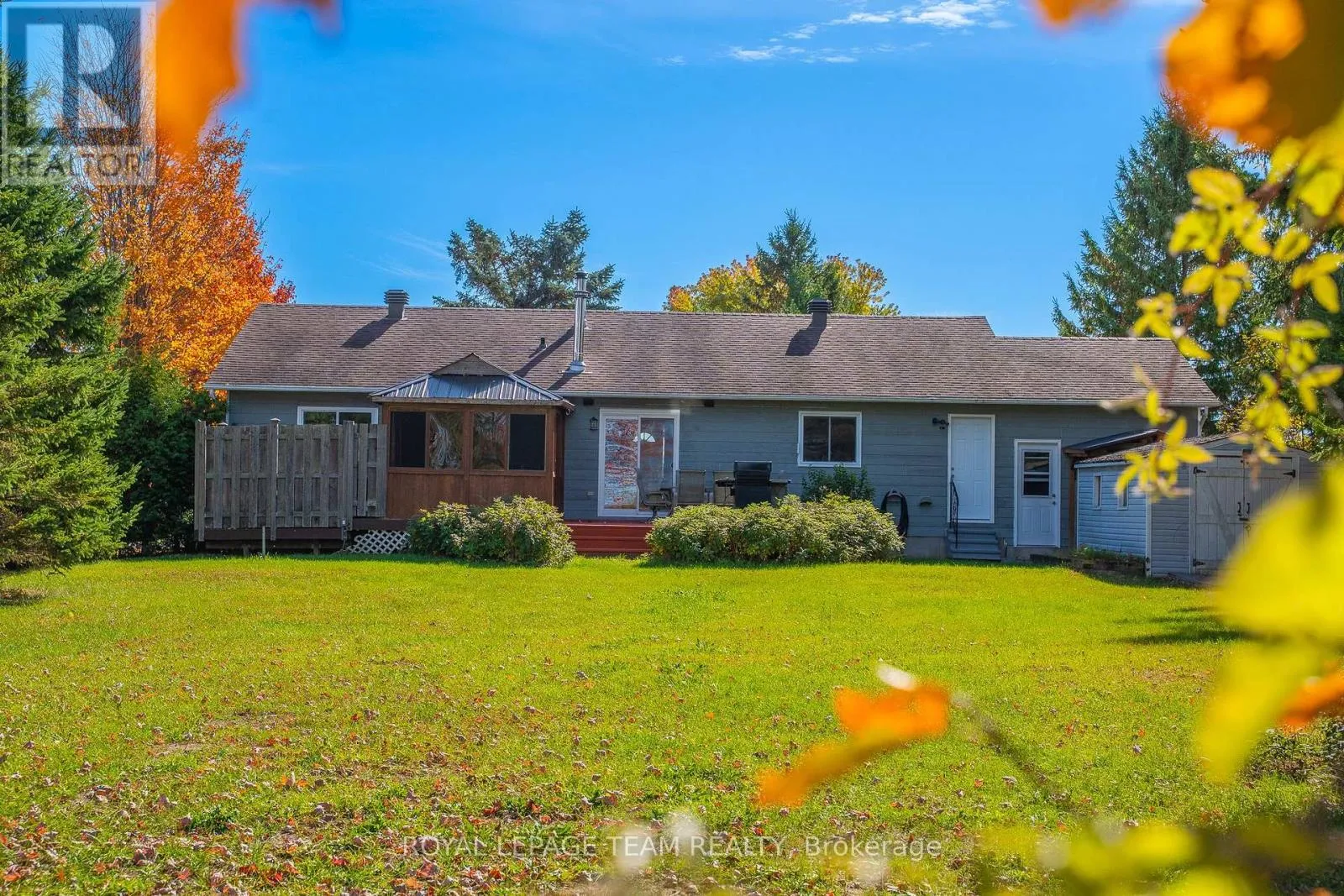 Cross Streets: Dunrobin Road. ** Directions: Thomas A. Dolan Pkwy, Dunrobin Rd, Porcupine Trail. This charming 3 bedroom, 2 full bath bungalow is the perfect blend of comfort, functionality, and easy living all on one level. Dunrobin offers quiet, country-style living with the convenience of a close commute to Kanata. Enjoy the peace and quiet of a large country sized lot while still having the comfort of being part of a neighbourhood. If you love boating, access to the Ottawa River is just minutes away . Nestled on a huge, beautifully landscaped yard, there's plenty of room to relax, entertain, or simply enjoy the outdoors. With bright, spacious rooms, thoughtful updates, and a welcoming layout, you'll feel right at home the moment you step inside. Step into the front living room - a bright and cheerful space where natural light pours in through a large picture window overlooking the front yard. Whether you're enjoying your morning coffee, curling up with a good book, or keeping an eye on the world outside, it's the kind of space that instantly makes you feel at home. The spacious eat in kitchen is the heart of the home - a great place to entertain family and friends. The primary bedroom offers a 3 piece ensuite and patio doors out to the hot tub.Beds 2&3 enjoy use of the the 4pc main bath. The spacious lower level offers excellent potential and awaits your personal touch - a great opportunity to customize it to your liking. The private backyard is a great spot to relax with a glass of wine! Furnace (2021), Roof (2009), New windows, sliding door and door to backyard (2025). Freshly painted throughout (2025). (id:27476)