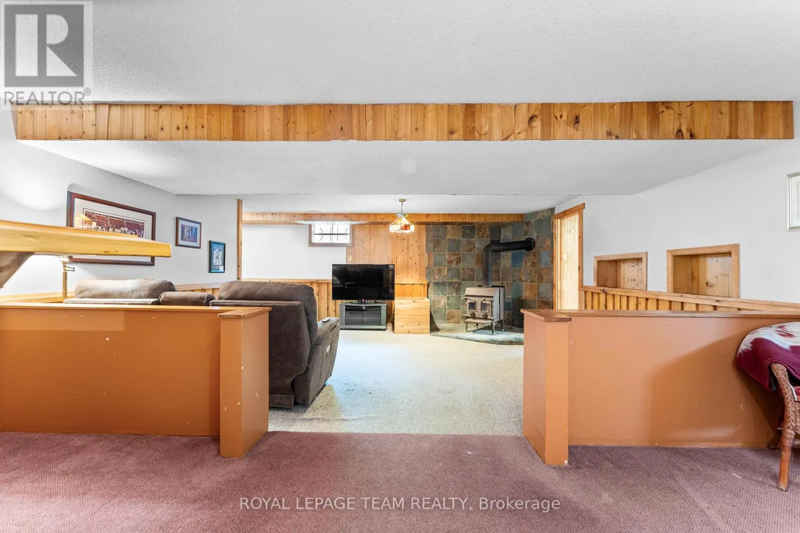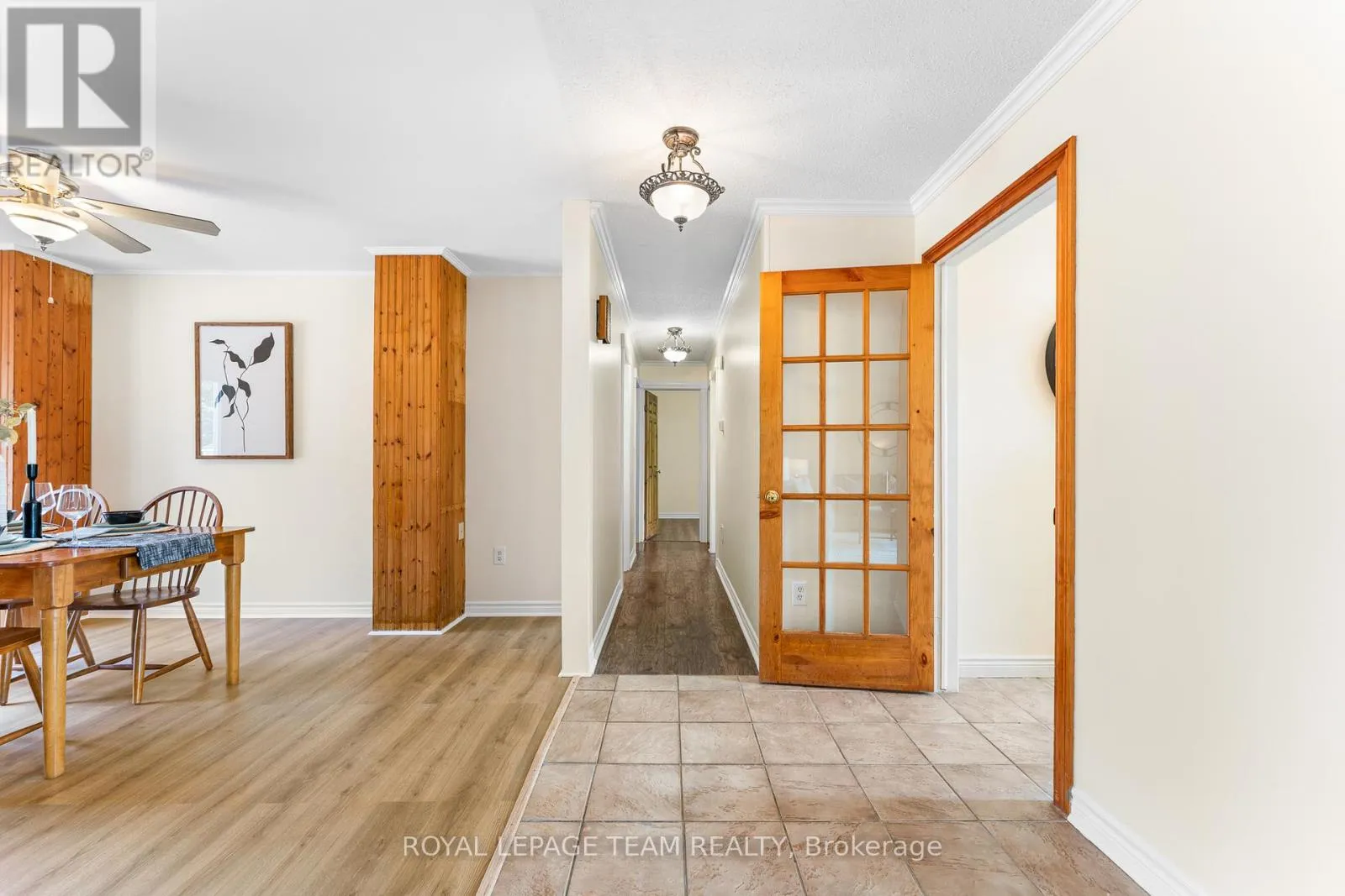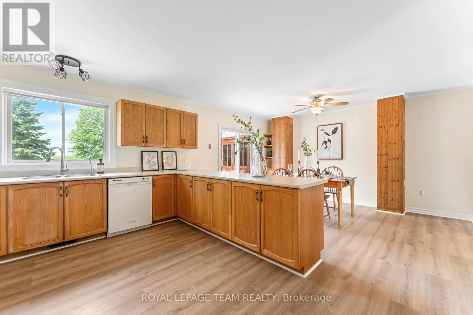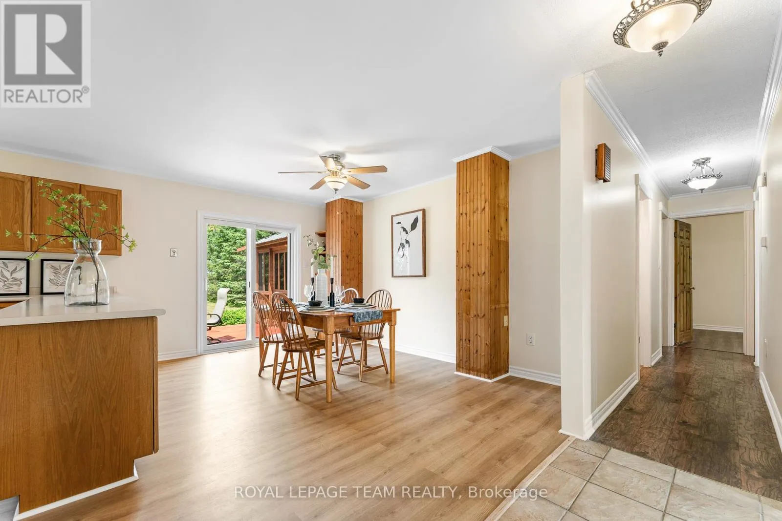 Cross Streets: Dunrobin Road. ** Directions: Thomas A. Dolan Pkwy, Dunrobin Rd, Porcupine Trail. This charming 3 bedroom, 2 full bath bungalow is the perfect blend of comfort, functionality, and easy living all on one level. Dunrobin offers quiet, country-style living with the convenience of a close commute to Kanata. Enjoy the peace and quiet of a large country sized lot while still having the comfort of being part of a neighbourhood. If you love boating, access to the Ottawa River is just minutes away . Nestled on a huge, beautifully landscaped yard, there's plenty of room to relax, entertain, or simply enjoy the outdoors. With bright, spacious rooms, thoughtful updates, and a welcoming layout, you'll feel right at home the moment you step inside. Step into the front living room - a bright and cheerful space where natural light pours in through a large picture window overlooking the front yard. Whether you're enjoying your morning coffee, curling up with a good book, or keeping an eye on the world outside, it's the kind of space that instantly makes you feel at home. The spacious eat in kitchen is the heart of the home - a great place to entertain family and friends. The primary bedroom offers a 3 piece ensuite and patio doors out to the hot tub.Beds 2&3 enjoy use of the the 4pc main bath. The spacious lower level offers excellent potential and awaits your personal touch - a great opportunity to customize it to your liking. The private backyard is a great spot to relax with a glass of wine! Furnace (2021), Roof (2009), New windows, sliding door and door to backyard (2025). Freshly painted throughout (2025). (id:27476)