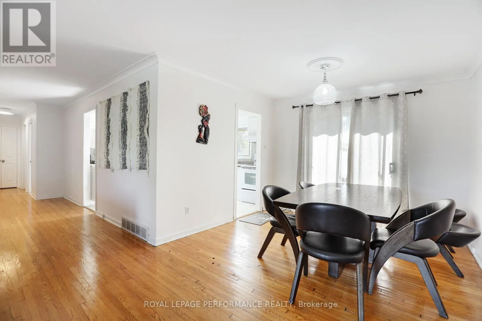 Cross Streets: Woodroffe Avenue and Meadowlands Drive. ** Directions: From Highway 417, south onto Woodroffe, east on Meadowlands. Welcome to this beautiful, move-in-ready 5 bedrooms and 2 bathrooms bungalow. Situated in the coveted Crestview/Meadowlands area, walking distance to Algonquin College, this home offers comfort and convenience. Upon entering, you will find an open living area with a large window, hardwood floors throughout and a full kitchen equipped with an oven, stovetop, dishwasher, fridge, washer and dryer. The dining room opens to a private balcony, overlooking the backyard. The large, fenced backyard is directly accessible from the kitchen and makes it perfect for entertaining or relaxing. The bedrooms are spacious with built-in closets and large windows for natural sunlight. Easy access to public transit, including the LRT, make it a very desirable accommodation for families and students alike. With schools, grocery, retail shopping and Costco near by, this place will not disappoint you and surely won't last long. There is ample parking for occupants and easy street parking for their guests. Deposit required upon acceptance of an offer : $7900 (id:27476)