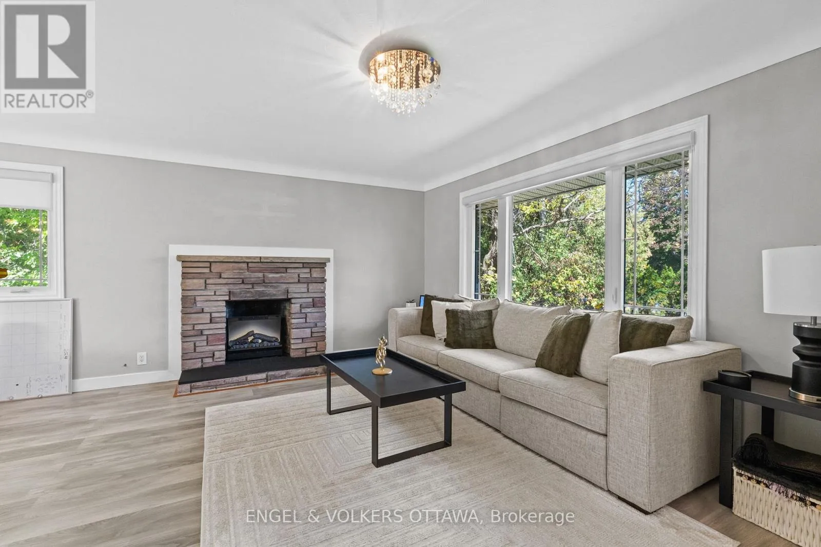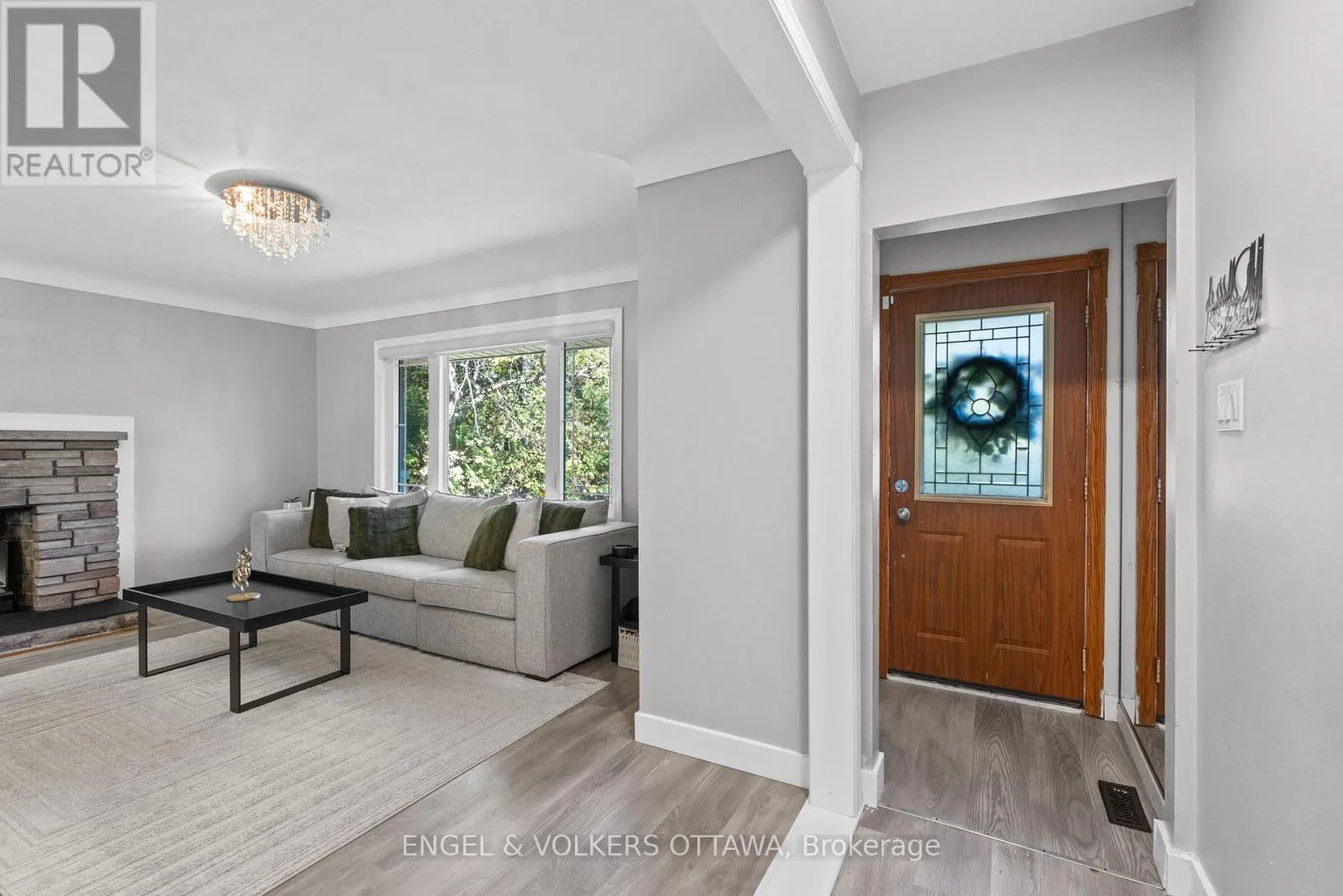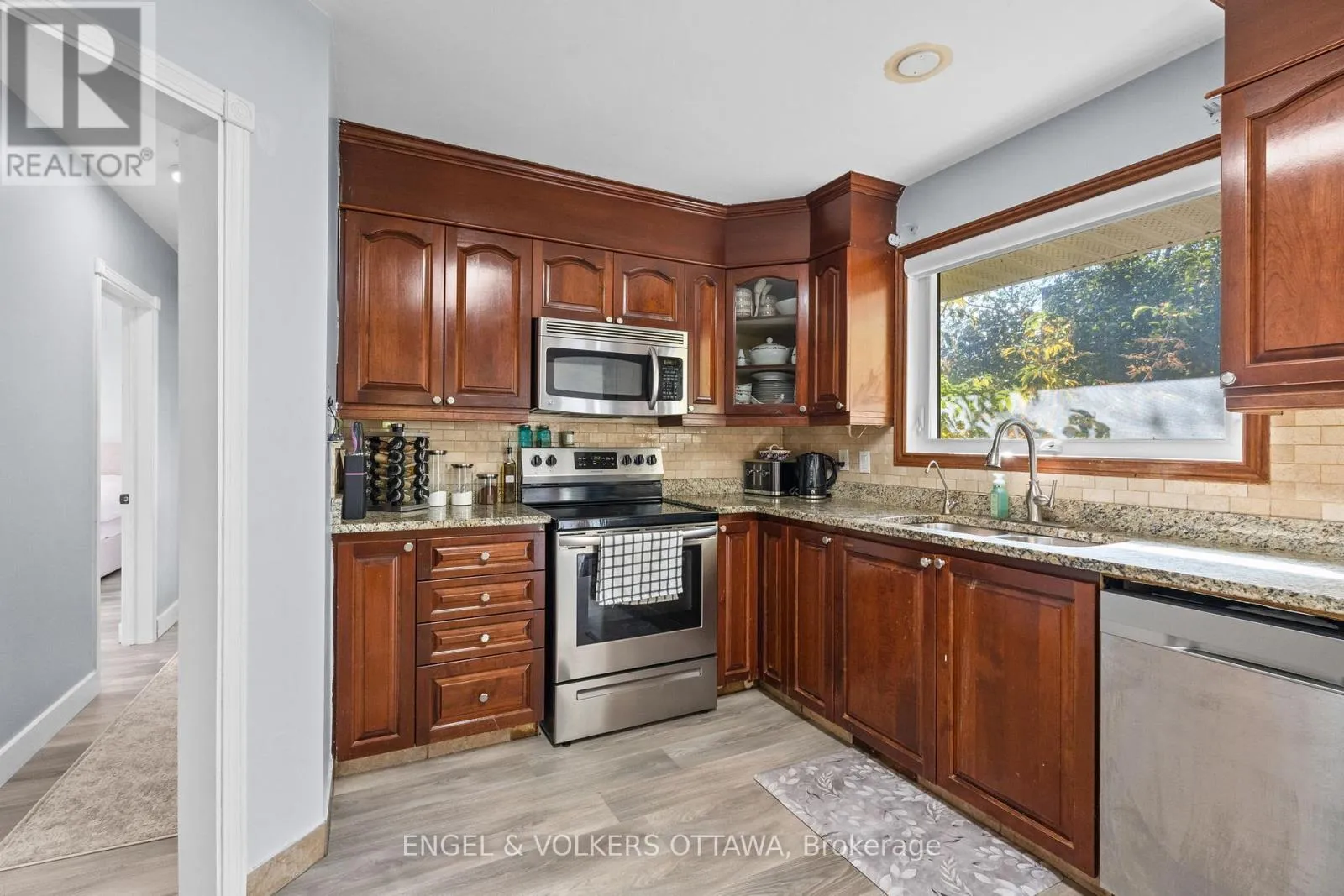 Cross Streets: Cordova St & Epworth Ave. ** Directions: From Baseline Rd, Turn onto Cordova St. Beautifully updated and filled with natural light, 43 Cordova Street is an inviting bungalow that sits on a tree-lined street surrounded by mature greenery. The main level opens with a bright and airy living room anchored by a stone-clad fireplace and a large picture window that fills the space with sunlight. The adjoining dining area features a stylish modern chandelier and an architectural wall opening that enhances the connection between rooms, perfect for gatherings or family meals. The renovated kitchen combines rich cherry-toned cabinetry with granite countertops, stainless steel appliances, and a wide window overlooking the backyard- a functional and elegant space for cooking and entertaining. Two comfortable bedrooms, including a spacious primary with mirrored closets, while the updated full bathroom features a tiled tub/shower surround, crisp finishes, and bright vanity lighting for a polished look. The fully finished lower level has a generous recreation room ideal for a home theatre, playroom, or fitness area. A full bathroom with a walk-in shower and contemporary fixtures, and a dedicated laundry area with front-loading appliances and a utility sink enhance the practicality of this level. Outside, a raised wooden deck provides the perfect space for barbecues, outdoor dining, or relaxing in the sunshine, with plenty of green space for gardening or recreation. Located in a peaceful, family-friendly pocket of Nepean, enjoy proximity to shopping and dining along Merivale and Baseline Roads, while also being near parks and excellent schools. Quick access to public transit and major routes makes this the ideal home for those seeking a well-rounded lifestyle! (id:27476)