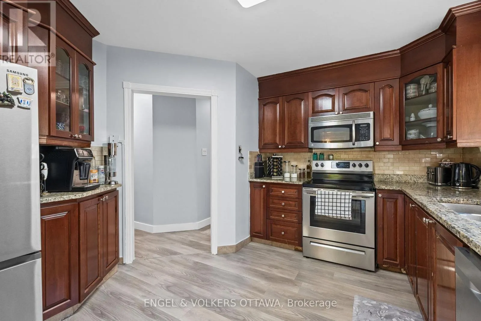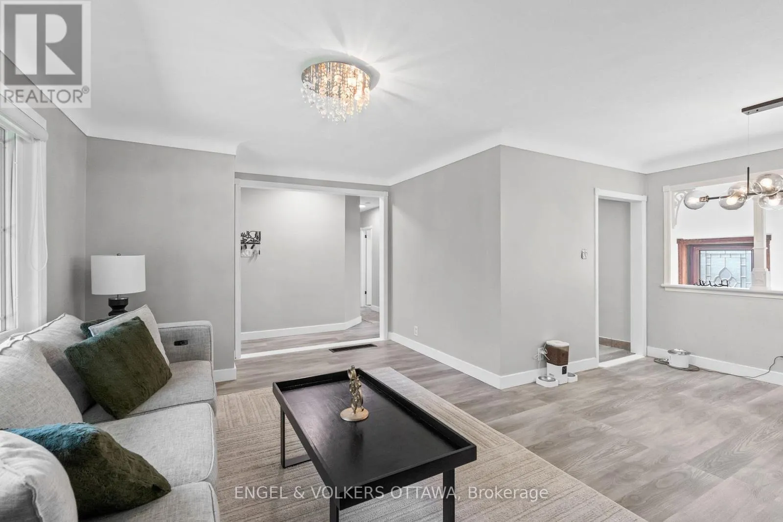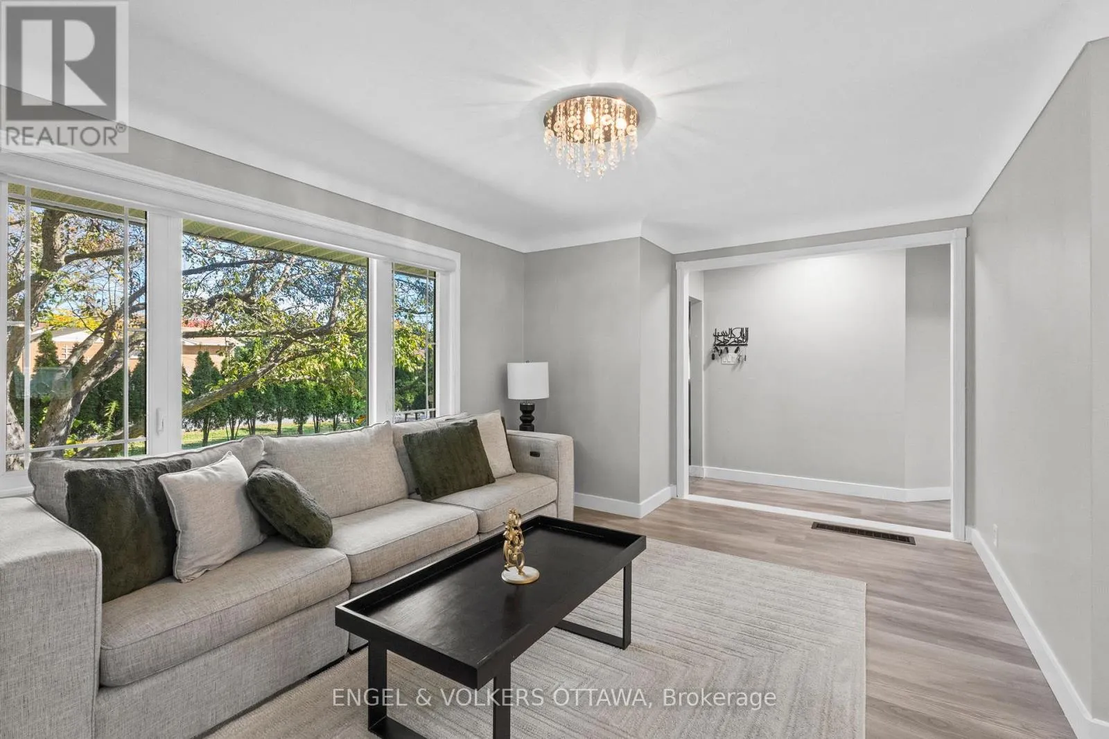 Cross Streets: Cordova St & Epworth Ave. ** Directions: From Baseline Rd, Turn onto Cordova St. Beautifully updated and filled with natural light, 43 Cordova Street is an inviting bungalow that sits on a tree-lined street surrounded by mature greenery. The main level opens with a bright and airy living room anchored by a stone-clad fireplace and a large picture window that fills the space with sunlight. The adjoining dining area features a stylish modern chandelier and an architectural wall opening that enhances the connection between rooms, perfect for gatherings or family meals. The renovated kitchen combines rich cherry-toned cabinetry with granite countertops, stainless steel appliances, and a wide window overlooking the backyard- a functional and elegant space for cooking and entertaining. Two comfortable bedrooms, including a spacious primary with mirrored closets, while the updated full bathroom features a tiled tub/shower surround, crisp finishes, and bright vanity lighting for a polished look. The fully finished lower level has a generous recreation room ideal for a home theatre, playroom, or fitness area. A full bathroom with a walk-in shower and contemporary fixtures, and a dedicated laundry area with front-loading appliances and a utility sink enhance the practicality of this level. Outside, a raised wooden deck provides the perfect space for barbecues, outdoor dining, or relaxing in the sunshine, with plenty of green space for gardening or recreation. Located in a peaceful, family-friendly pocket of Nepean, enjoy proximity to shopping and dining along Merivale and Baseline Roads, while also being near parks and excellent schools. Quick access to public transit and major routes makes this the ideal home for those seeking a well-rounded lifestyle! (id:27476)