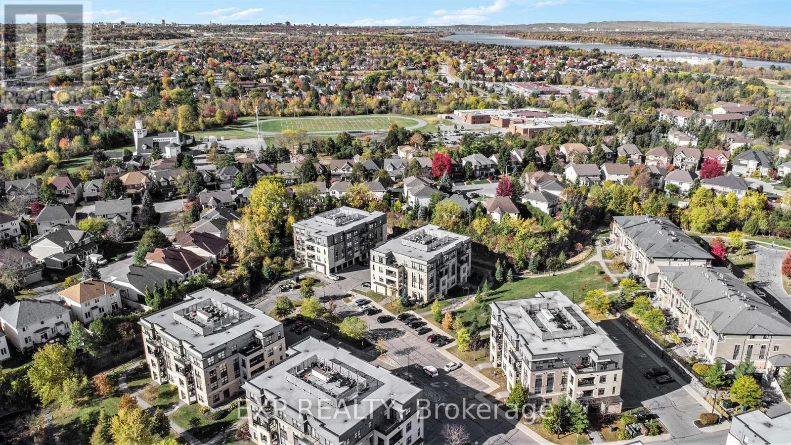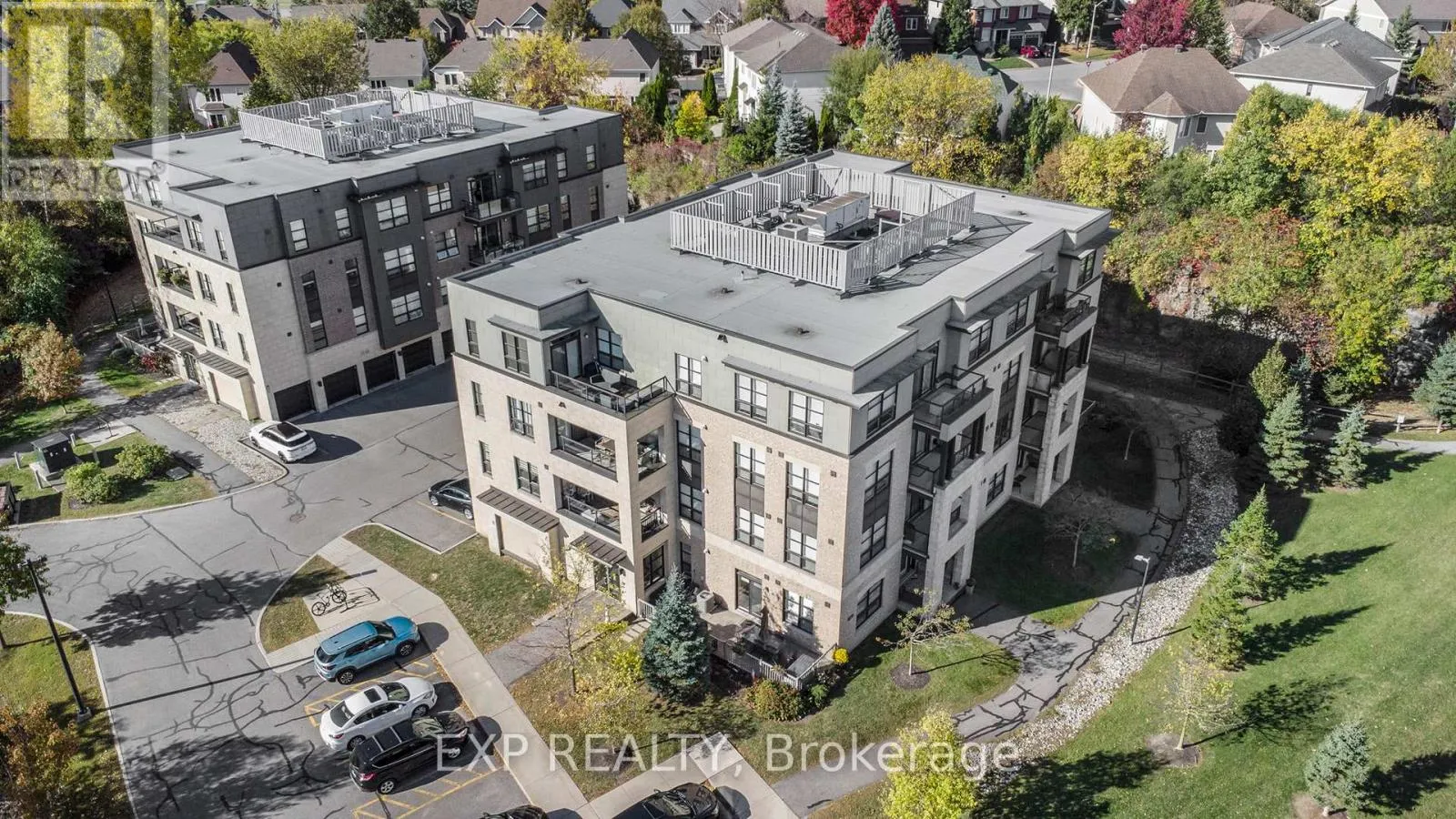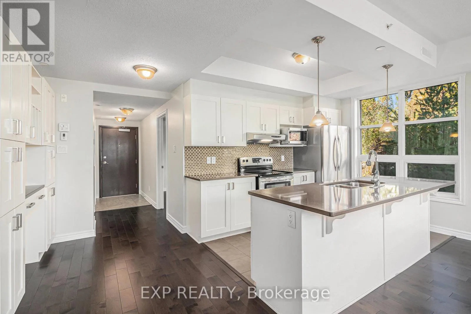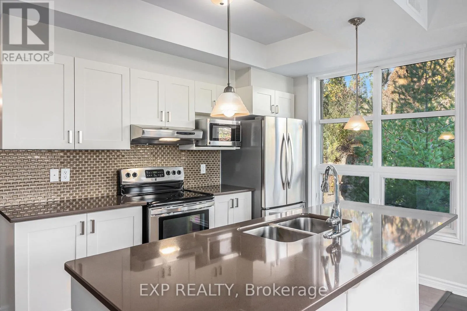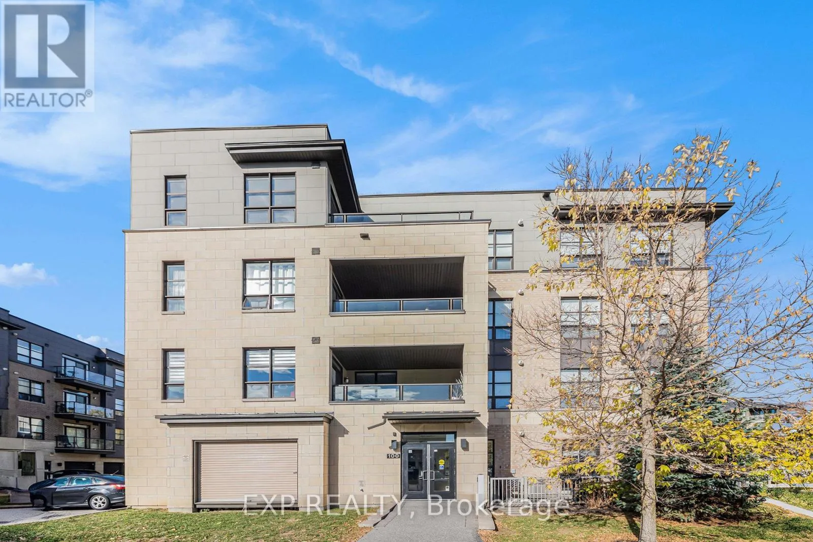 Cross Streets: Titanium/Montblanc. ** Directions: Jeanne D'Arc to Bilberry to Titanium to Montblanc. Experience premium single-level living in sought-after Quarry Glen! This turnkey 2 bedroom + den, 2 bath condo (with 2 parking spots!) combines style, comfort, and convenience in an unbeatable location and view - just a 3-minute drive to the O-Train station and offering quick access to Highway 174. The open-concept layout features a bright, welcoming living area that extends to a covered private balcony, perfect for relaxing outdoors. The kitchen boasts quartz countertops, backsplash, ample cabinetry, stainless steel appliances and an island with breakfast bar - ideal for both everyday living and entertaining. The spacious primary bedroom includes a walk-in closet and a 3 pc ensuite. A second bedroom and a versatile den provide flexible space for guests or a home office, complemented by a 4pc bathroom. Additional highlights include in-suite laundry, two parking spaces (1 in shared garage and 1 surfaced) and hardwood and ceramic flooring throughout - no carpet! Added bonus of an exclusive storage space in shared garage. Located in a building with elevator access, this condo offers easy maintenance free living. Enjoy nearby walking and cycling trails, parks, and all major amenities - Place d'Orléans Mall, Shenkman Arts Centre, restaurants, transit and more. Immediate occupancy available - move in and enjoy urban convenience! (id:27476)