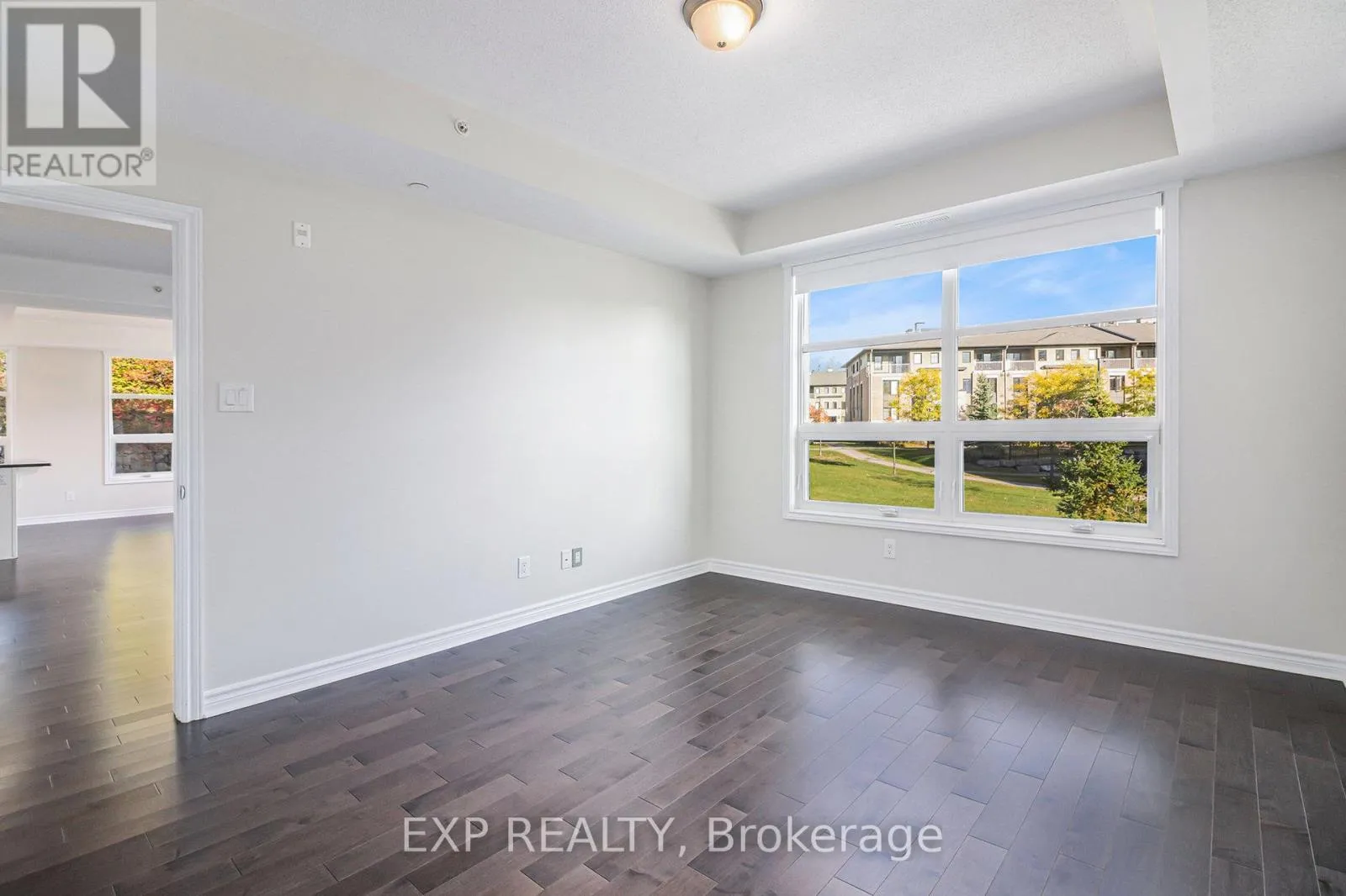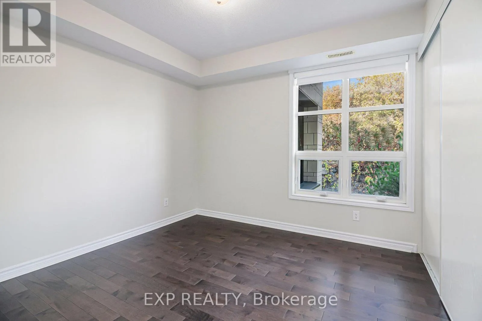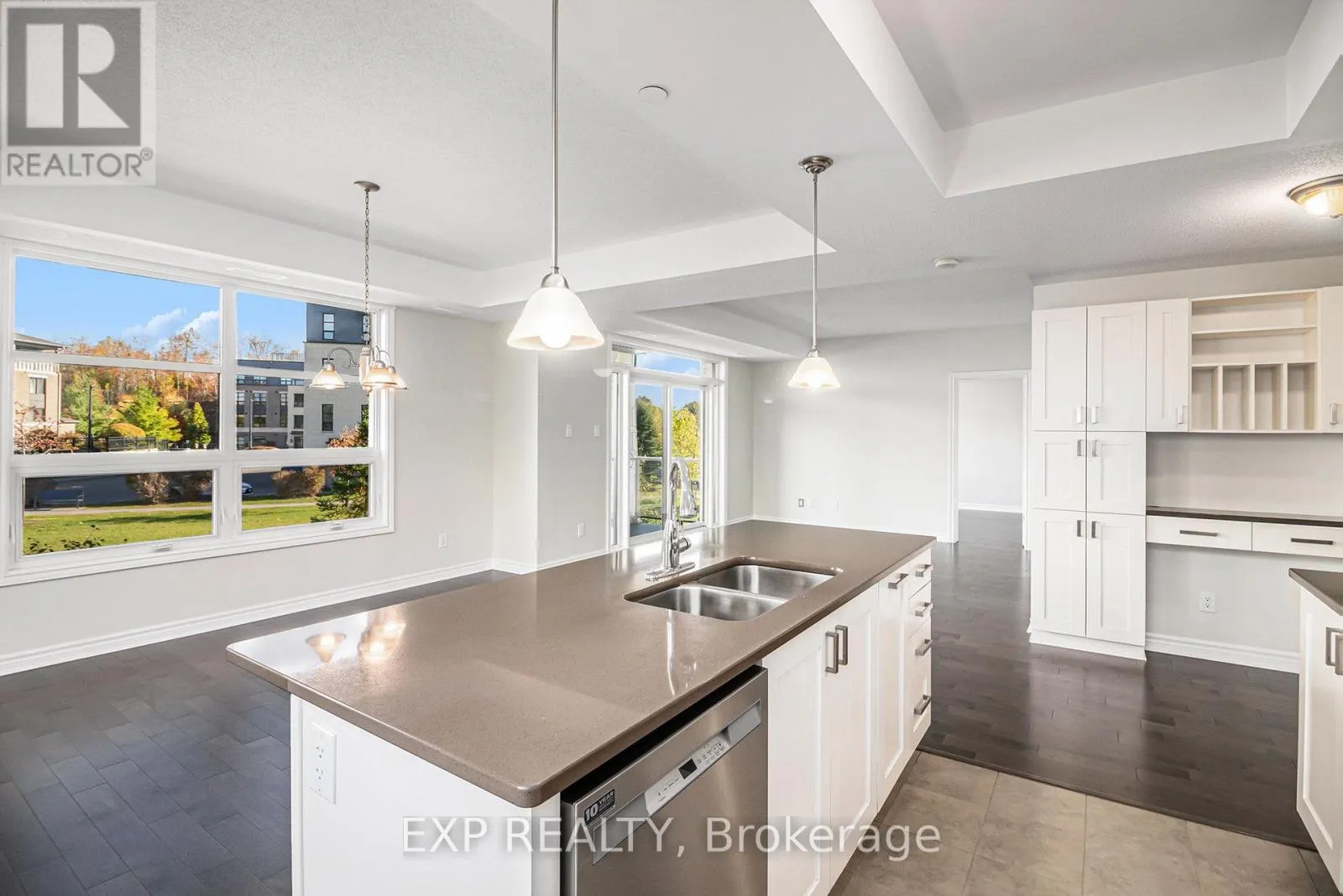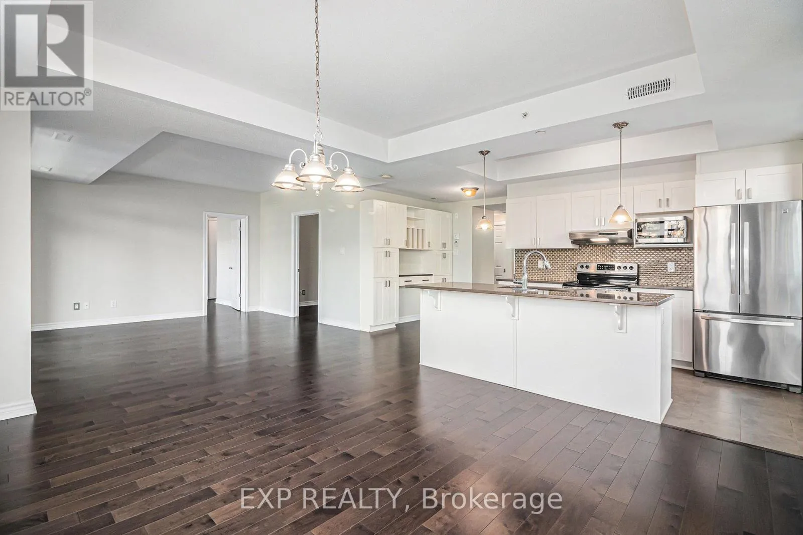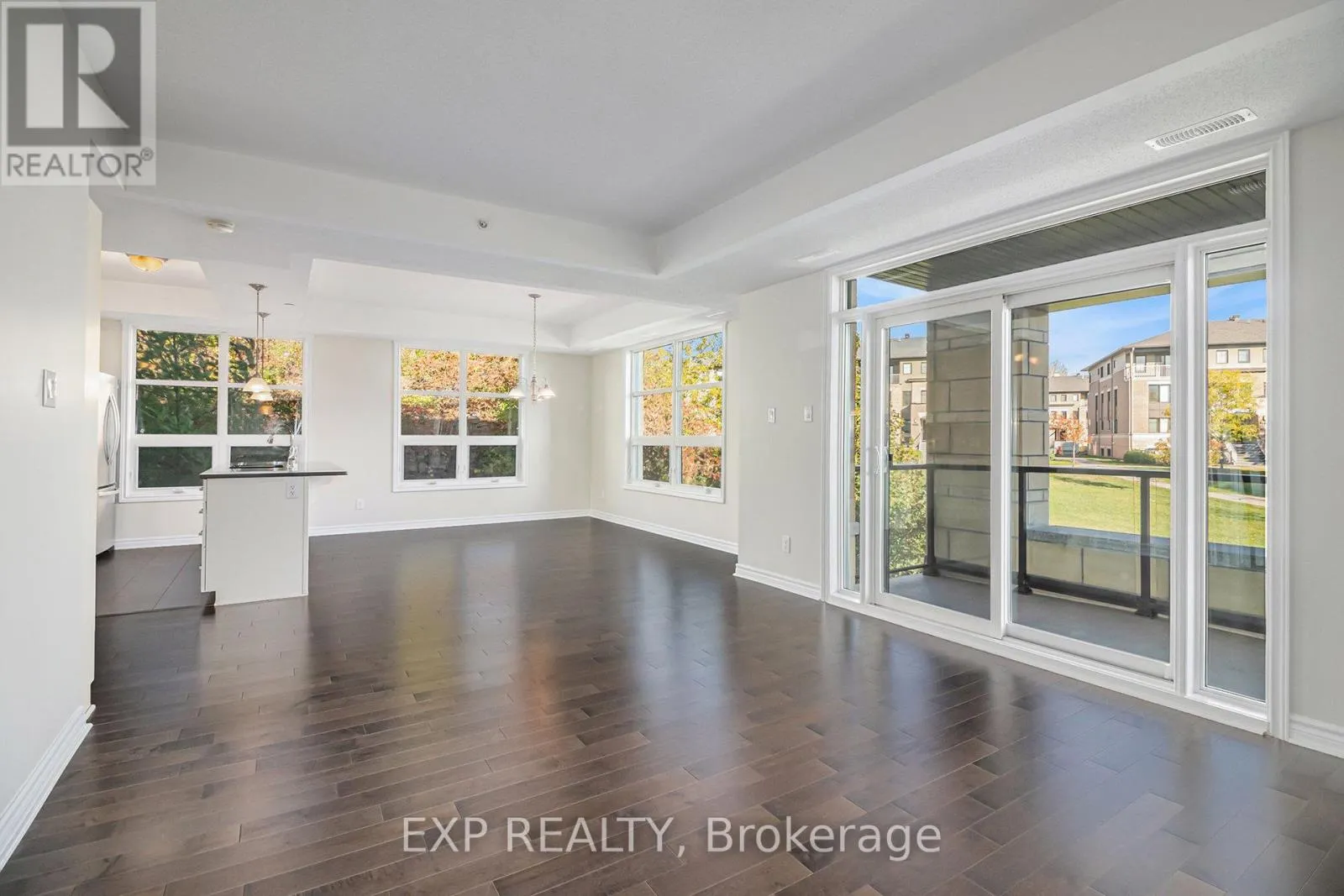 Cross Streets: Titanium/Montblanc. ** Directions: Jeanne D'Arc to Bilberry to Titanium to Montblanc. Experience premium single-level living in sought-after Quarry Glen! This turnkey 2 bedroom + den, 2 bath condo (with 2 parking spots!) combines style, comfort, and convenience in an unbeatable location and view - just a 3-minute drive to the O-Train station and offering quick access to Highway 174. The open-concept layout features a bright, welcoming living area that extends to a covered private balcony, perfect for relaxing outdoors. The kitchen boasts quartz countertops, backsplash, ample cabinetry, stainless steel appliances and an island with breakfast bar - ideal for both everyday living and entertaining. The spacious primary bedroom includes a walk-in closet and a 3 pc ensuite. A second bedroom and a versatile den provide flexible space for guests or a home office, complemented by a 4pc bathroom. Additional highlights include in-suite laundry, two parking spaces (1 in shared garage and 1 surfaced) and hardwood and ceramic flooring throughout - no carpet! Added bonus of an exclusive storage space in shared garage. Located in a building with elevator access, this condo offers easy maintenance free living. Enjoy nearby walking and cycling trails, parks, and all major amenities - Place d'Orléans Mall, Shenkman Arts Centre, restaurants, transit and more. Immediate occupancy available - move in and enjoy urban convenience! (id:27476)