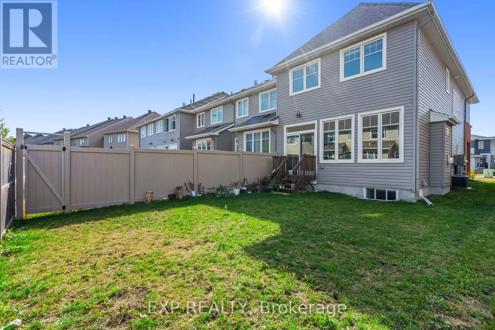 Cross Streets: Fernbank Rd and Edenwylde Dr. ** Directions: Fernbank Rd west of Shea Rd traffic circle and then south on Edenwylde, property on right hand side. PREPARE TO FALL IN LOVE with this immaculate Tamarack Cambridge END UNIT, offering 2,155 sq. ft. of meticulously maintained living space. Built in 2020, this 3-bedroom, 2.5-bathroom home sits on a private driveway in the highly sought-after Edenwylde community of booming Stittsville - and it's an absolute showstopper. Step inside to a bright, open-concept layout designed for modern family living, filled with designer finishes and premium upgrades throughout. The elegant exterior sets the tone, while rich hardwood flooring, upgraded Berber carpet, oversized windows, and a cozy gas fireplace create a warm and inviting atmosphere. The luxurious kitchen is a true showpiece, boasting stone countertops, a walk-in pantry, gas stove, and high-end finishes - perfect for everyday living and entertaining alike. Upstairs, retreat to the spacious primary suite, complete with a large walk-in closet and a spa-inspired ensuite featuring a glass shower and soaker tub. Bedrooms 2 and 3 are generously sized and share a spacious 4-piece family bathroom, while the convenient second-floor laundry adds to the home's functionality. The fully finished basement expands your living space even further, offering a family room, home office area, or gym area. All of this, just minutes from parks, schools, shopping, and the many amenities Stittsville has to offer. (id:27476)