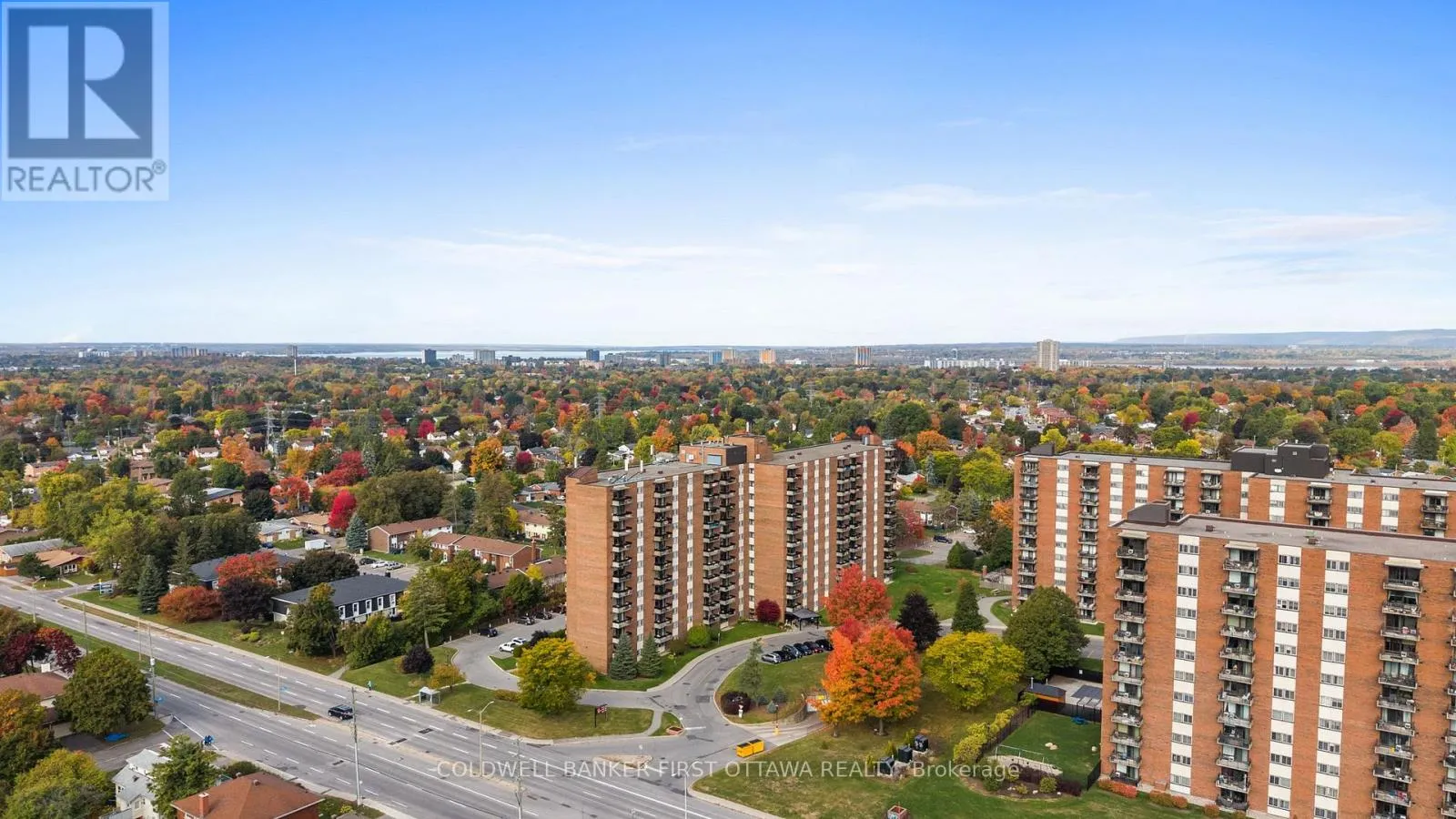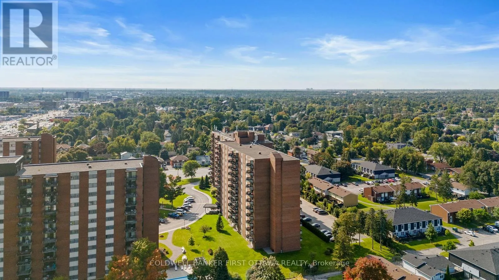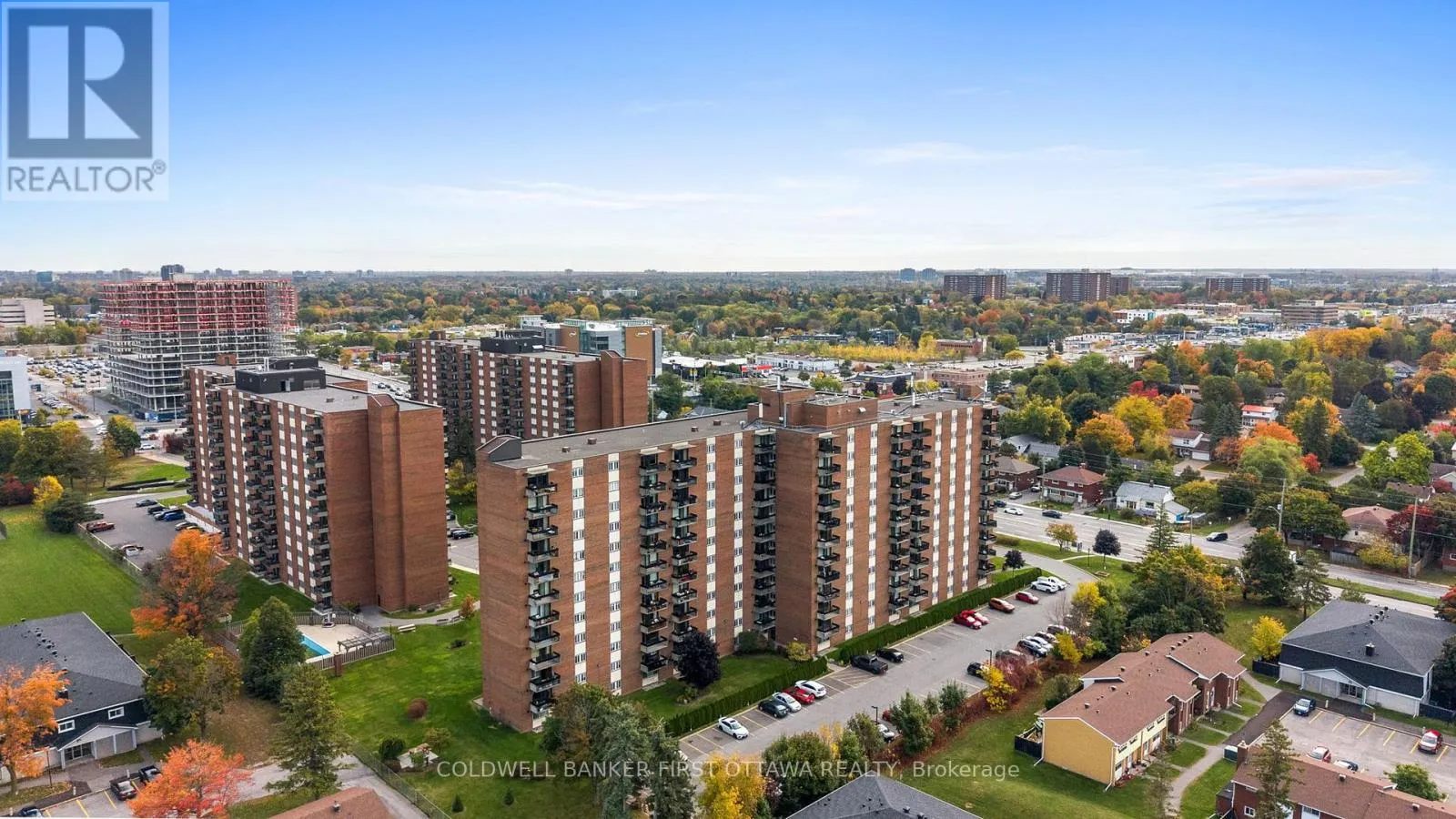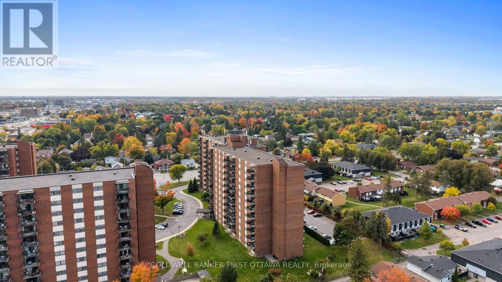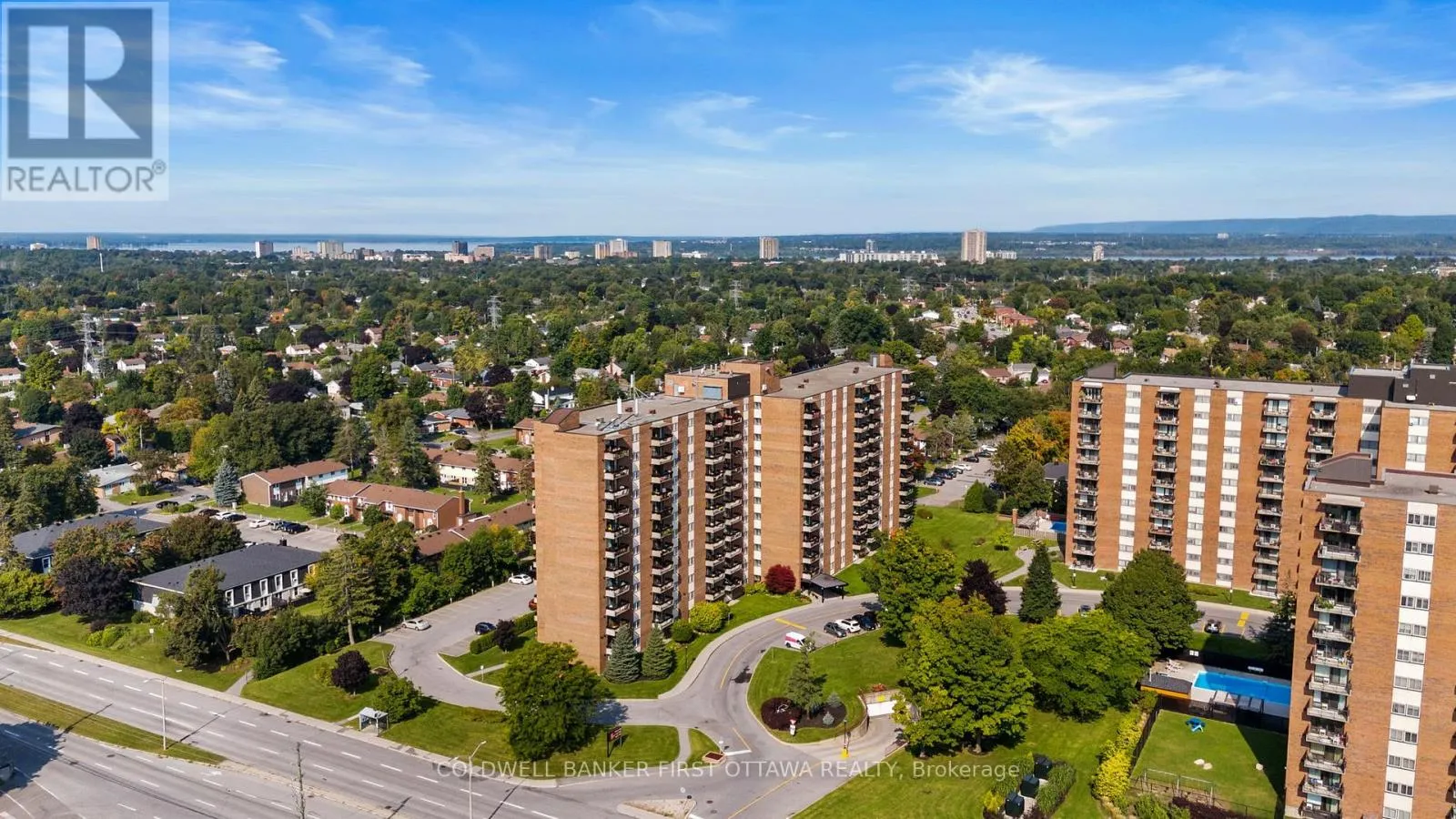 Cross Streets: Clyde Ave/Merivale Rd. ** Directions: Maitland exit on Hwy 417. Head south and continue on to Clyde ave. Turn right on Baseline Rd & 1505 will be on your right. Corner of Clyde & Baseline- Entrnce on Baseline Ave. Prking immediate left upon entering off Baseline Rd. Enter thru back door. Welcome to Manor Square, a well-managed building offering comfort & convenience in a central location. This bright & inviting 2 bed, 1 bath condo offers a functional layout designed for easy living. The open concept living & dining rms feat. laminate flooring, overhead lighting incl. chandelier & access to a private covered balcony w/ North, East & South-facing views, perfect for relaxing or entertaining. The kitchen is thoughtfully designed w/ tile flooring that mimics hardwood, stone backsplash, laminate counters, wine slots, two framed walls allow loads of light in & SS appliances incl. GE glass top stove, NuTone hood fan, Samsung fridge & portable GE dishwasher. Espresso cabinetry w/ glass display panels & open décor nooks add character. The main bath feat. a wide vanity w/ built-in sink, mirror, lighting, medicine cabinet, cabinetry below, tile-surround tub/shower combo & faux laminate tile flooring. Both beds are carpeted, the primary offers a wood sliding double closet & window overlooking the pool, while the secondary offers natural light & a double closet. Well-kept by 3rd owner. Portable A/C unit sold included in sale. Condo fees ($685.09/mth) incl. amenities, building insurance, garbage removal, maintenance, heat, hydro, management, reserve fund, snow removal, storage & water/sewer (all utilities covered by fee). Shared laundry, storage (#913 in B21) & parking (#35 located near back entrance for convenience) included. Located near Loblaws Plaza & Laurentian Place w/ nearby amenities incl. Walmart, Loblaws, Starbucks, Fit4Less, CIBC, Giant Tiger, FreshCo, Food Basics, Movati, Altea Fitness Centre, College Square restaurants, shops & retail. Mins to Riocan Merivale Place (Winners, Dollarstore), Costco & Viewmount Centre (Metro, HomeSense) w/ easy access to Baseline Rd., Maitland Ave. & Merivale Rd. for a quick commute downtown. Public transit steps away on Baseline, w/ future LRT station access at Algonquin College and Iris Stations. (id:27476)