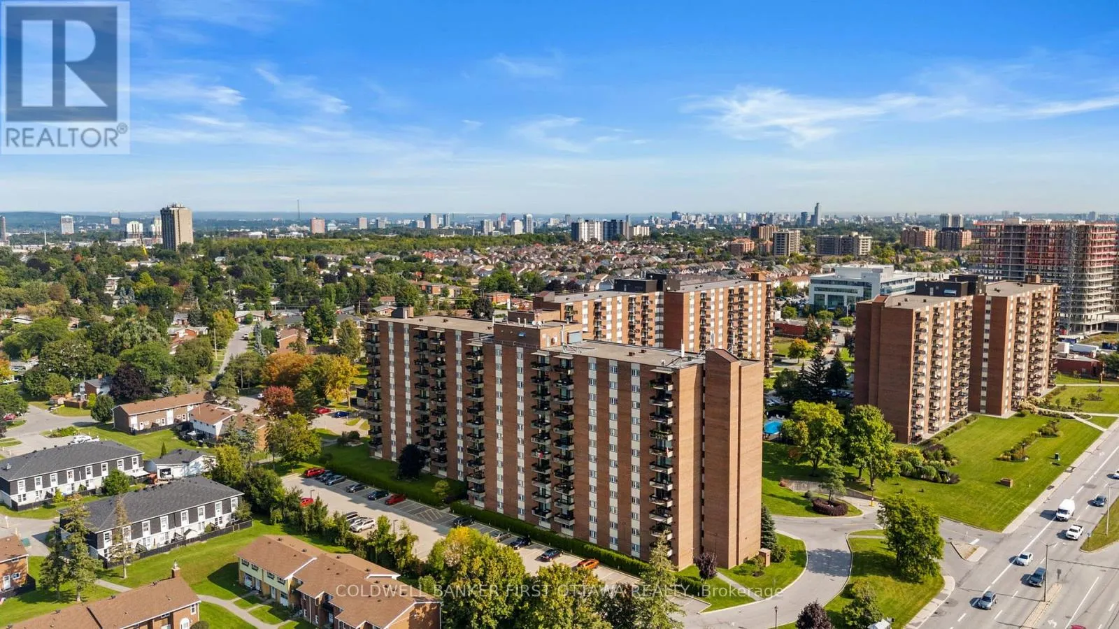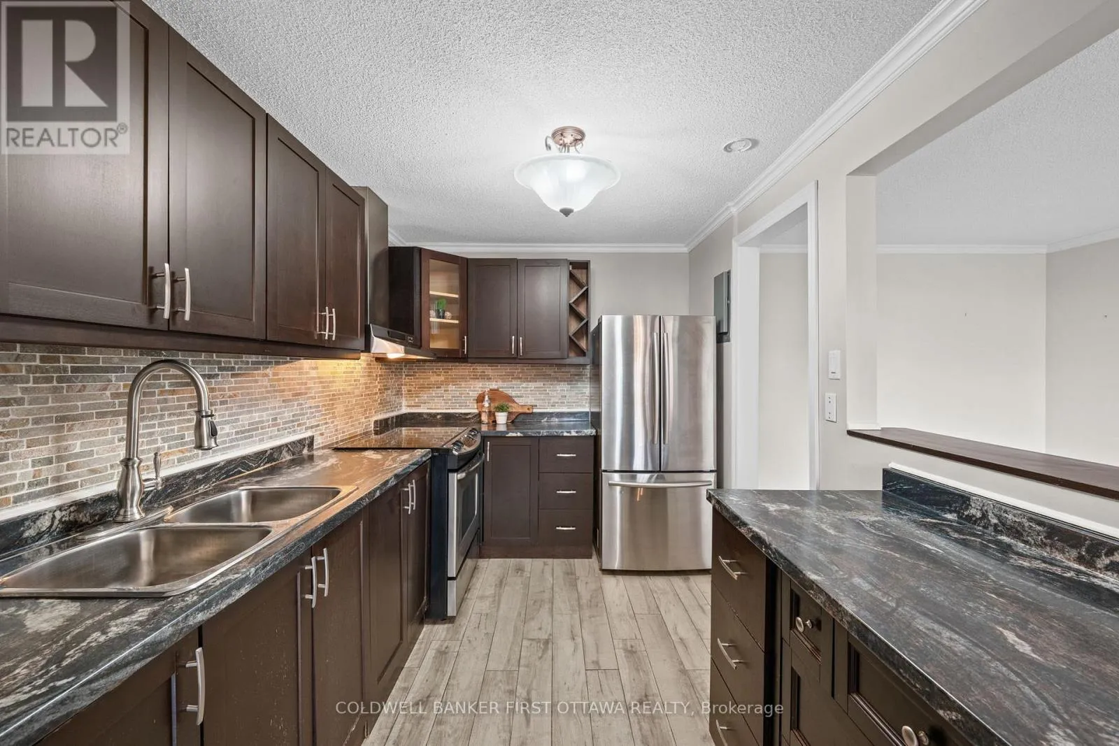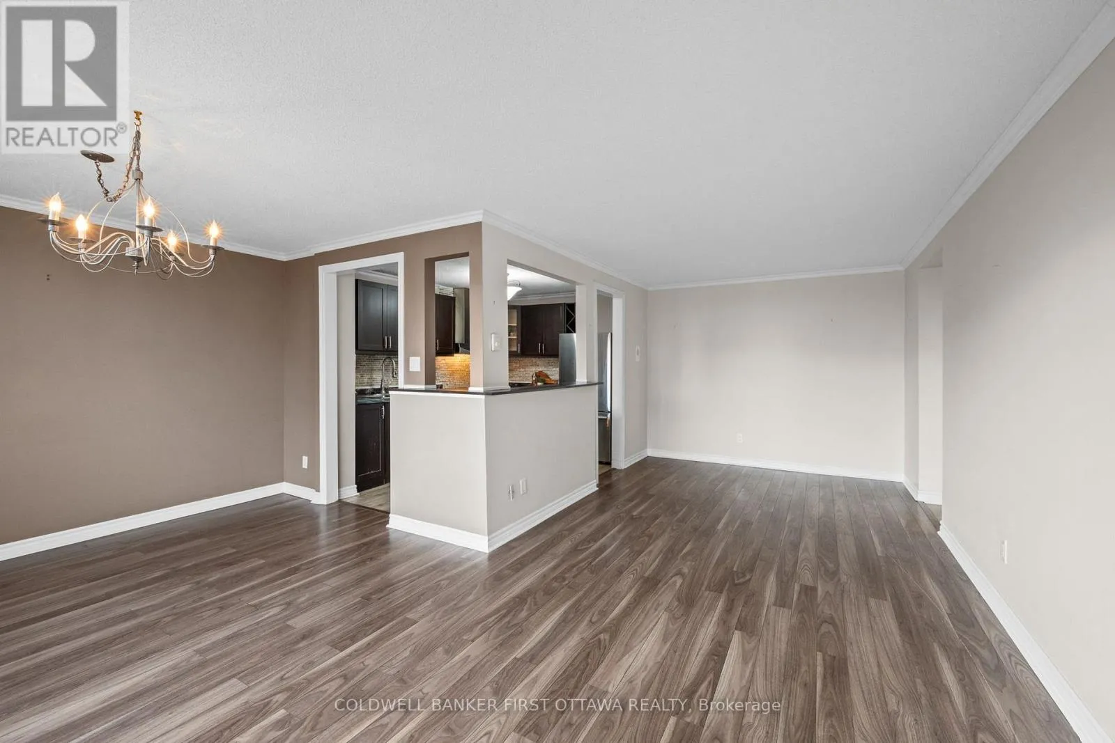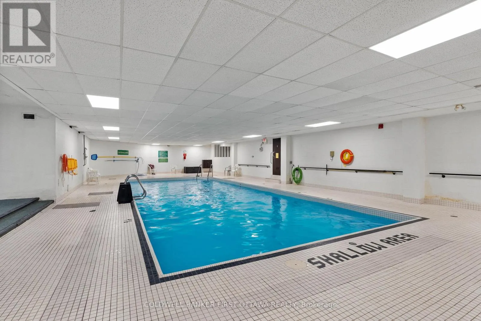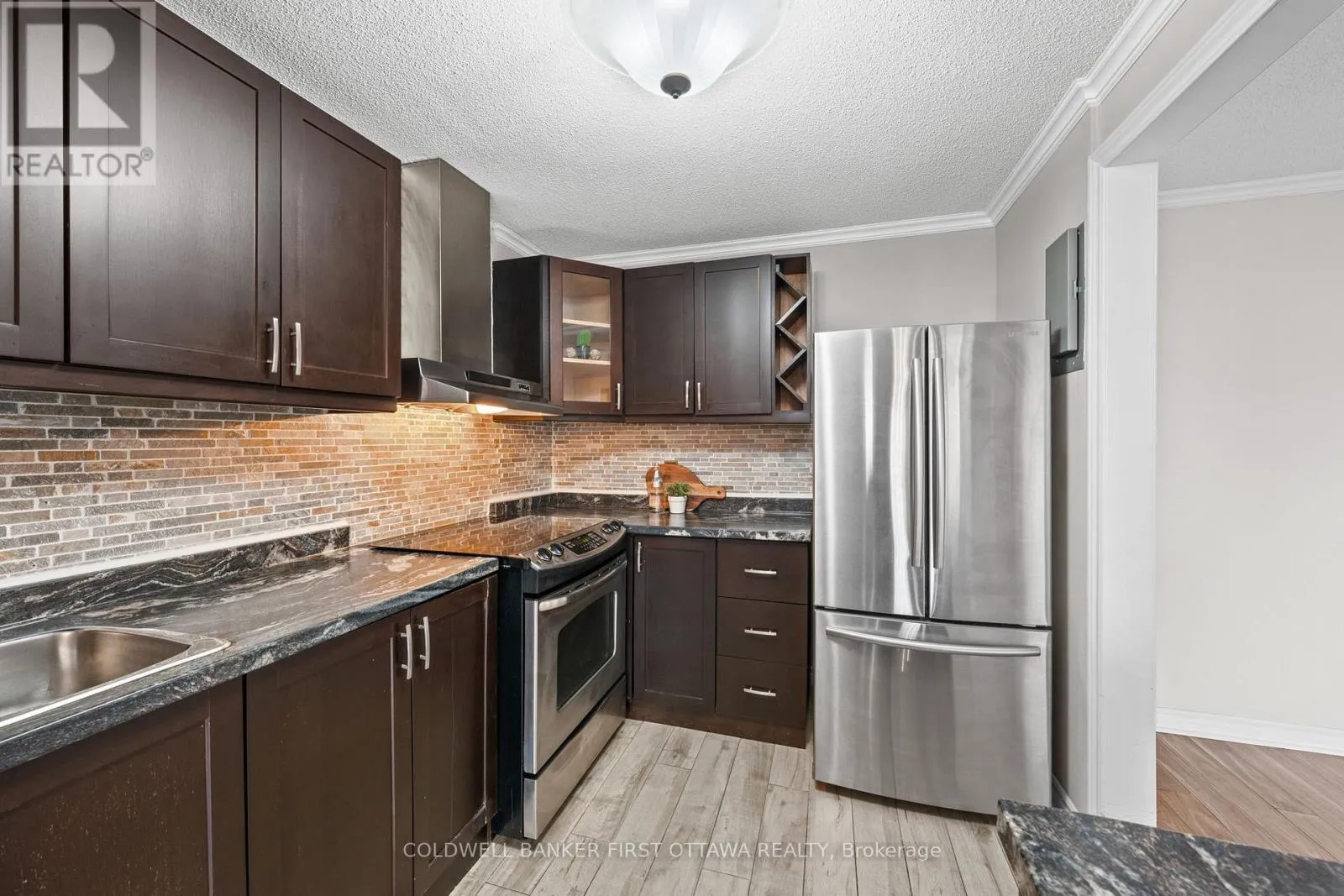Cross Streets: Clyde Ave/Merivale Rd. ** Directions: Maitland exit on Hwy 417. Head south and continue on to Clyde ave. Turn right on Baseline Rd & 1505 will be on your right. Corner of Clyde & Baseline- Entrnce on Baseline Ave. Prking immediate left upon entering off Baseline Rd. Enter thru back door. Welcome to Manor Square, a well-managed building offering comfort & convenience in a central location. This bright & inviting 2 bed, 1 bath condo offers a functional layout designed for easy living. The open concept living & dining rms feat. laminate flooring, overhead lighting incl. chandelier & access to a private covered balcony w/ North, East & South-facing views, perfect for relaxing or entertaining. The kitchen is thoughtfully designed w/ tile flooring that mimics hardwood, stone backsplash, laminate counters, wine slots, two framed walls allow loads of light in & SS appliances incl. GE glass top stove, NuTone hood fan, Samsung fridge & portable GE dishwasher. Espresso cabinetry w/ glass display panels & open décor nooks add character. The main bath feat. a wide vanity w/ built-in sink, mirror, lighting, medicine cabinet, cabinetry below, tile-surround tub/shower combo & faux laminate tile flooring. Both beds are carpeted, the primary offers a wood sliding double closet & window overlooking the pool, while the secondary offers natural light & a double closet. Well-kept by 3rd owner. Portable A/C unit sold included in sale. Condo fees ($685.09/mth) incl. amenities, building insurance, garbage removal, maintenance, heat, hydro, management, reserve fund, snow removal, storage & water/sewer (all utilities covered by fee). Shared laundry, storage (#913 in B21) & parking (#35 located near back entrance for convenience) included. Located near Loblaws Plaza & Laurentian Place w/ nearby amenities incl. Walmart, Loblaws, Starbucks, Fit4Less, CIBC, Giant Tiger, FreshCo, Food Basics, Movati, Altea Fitness Centre, College Square restaurants, shops & retail. Mins to Riocan Merivale Place (Winners, Dollarstore), Costco & Viewmount Centre (Metro, HomeSense) w/ easy access to Baseline Rd., Maitland Ave. & Merivale Rd. for a quick commute downtown. Public transit steps away on Baseline, w/ future LRT station access at Algonquin College and Iris Stations. (id:27476)